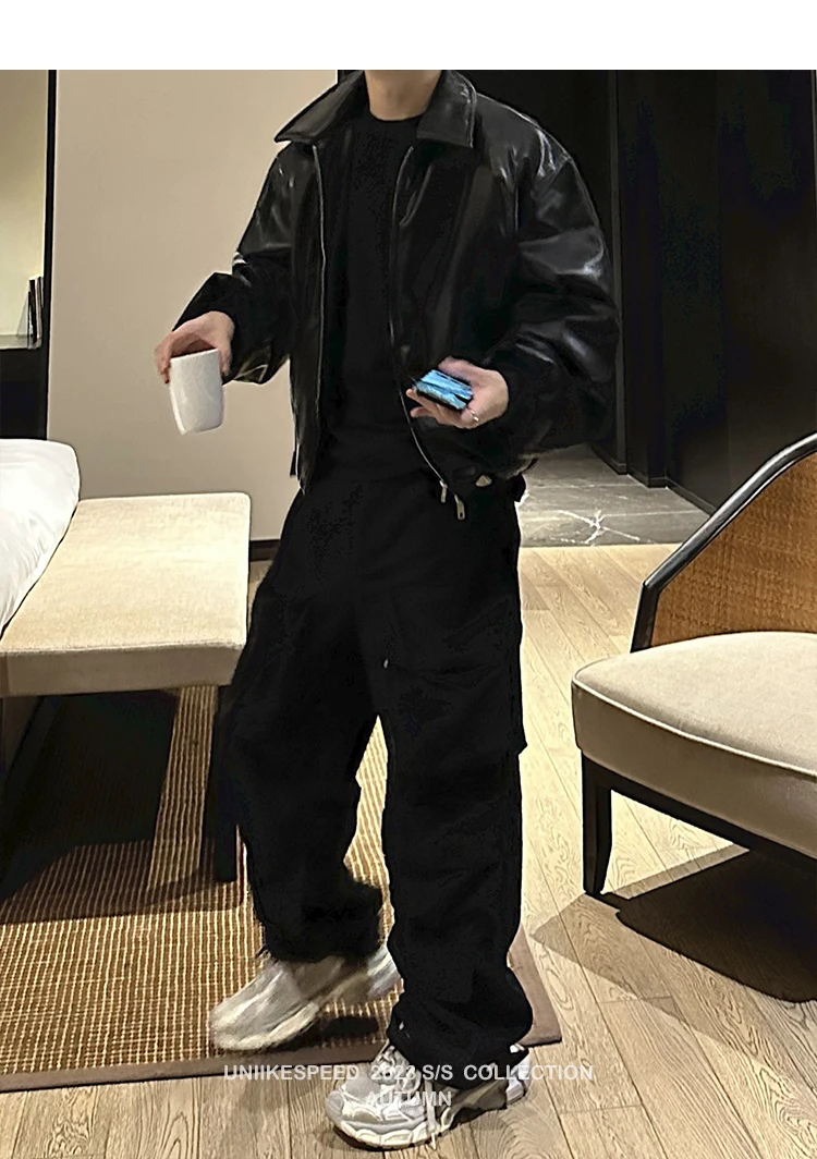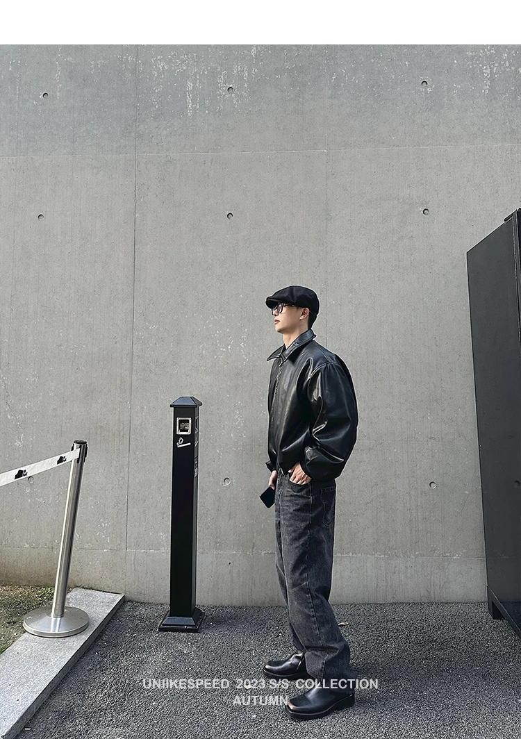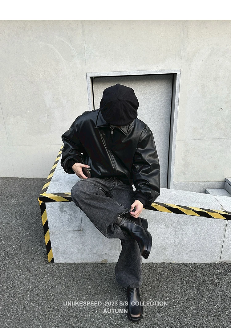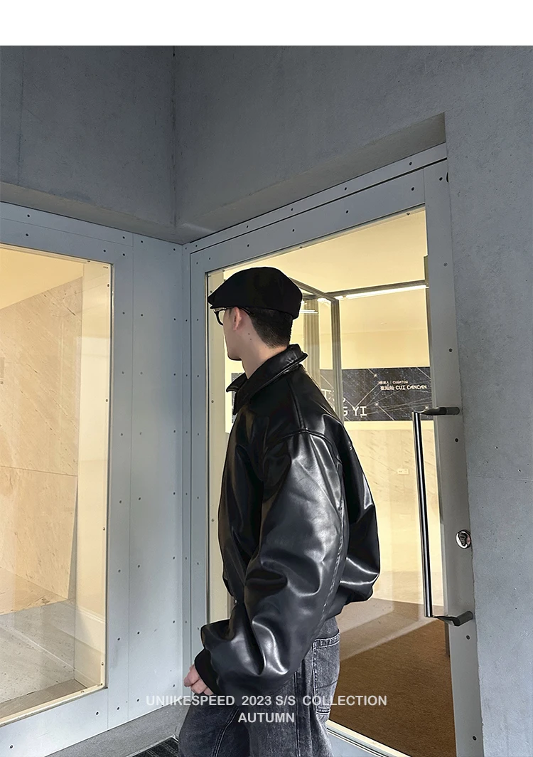 New Mens Slim Fit Leather Jackets PU Casual Motorcycle Coats Turn Down Collar Black Moto Biker Leather Suede Outerwear Men 5XL