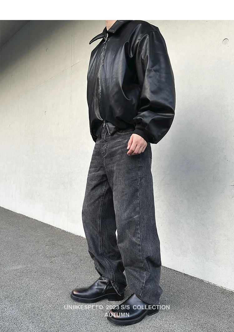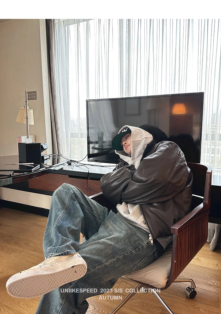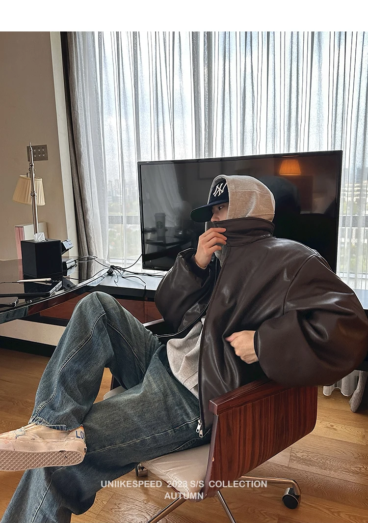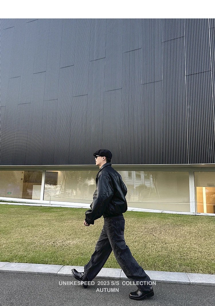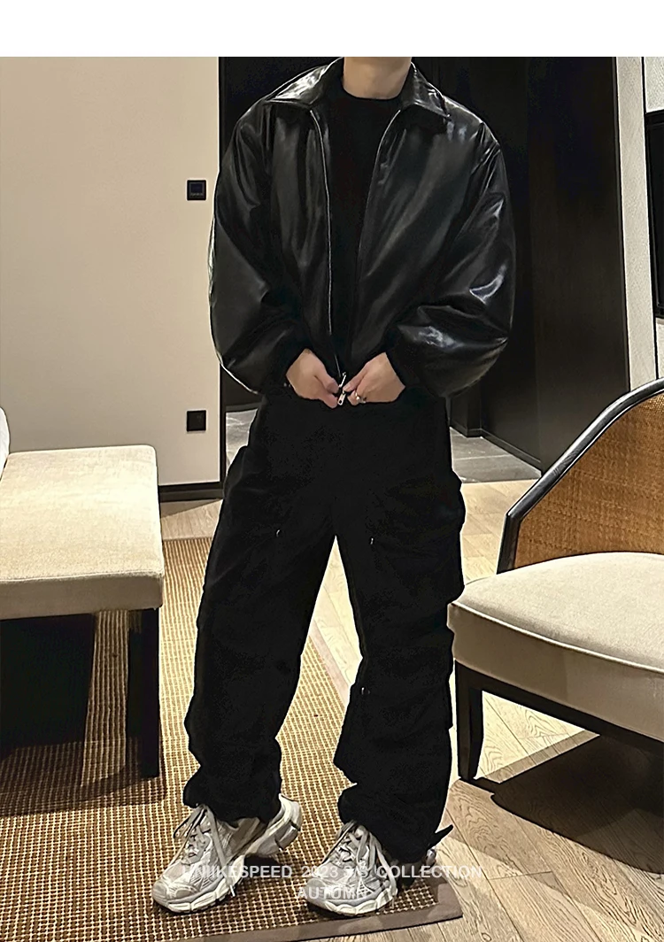New Mens Slim Fit Leather Jackets PU Casual Motorcycle Coats Turn Down Collar Black Moto Biker Leather Suede Outerwear Men 5XL