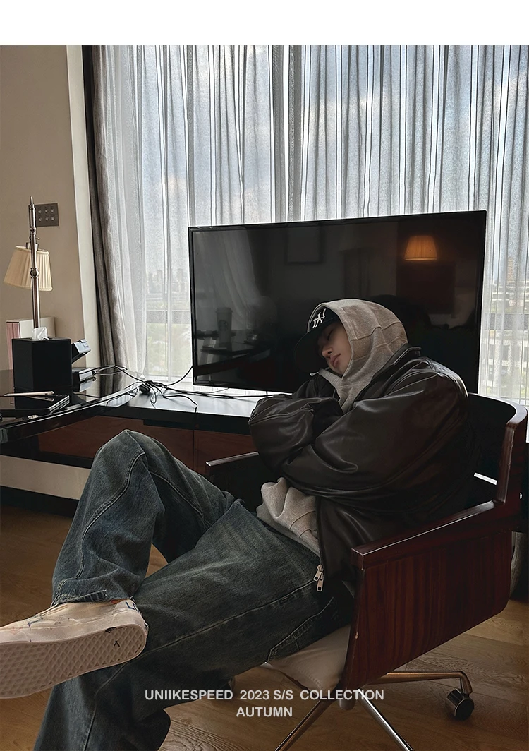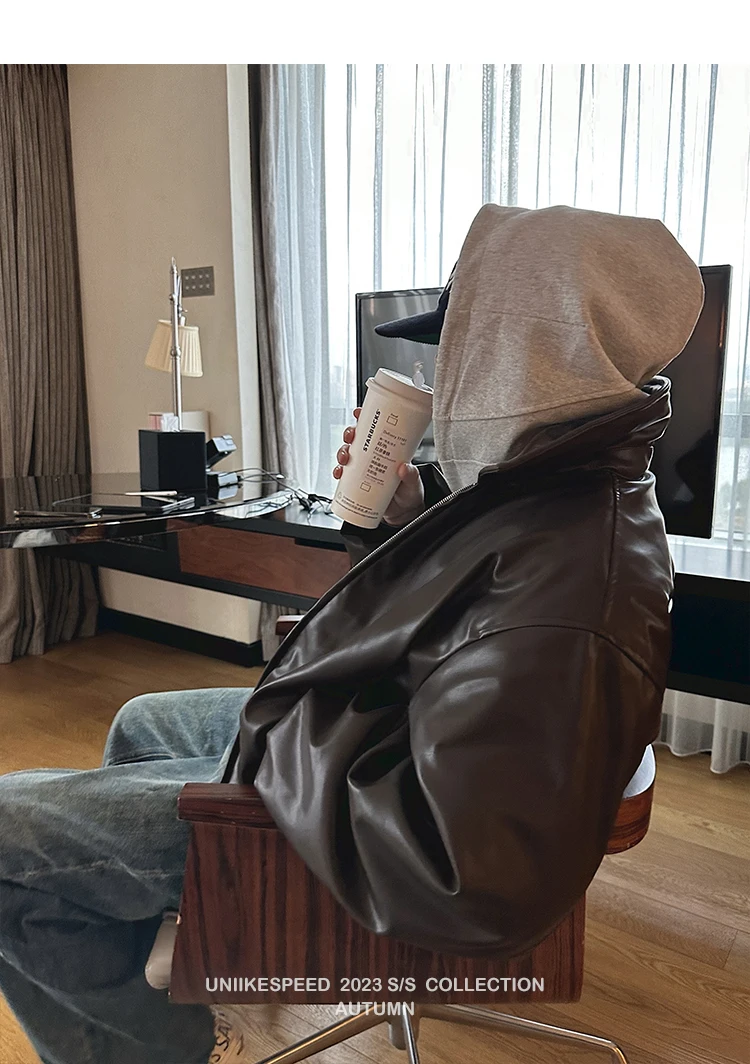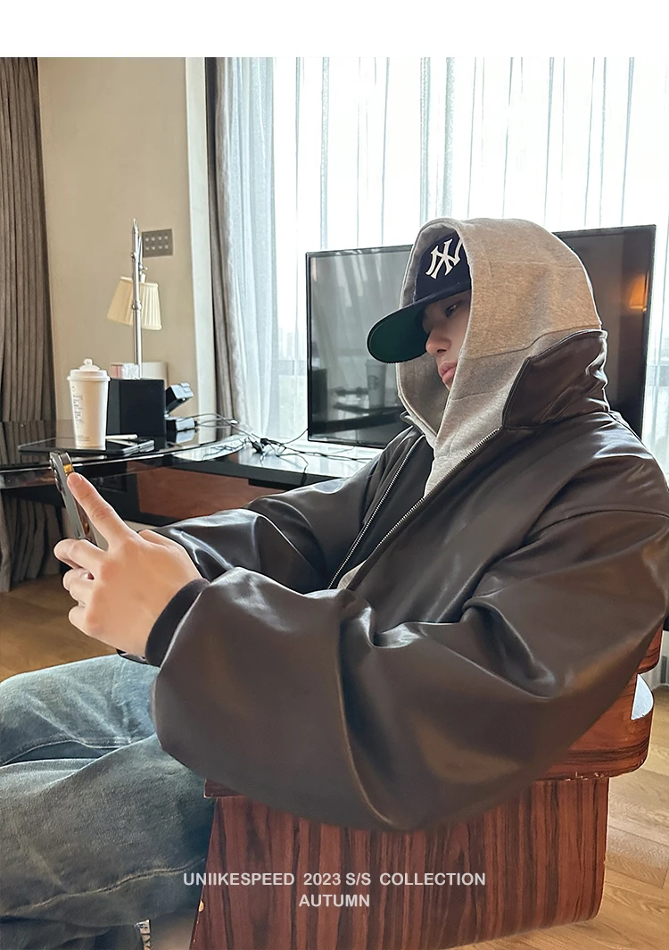 Coat Windproof Clothes Men's Hooded Long Leather coat Men's Leather Motorcycle Leather fashion Winter Korean Fashion Jacket