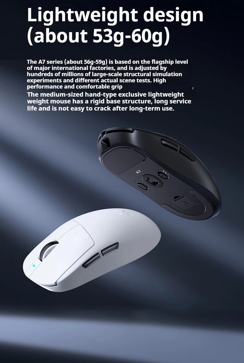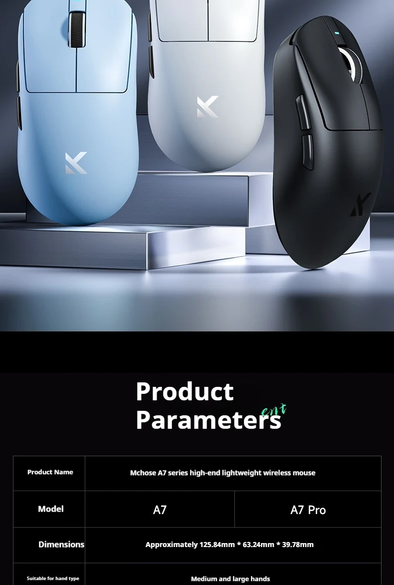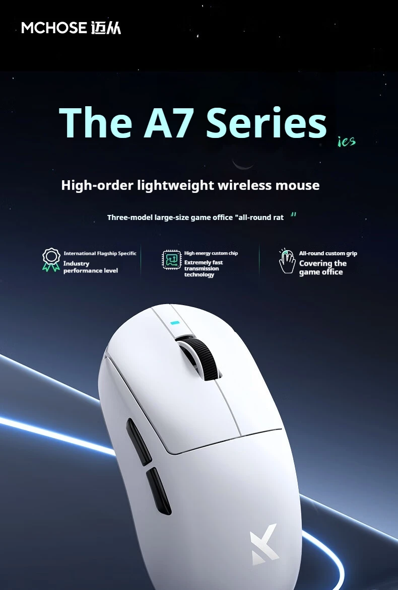 MCHOSE A7 Gaming Mouse Wireless Tri-mode Lightweight PAW3395 Low Delay 8K Customized PC Esports Laptop Gamer Mice PC Accessories