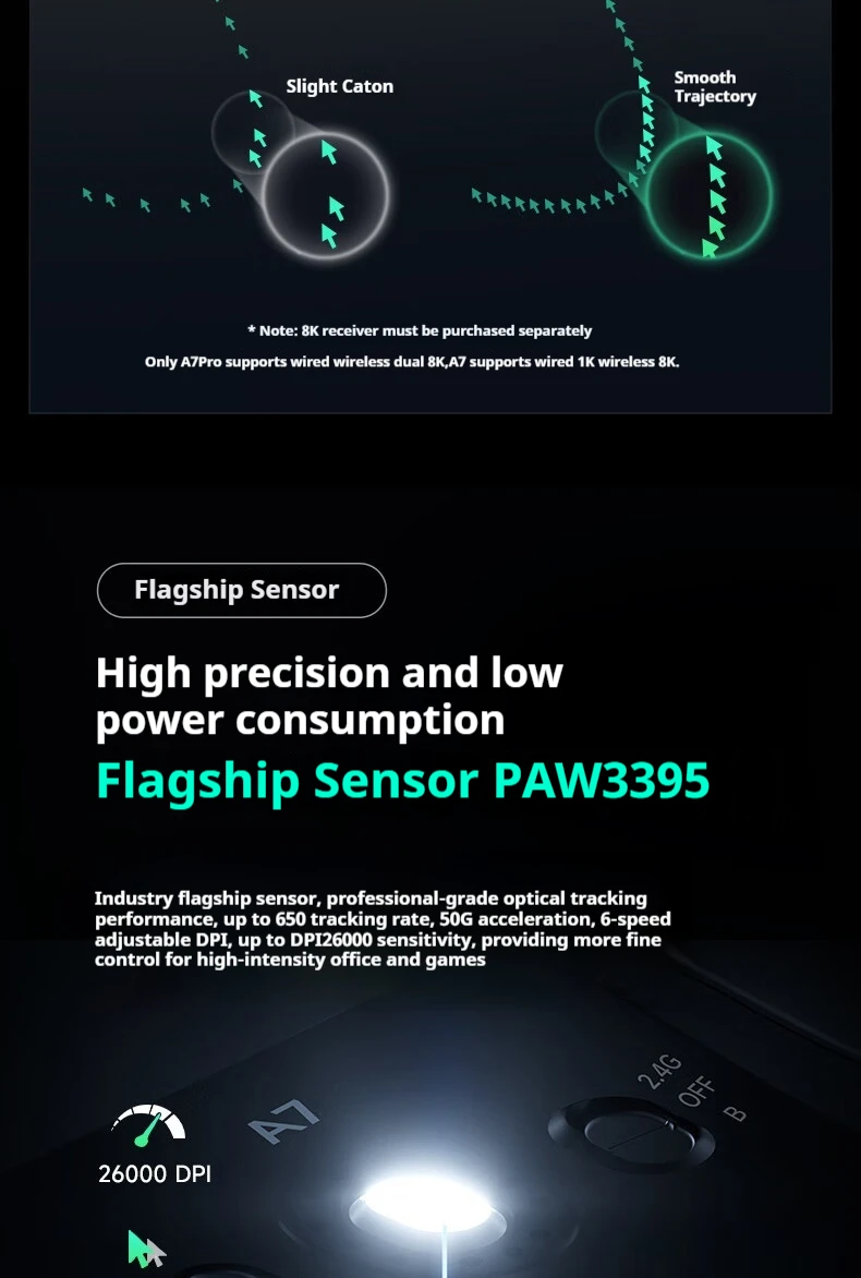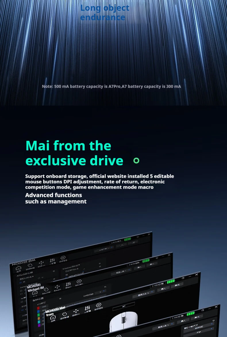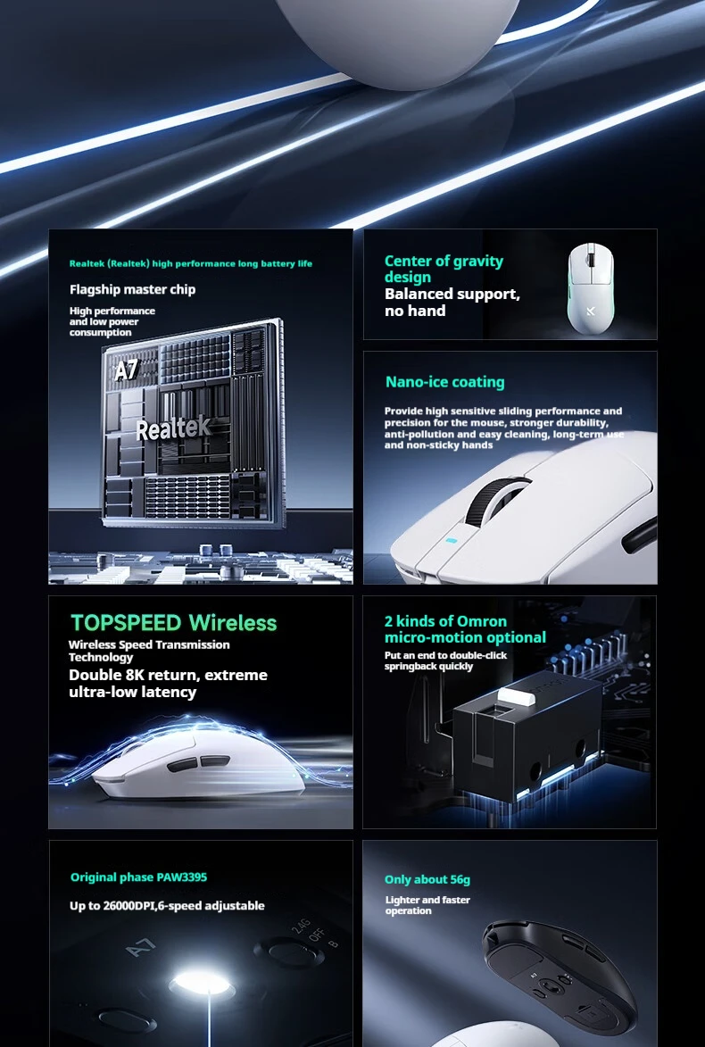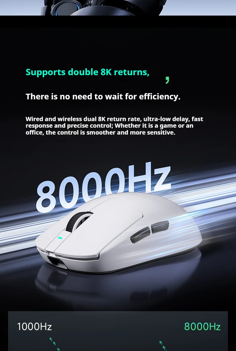 MCHOSE A7 Gaming Mouse Wireless Tri-mode Lightweight PAW3395 Low Delay 8K Customized PC Esports Laptop Gamer Mice PC Accessories