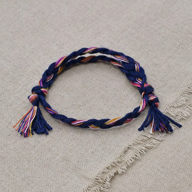 Meetvii Vintage Twist Style Woven Cotton Rope Bracelets Pray Yoga Handmade Chic Tassel Bracelet for Men Women Simple Jewelry