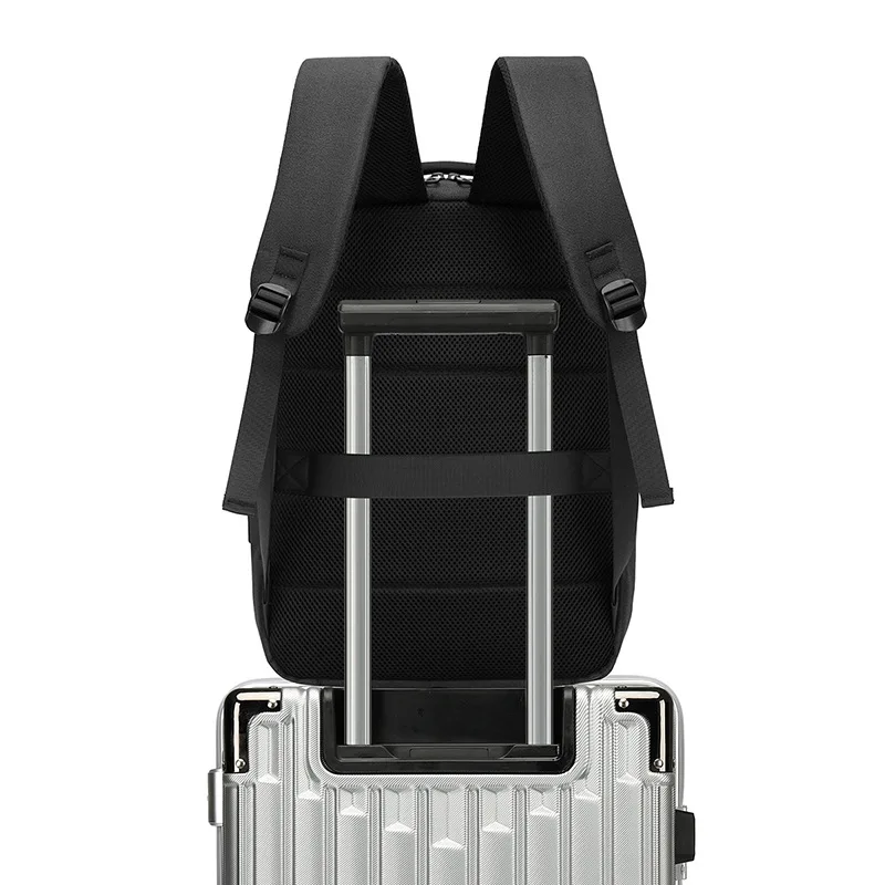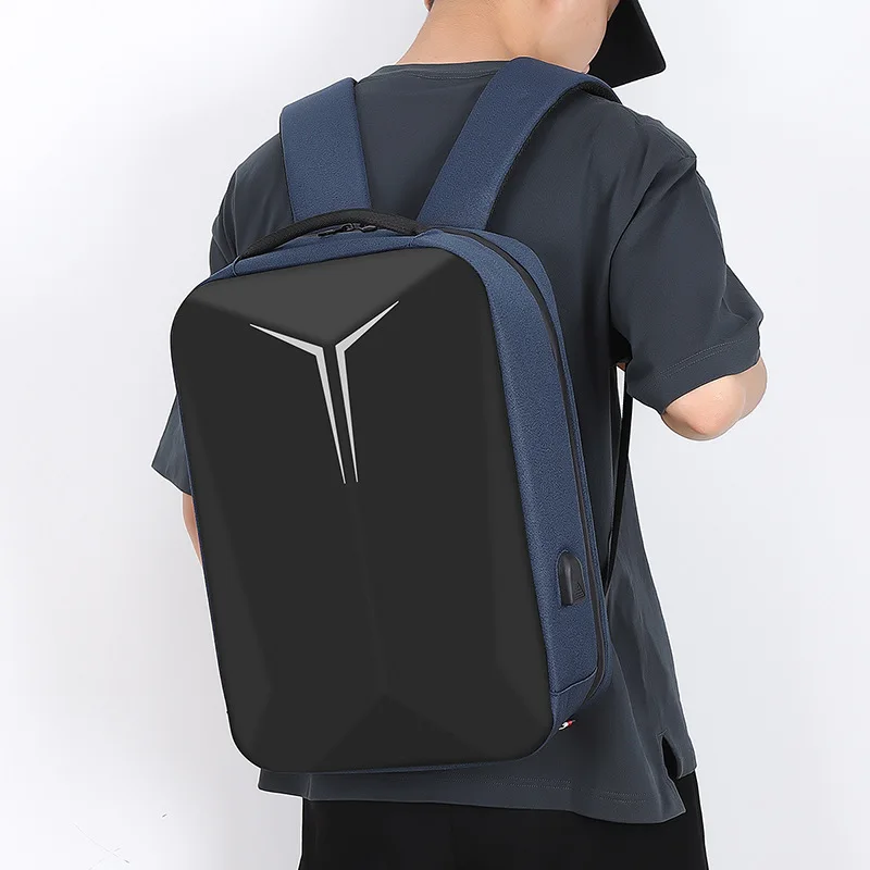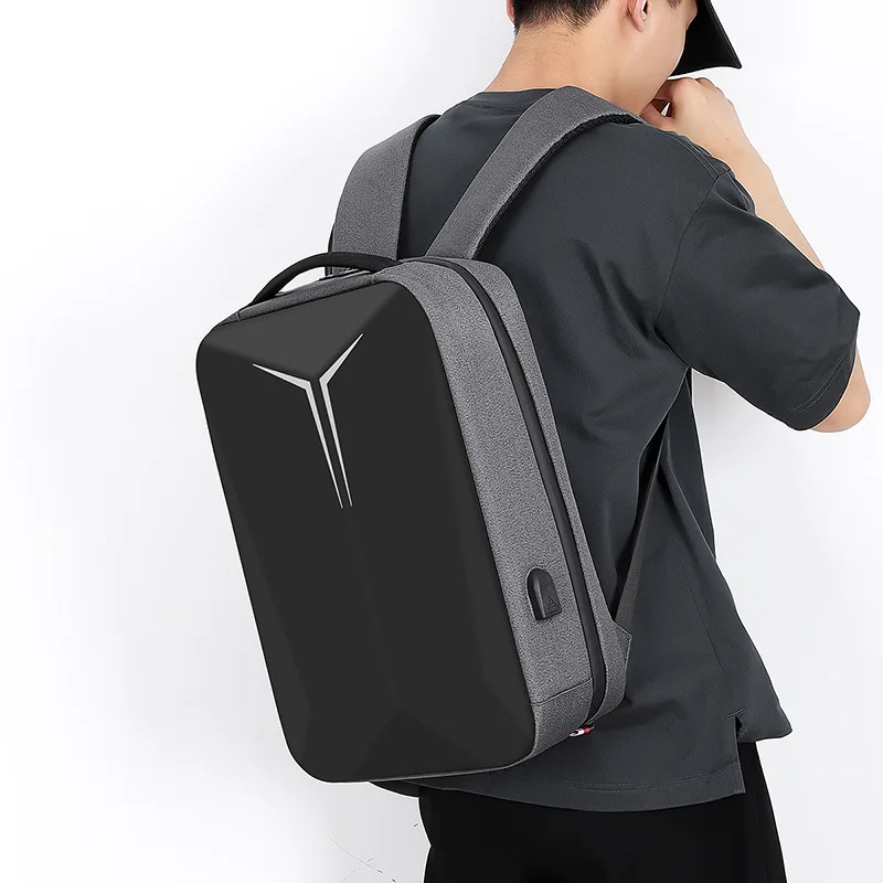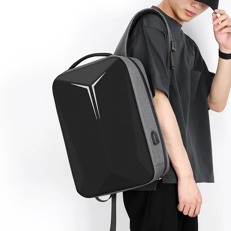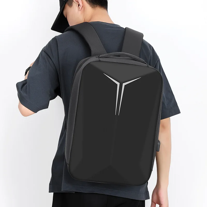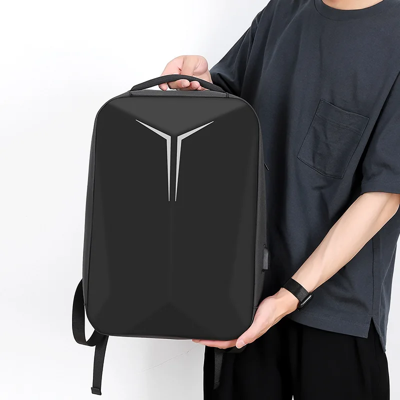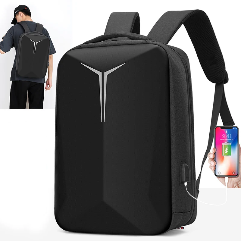 Men Black Hard Shell Business Leisure Travel Multifunctional Computer Backpack With Charging Port Waterproof Breathable Durable