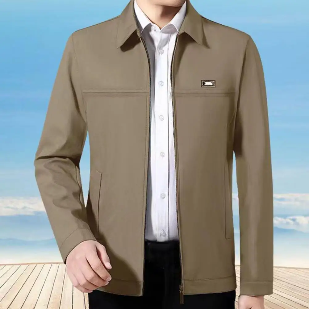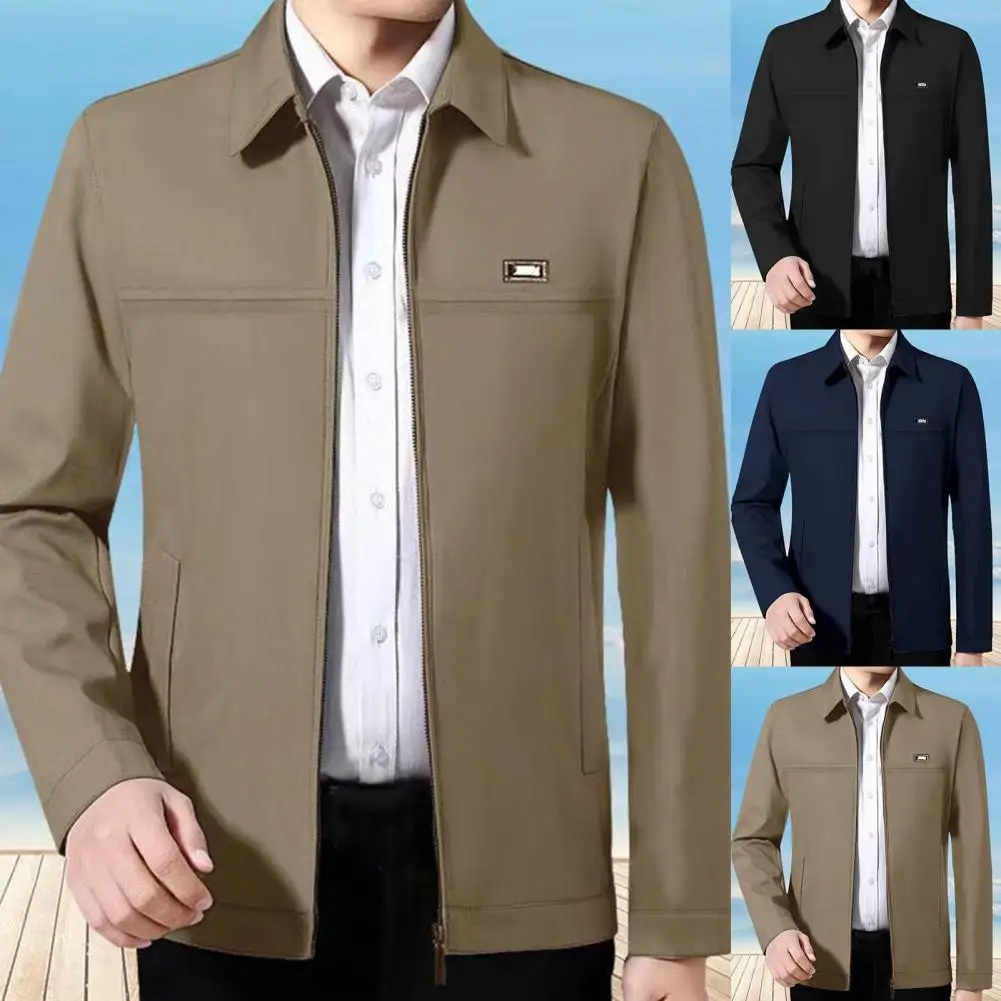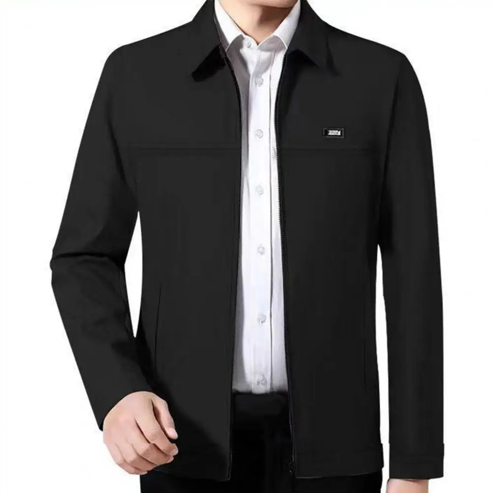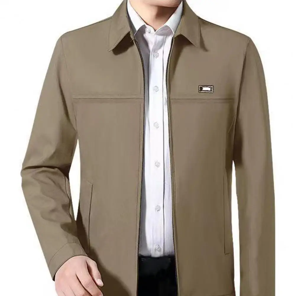Men Coat Solid Color Turn-down Collar Loose Cardigan Spring Jacket for Daily Wear