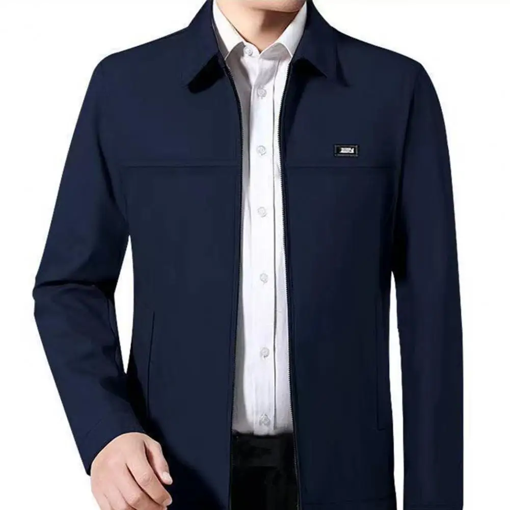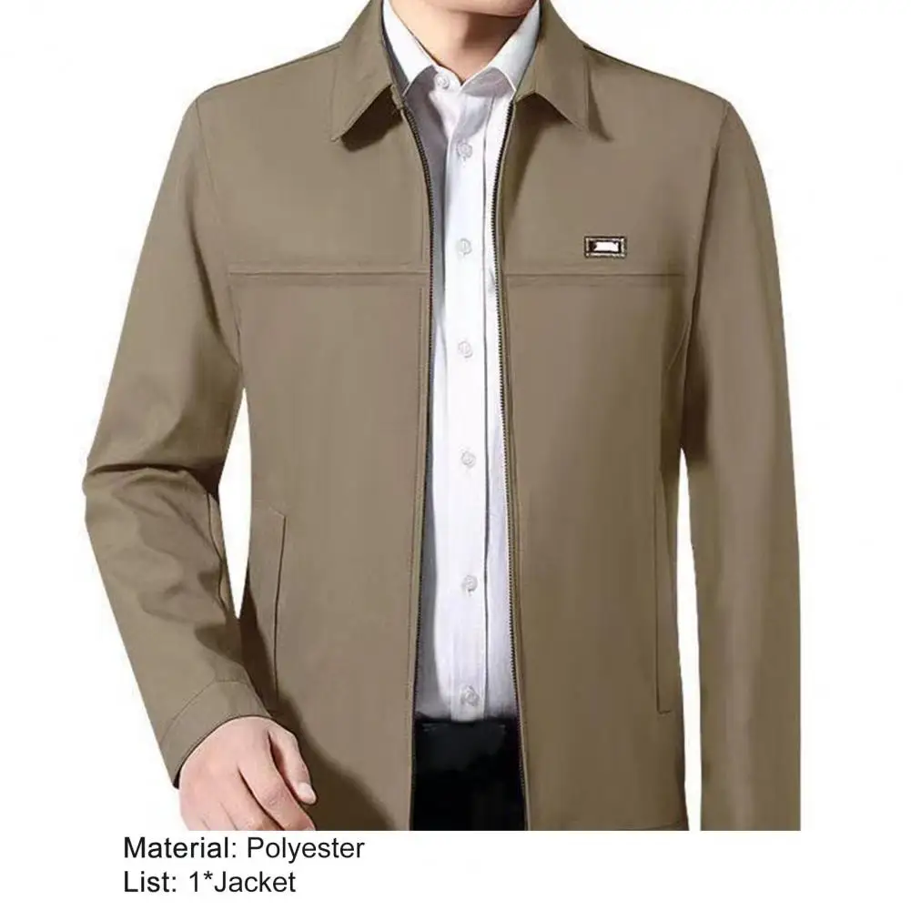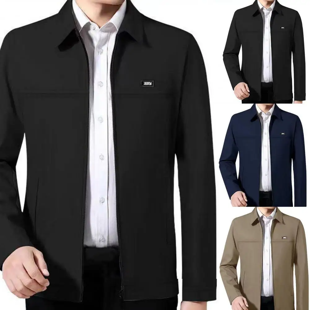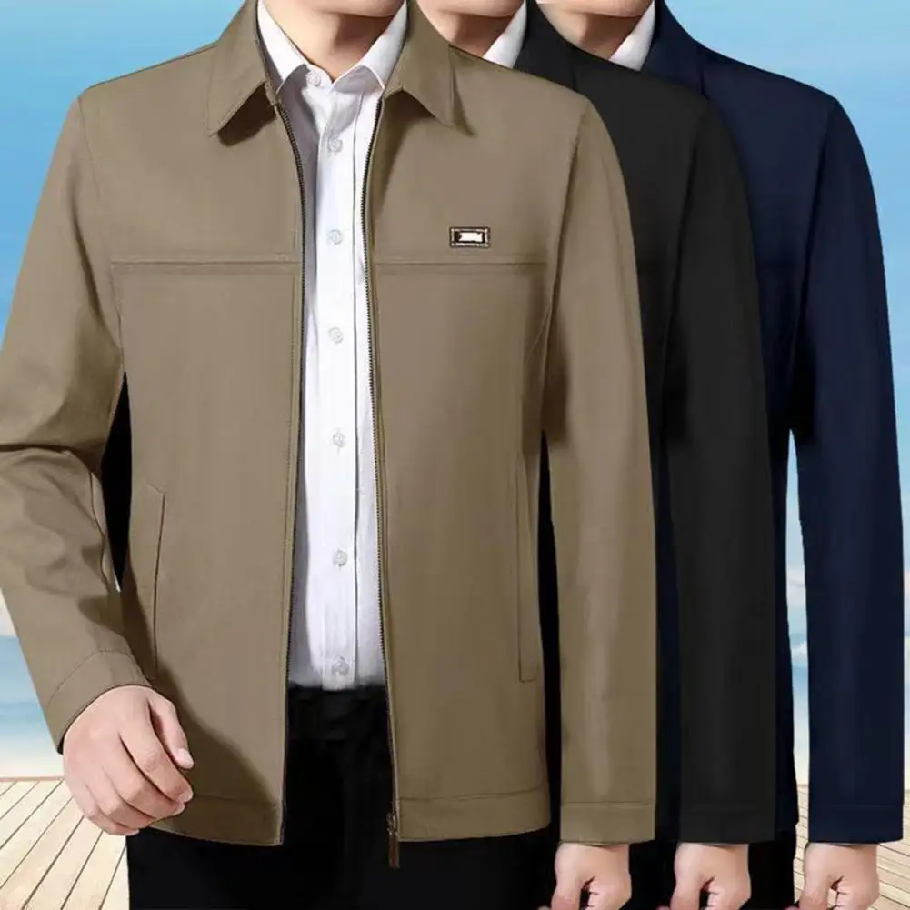 Men Coat Solid Color Turn-down Collar Loose Cardigan Spring Jacket for Daily Wear