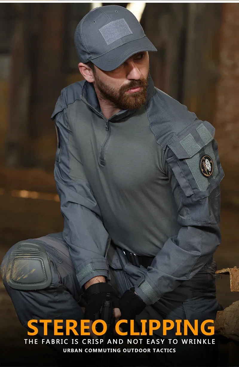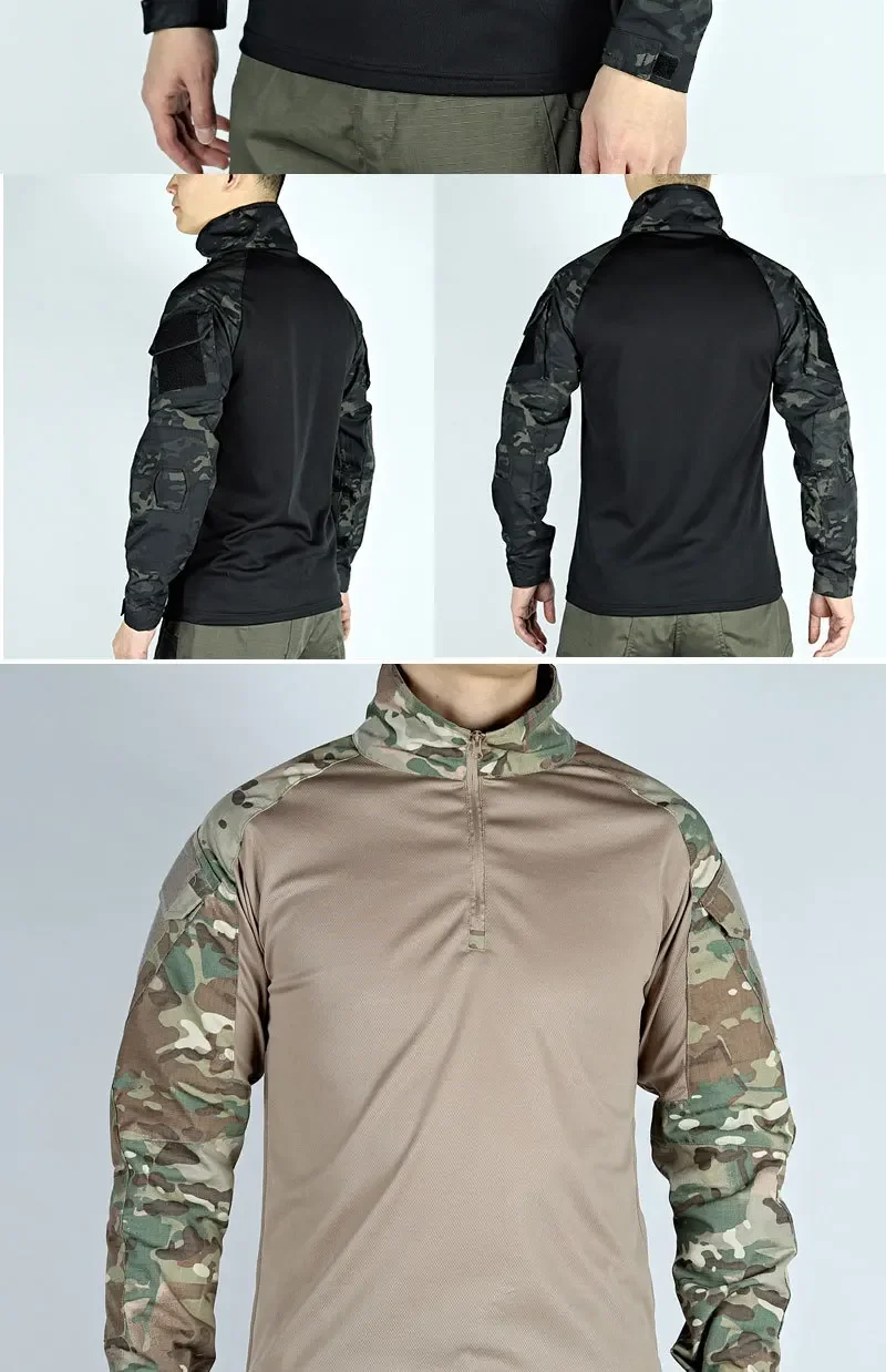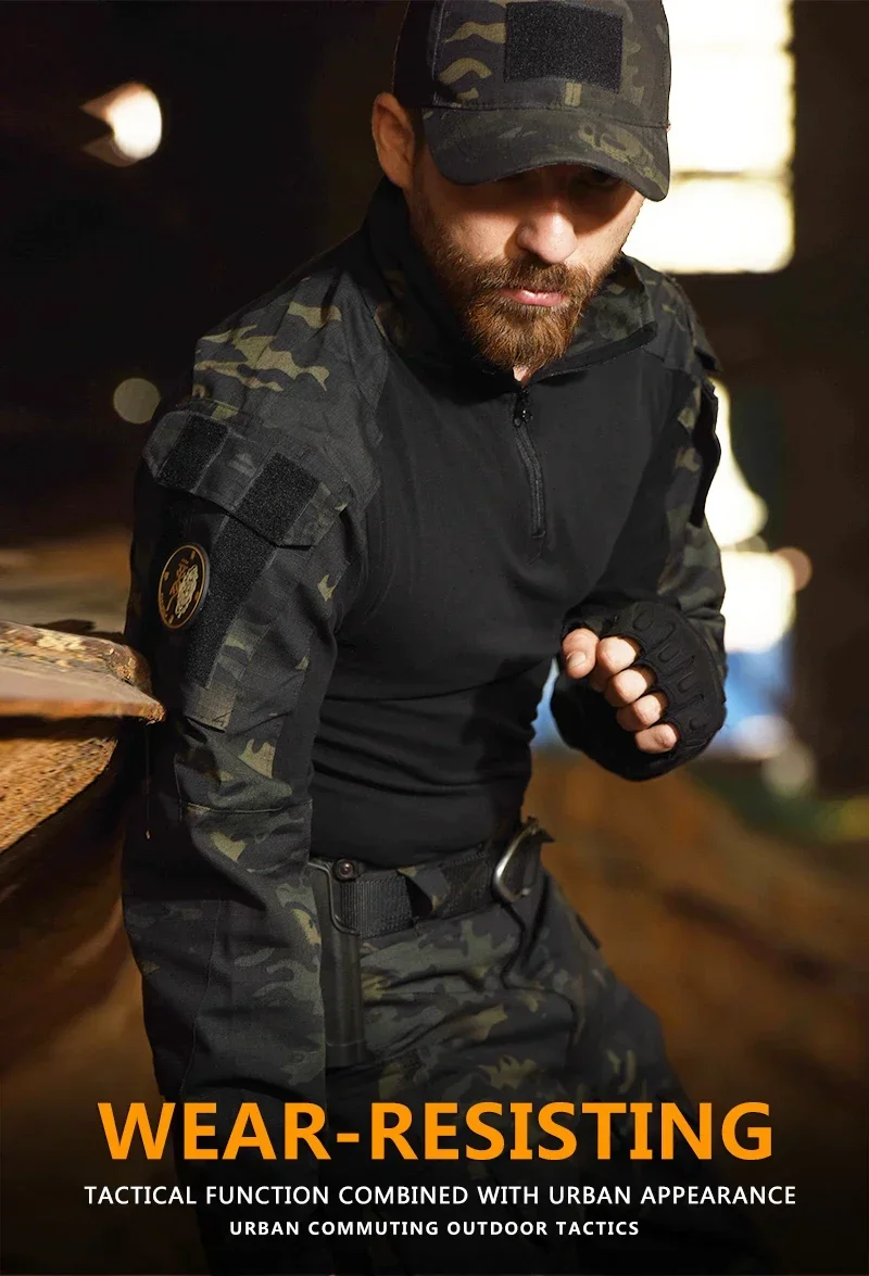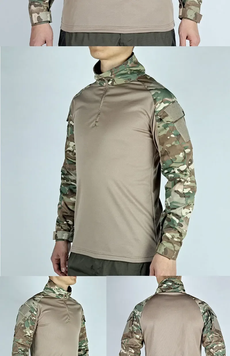 Men Multicam Military Shirts Combat Shirt Tactical Shirt Wear Resistant Long Sleeve Paintball Camping Hunting Men’s Clothing