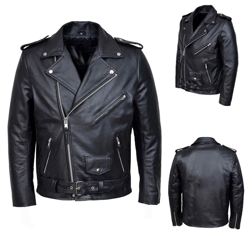 Men PU Leather Jacket Motorcycle Fashion Slim Fit Leather Coat