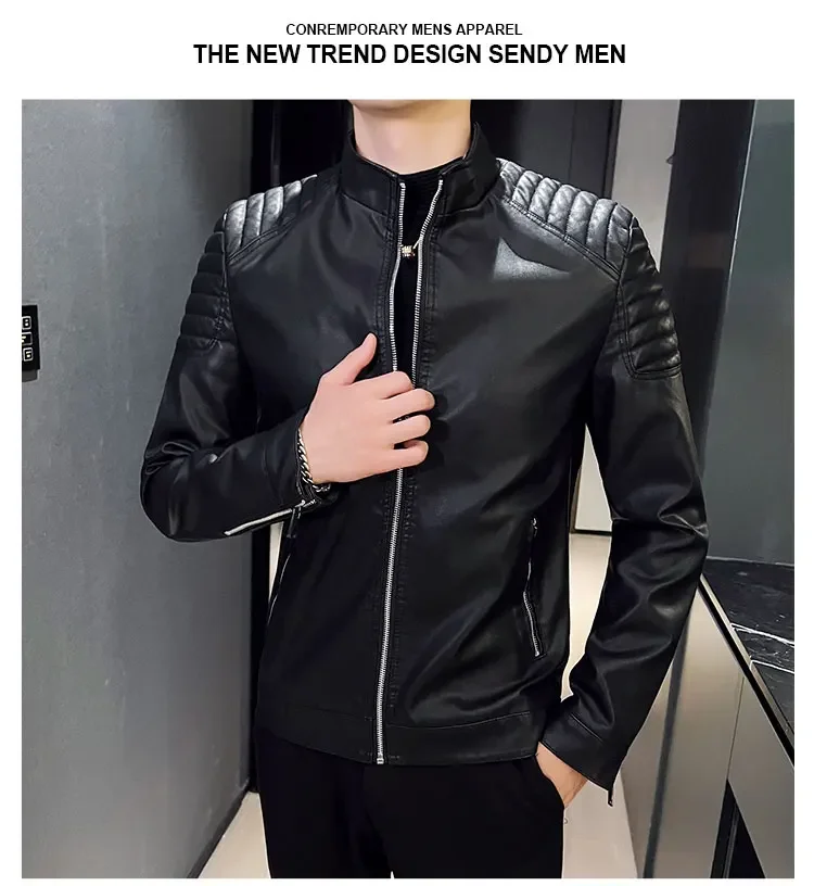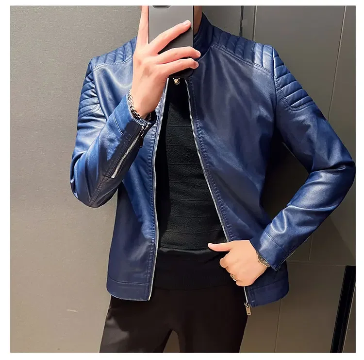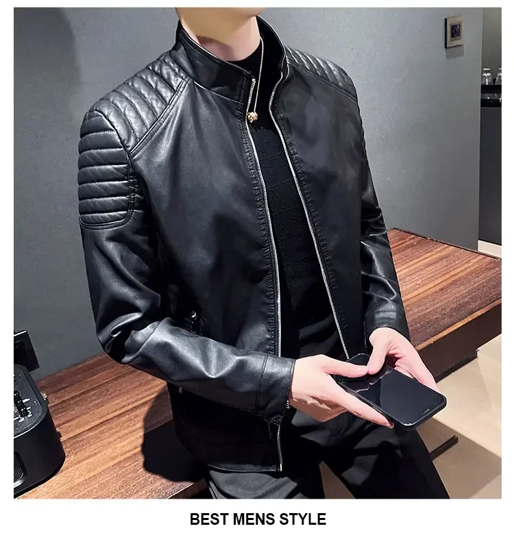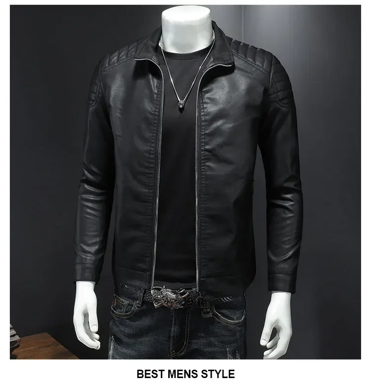 Men standing collar Jacke, leather motorcycle jacket men,bomber leather coat,fashion trend personalized leather winter clothing