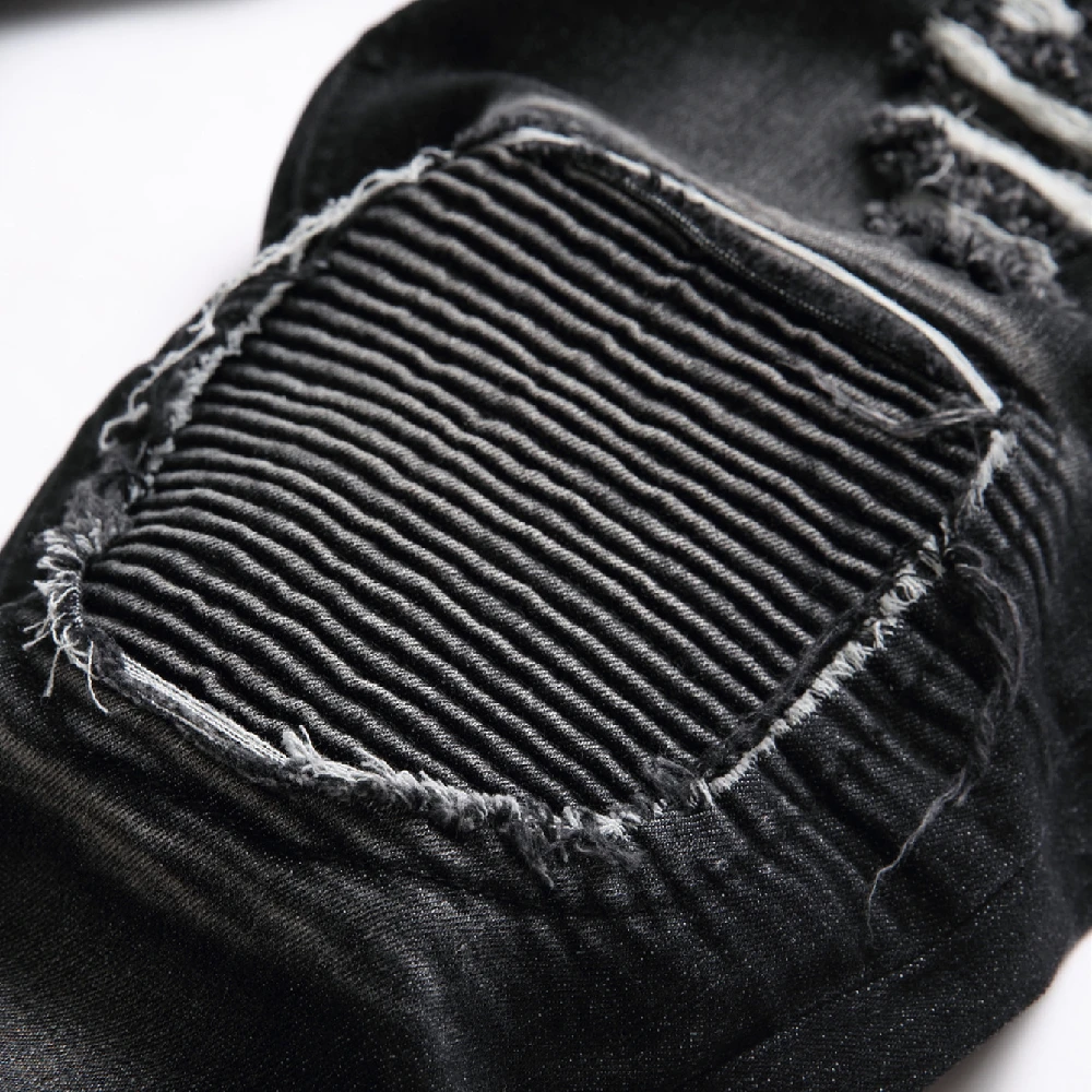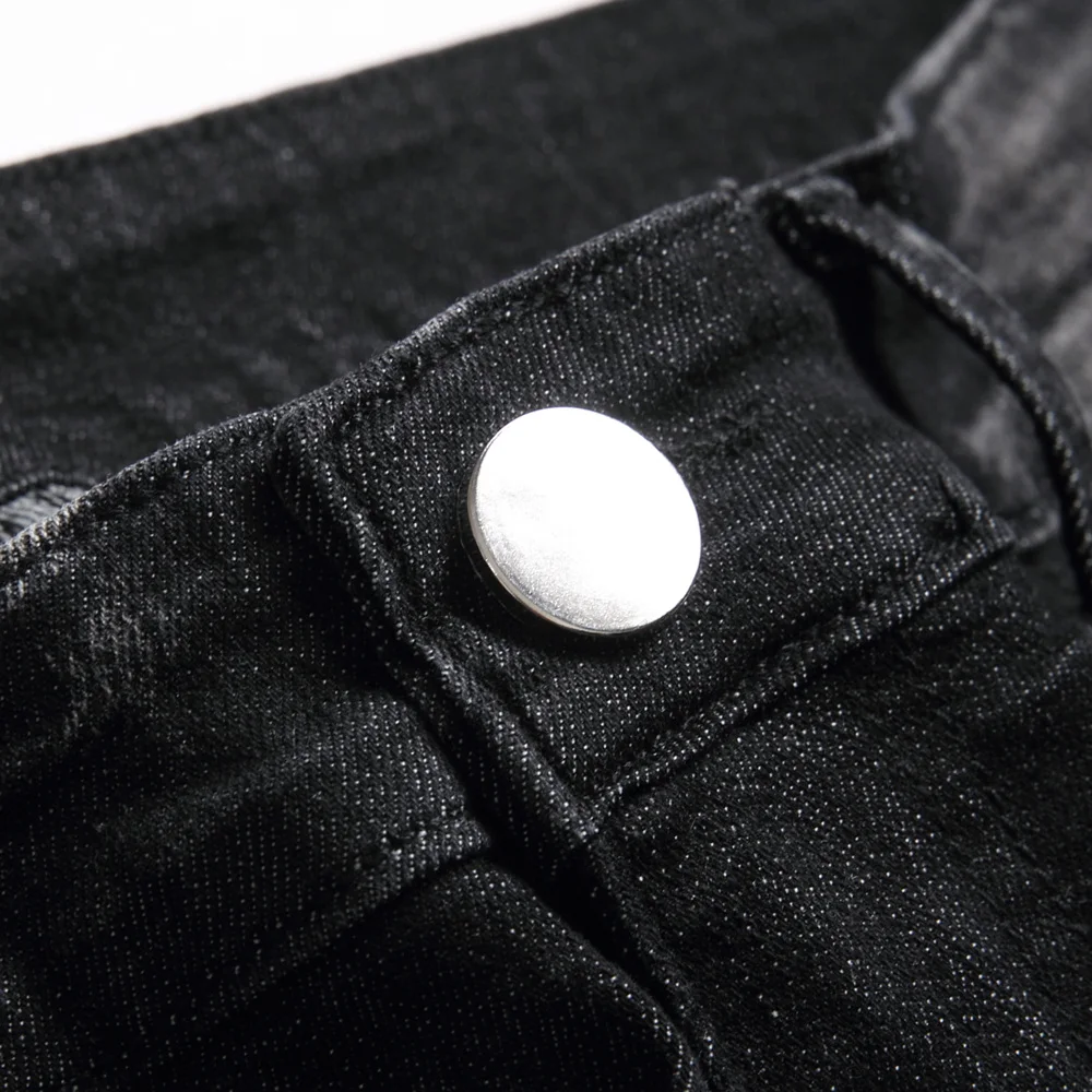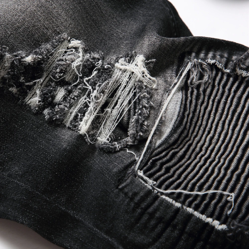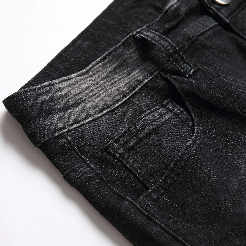 Men Streetwear Ripped Splicing Biker Jeans Skinny Denim Trousers Stylish Slim Holes Male Pencil Denim Pants
