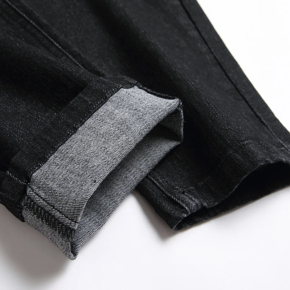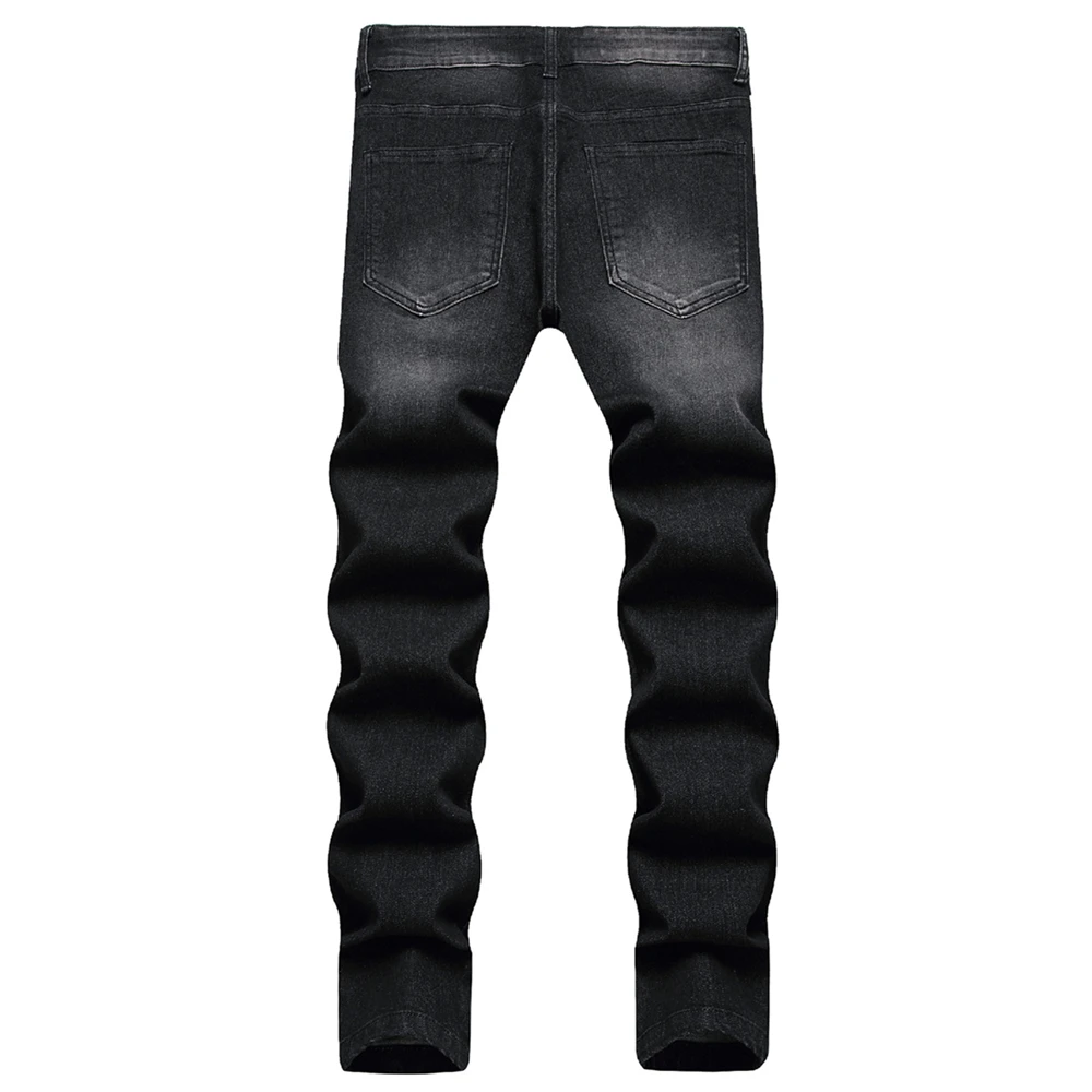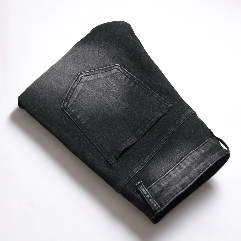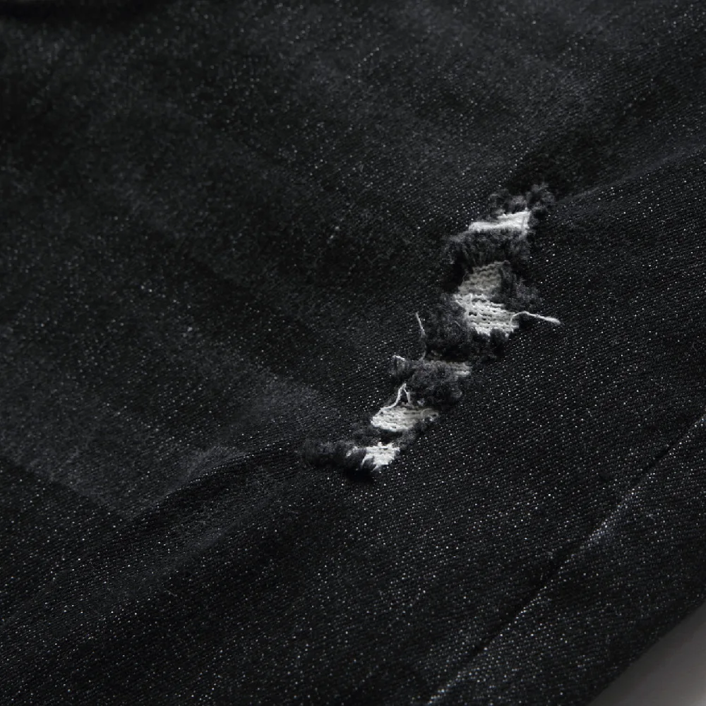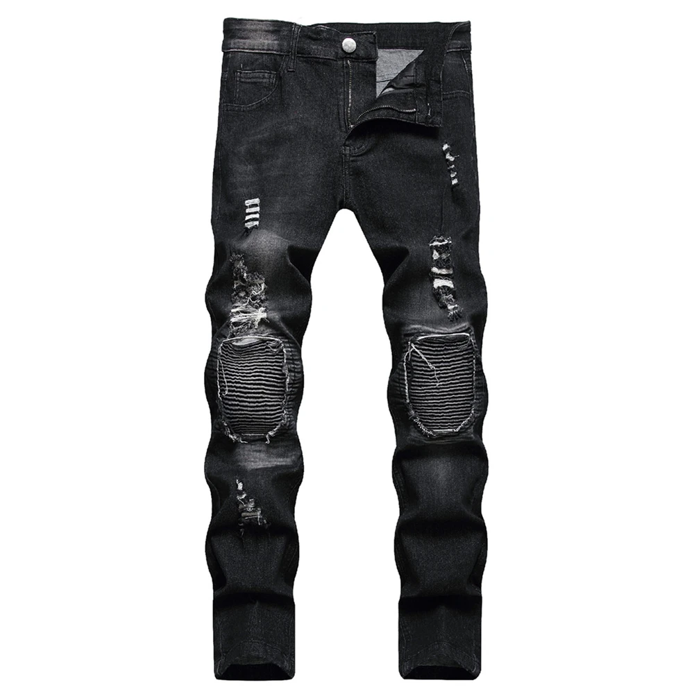 Men Streetwear Ripped Splicing Biker Jeans Skinny Denim Trousers Stylish Slim Holes Male Pencil Denim Pants
