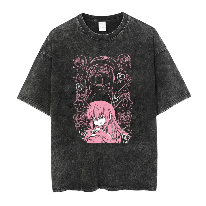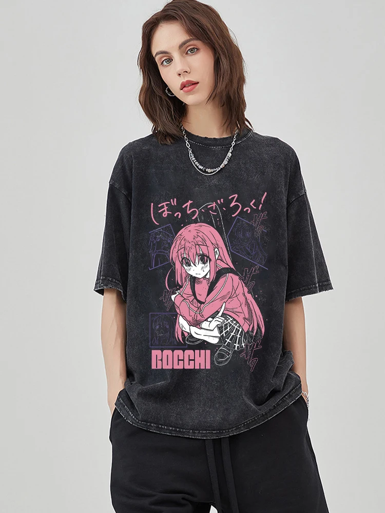 Men T-Shirt Bocchi The Rock Manga Ryo Top Print Vintage T-Shirt Casual Basis O-Collar Black Shirt Short Sleeve Washed T-Shirt