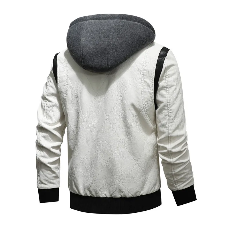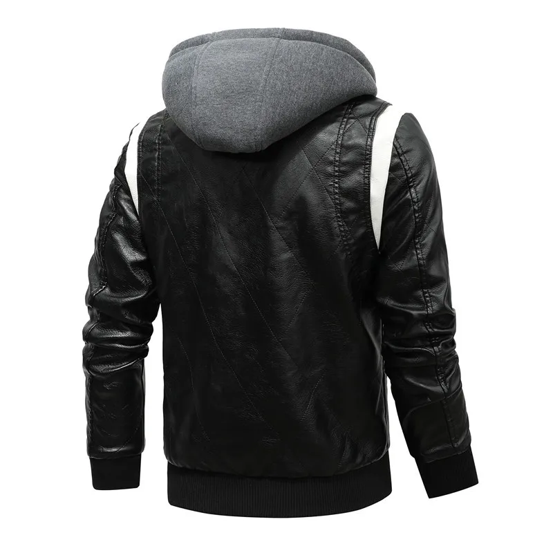 Men Winter Driving Leather Jacket Men Scorpion Embroidered Hooded Jacket PU Leather Motorcycle Jacket