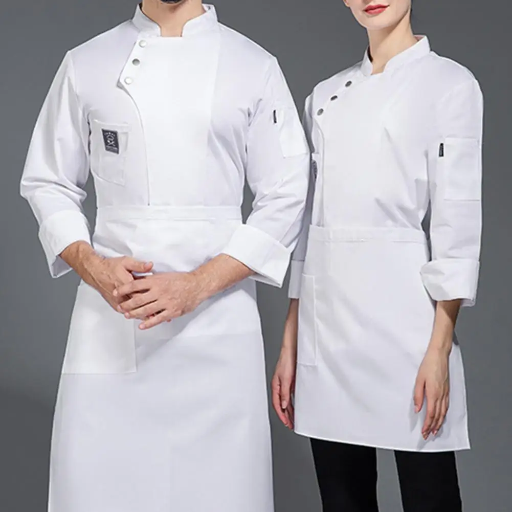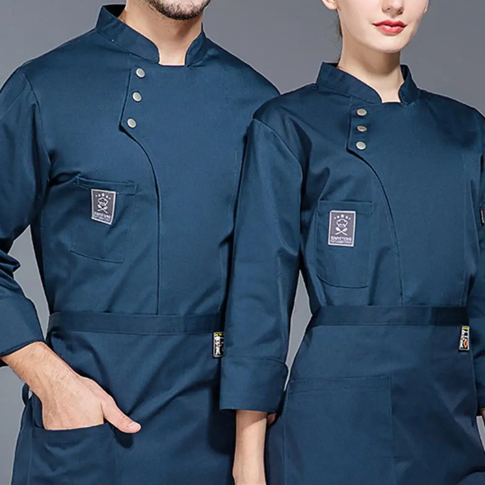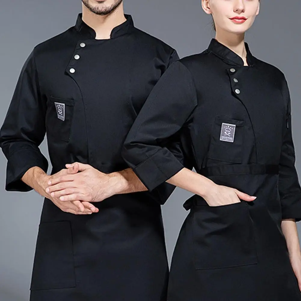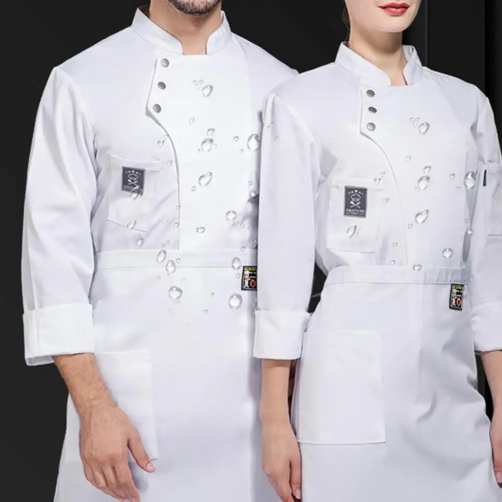 Men Women Chef Uniform Stand Collar Single-breasted Pocket Restaurant Uniform Waterproof Anti-dirty Bakery Food Chef Tops