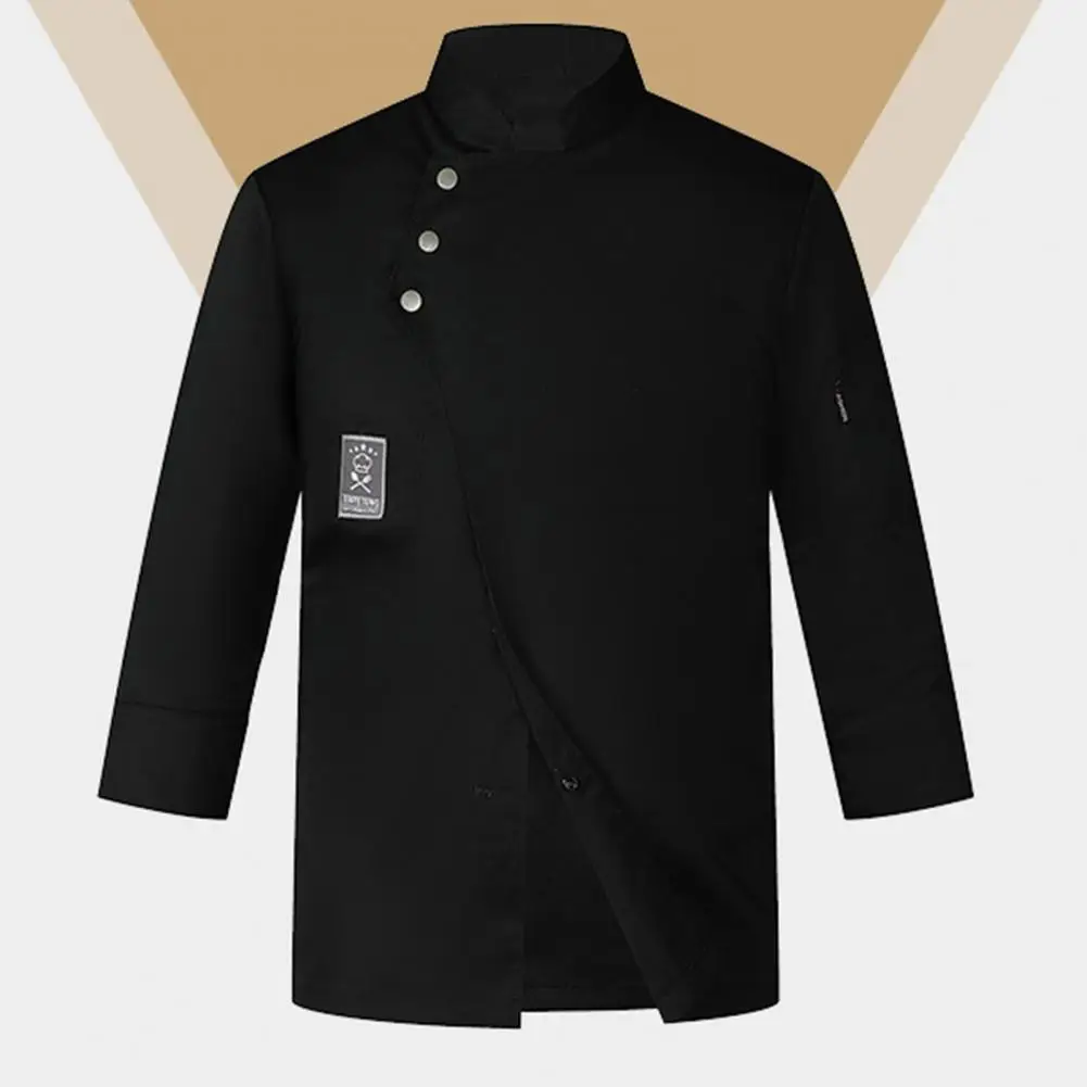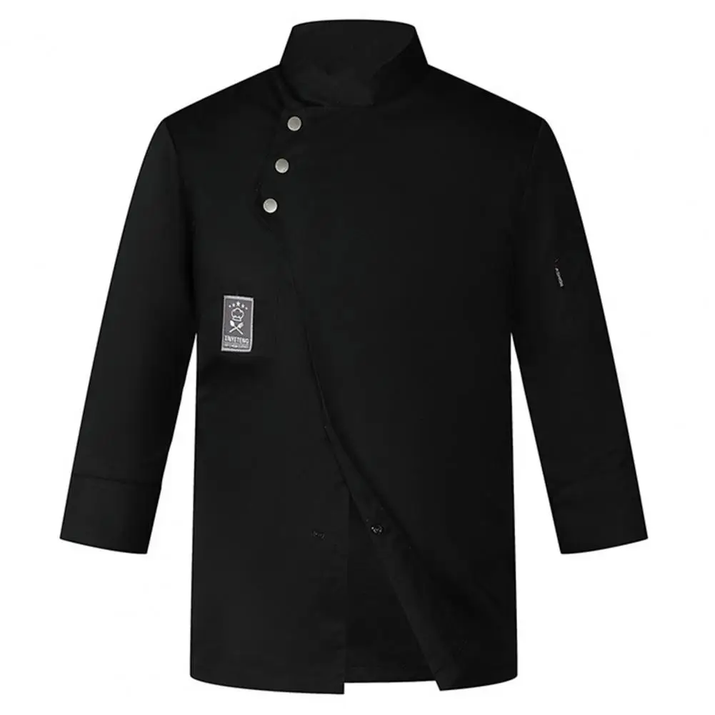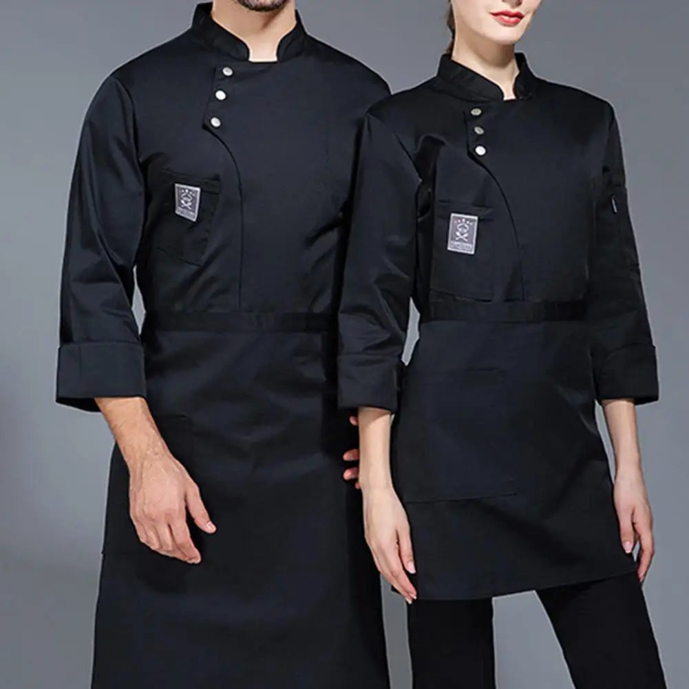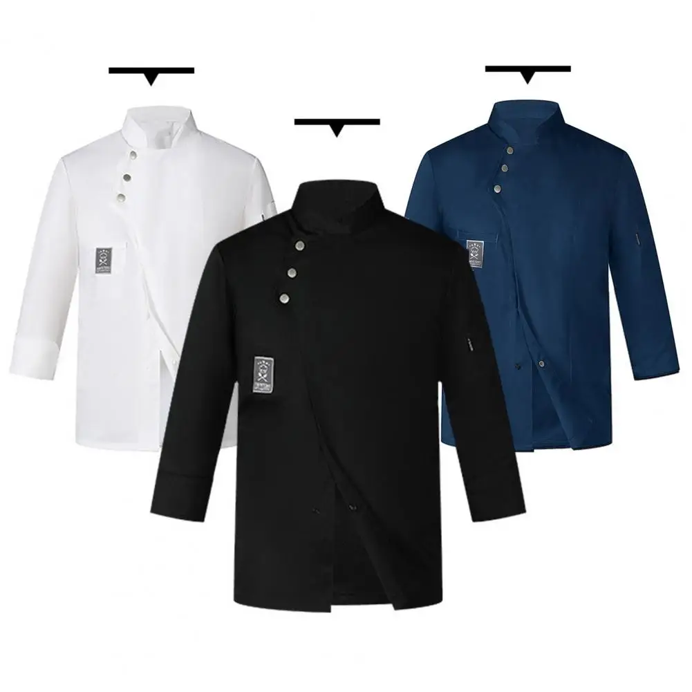 Men Women Chef Uniform Stand Collar Single-breasted Pocket Restaurant Uniform Waterproof Anti-dirty Bakery Food Chef Tops