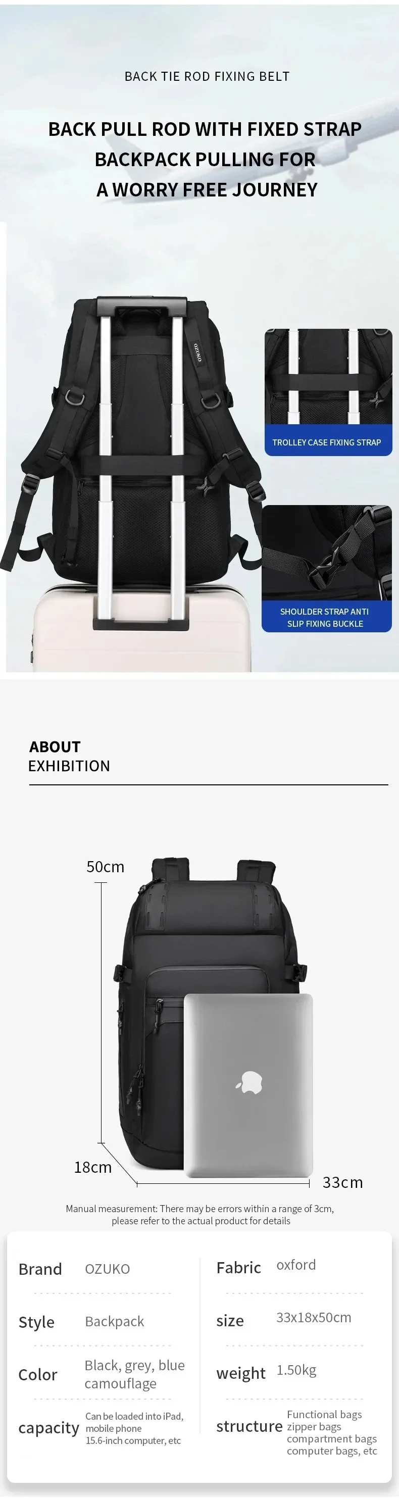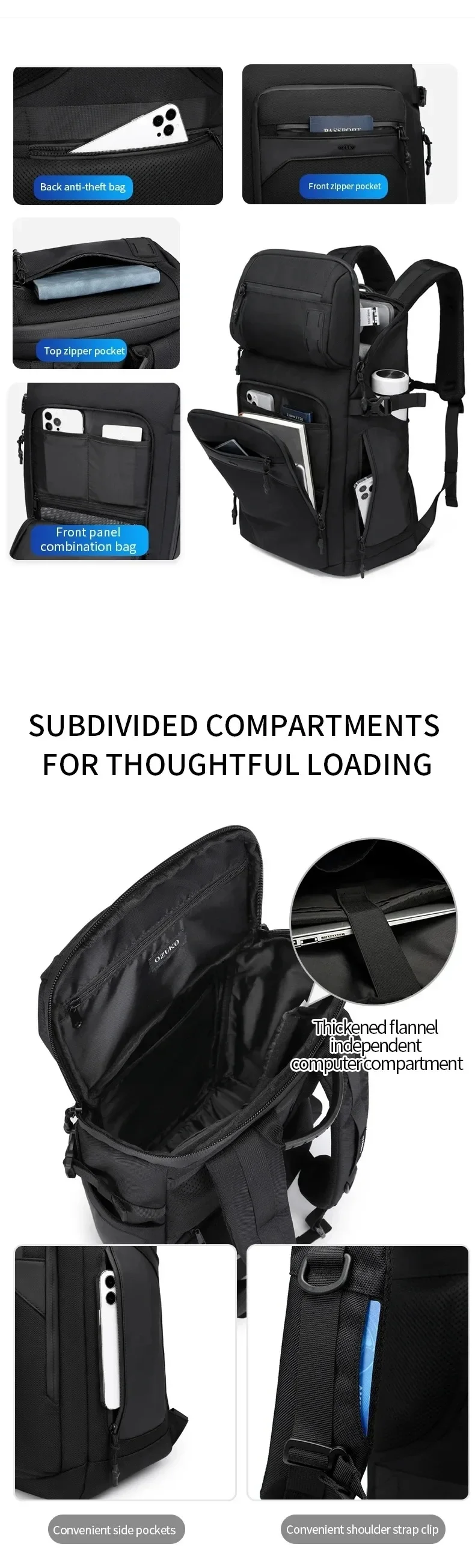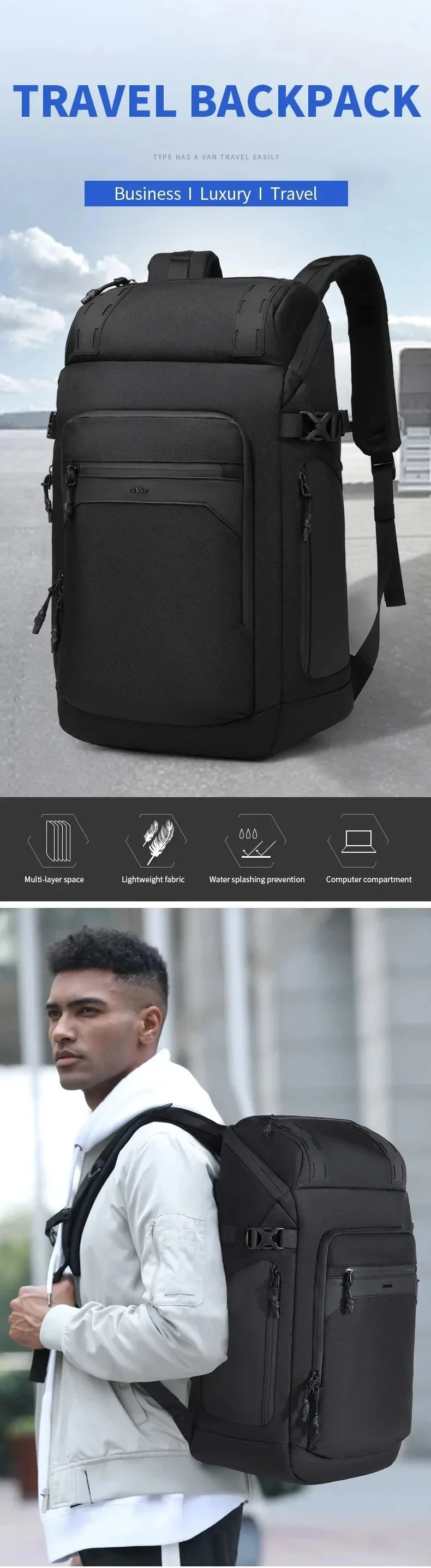 Men’s 40 L Travel Backpack Waterproof Quality 17-inch Laptop Backpack Outdoor Tactical Backpack Business Commuting Backpack