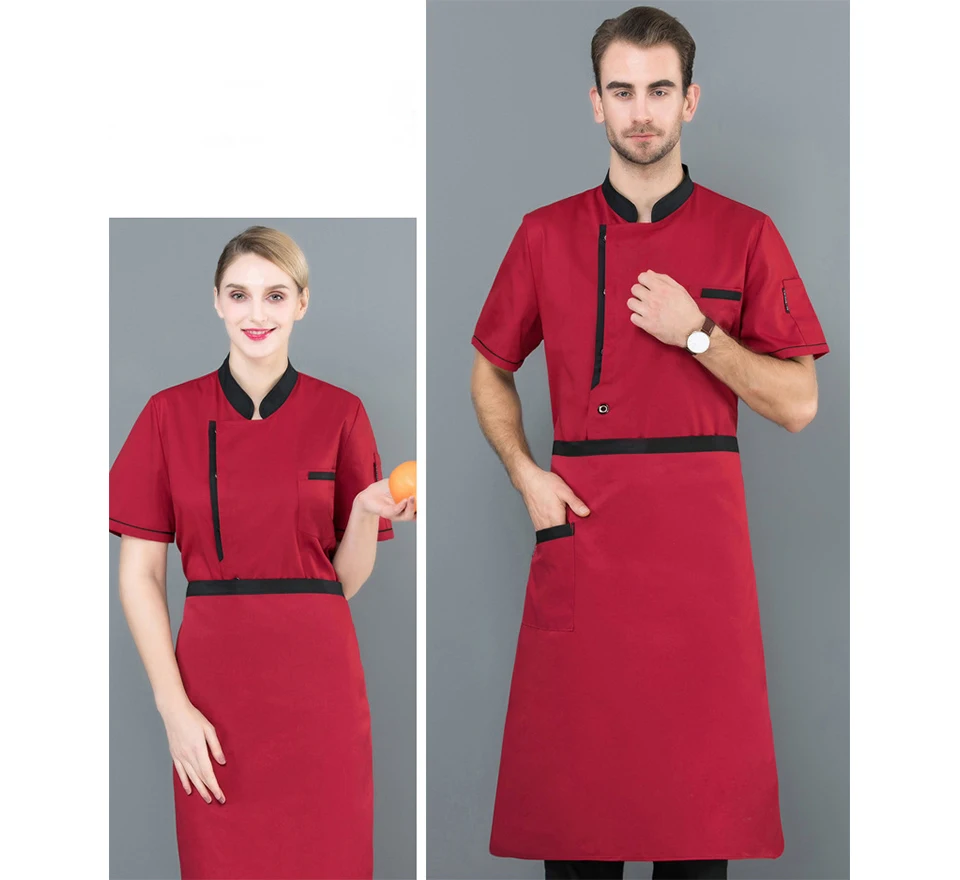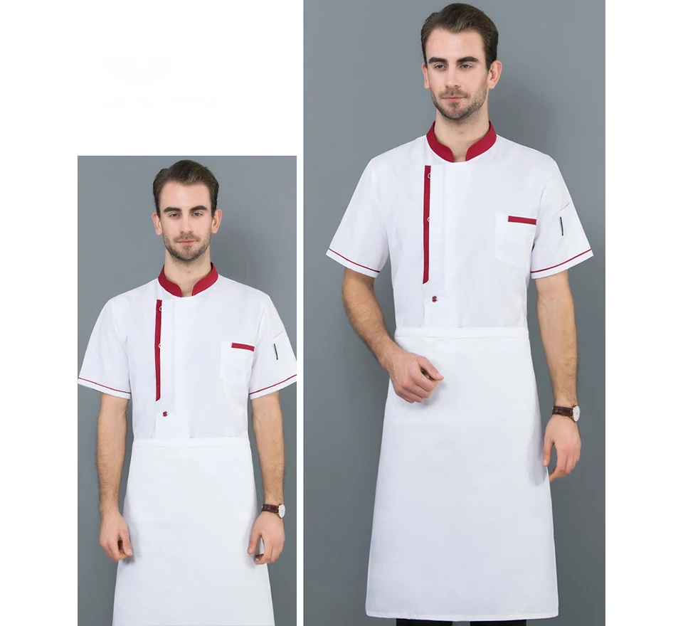 Men’s Chef Jacket Catering Hotel Kitchen Uniform Western Restaurant Cook Costume Cake Shop Cafe Waiter Short-Sleeved Overalls