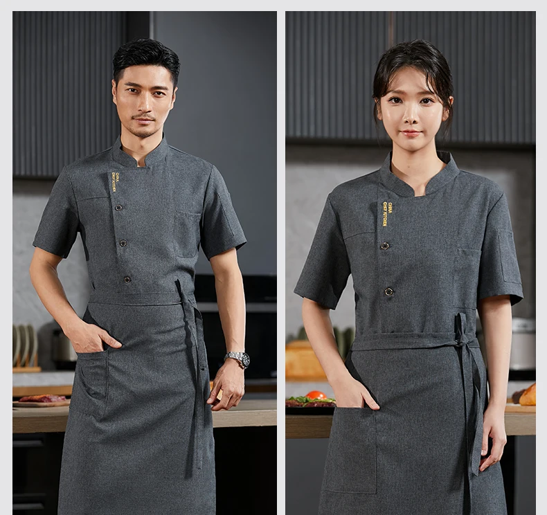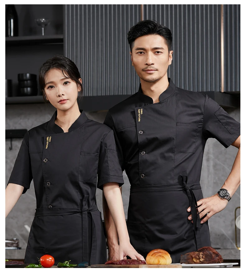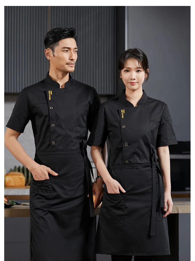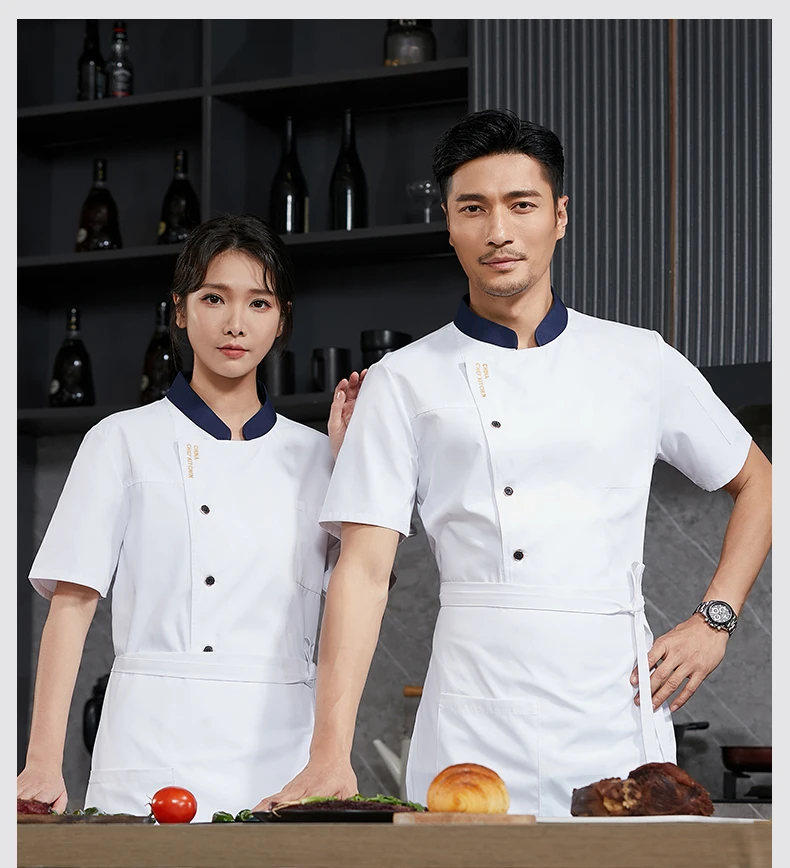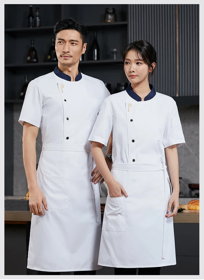 Men’s Chef Jacket Restaurant Kitchen Cook Workwear Waiter Uniform Barber White T-Shirt Catering Cooking Costume Bakery Overalls
