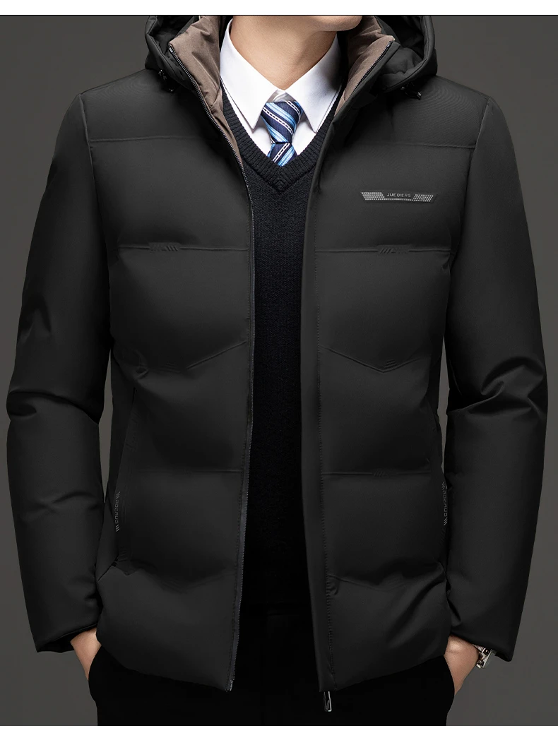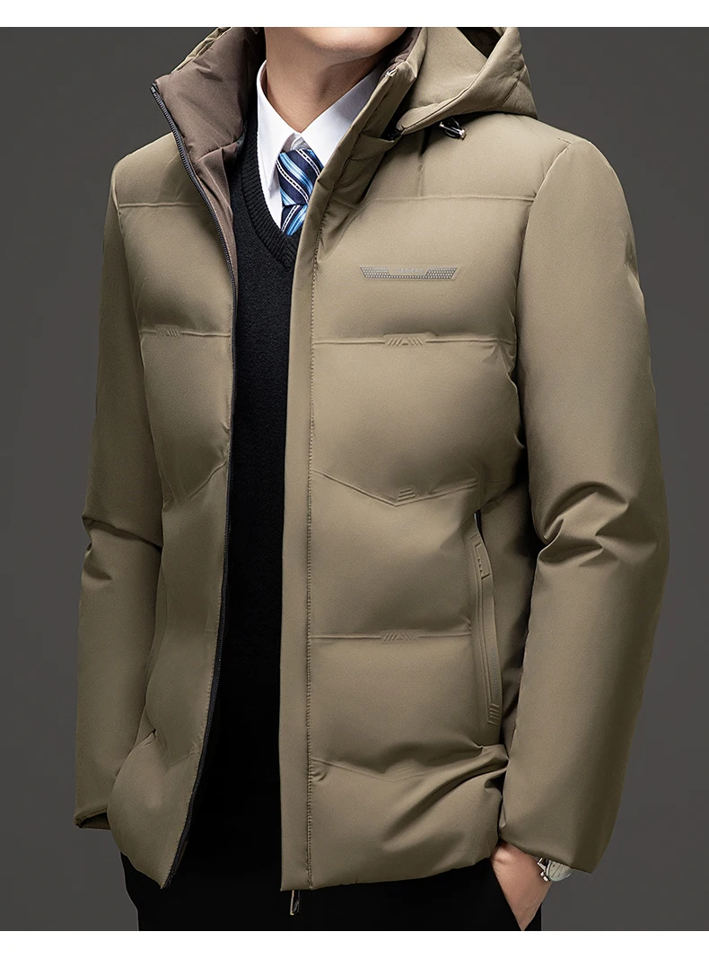 Men’s Down Jacket Autumn Winter New Solid Color Windproof Warm Thickened Casual Business Hooded Coat Men Simple padded Clothing