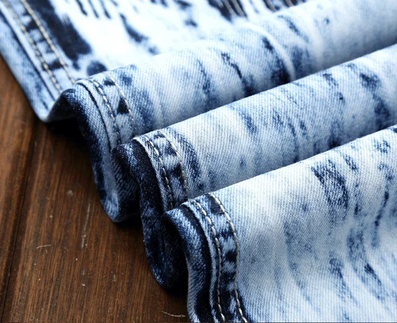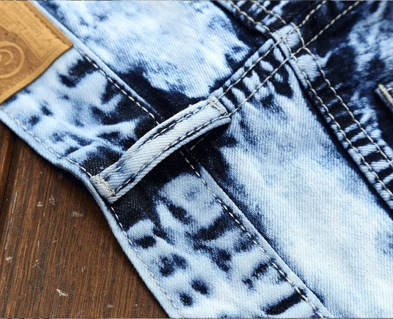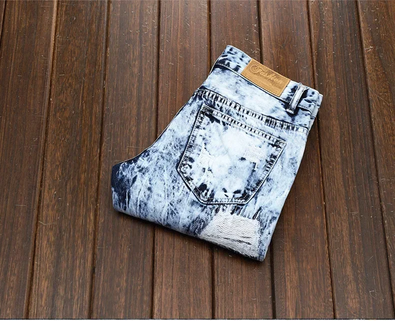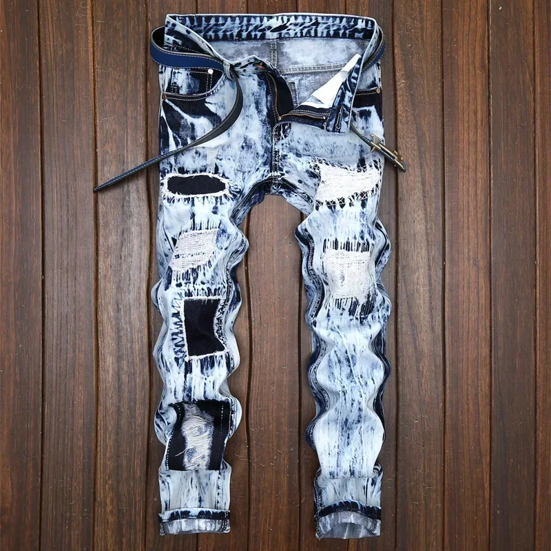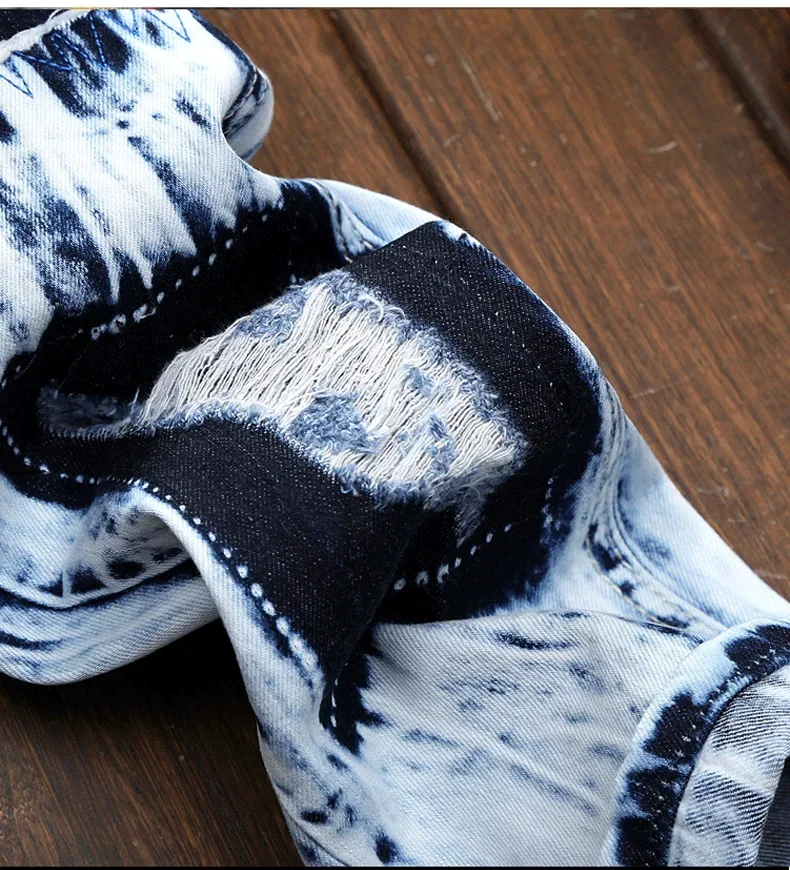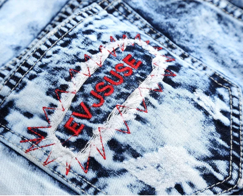 Men’s Embroidered Patchwork Ripped Jeans (without Belt) Slim Fashion High Street Motorcycle Denim Pants Male Designer Clothes