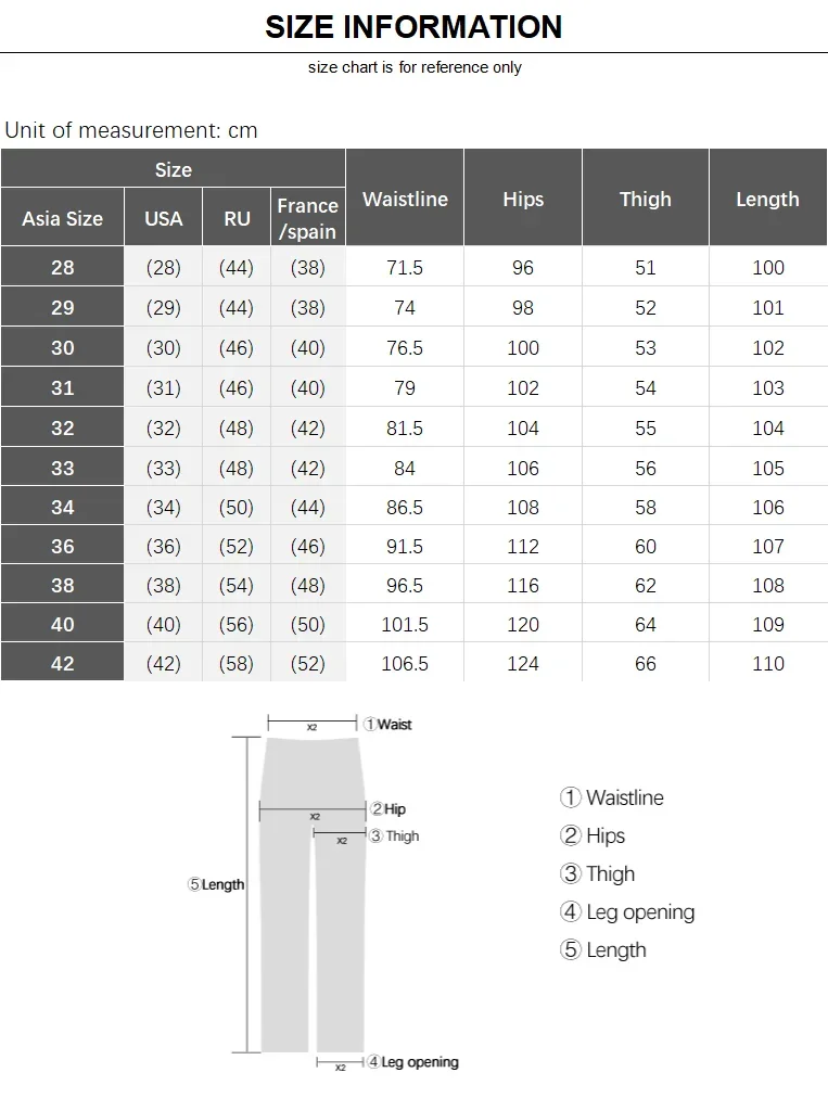 1. The manufacturer is a China size,32 Size ≈ 32 inches Waist Please tell us your height and weight, and we suggest a suitable size for you.