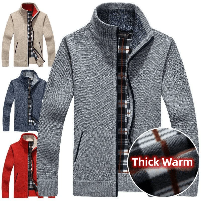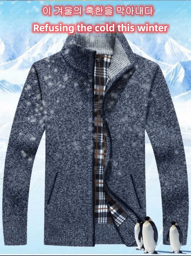 Men’s Fashion Autumn Winter Men’s Jacket New Jacket Men’s Fleece Thick Warm Large Size Casual Loose Jacket Top Knitted Cold Coat