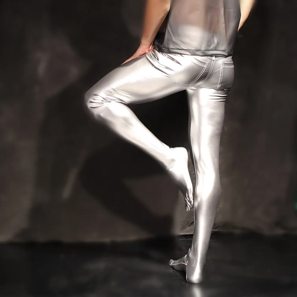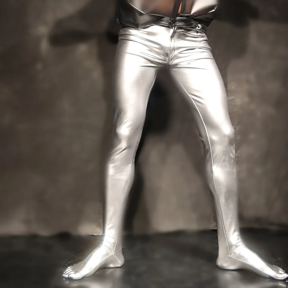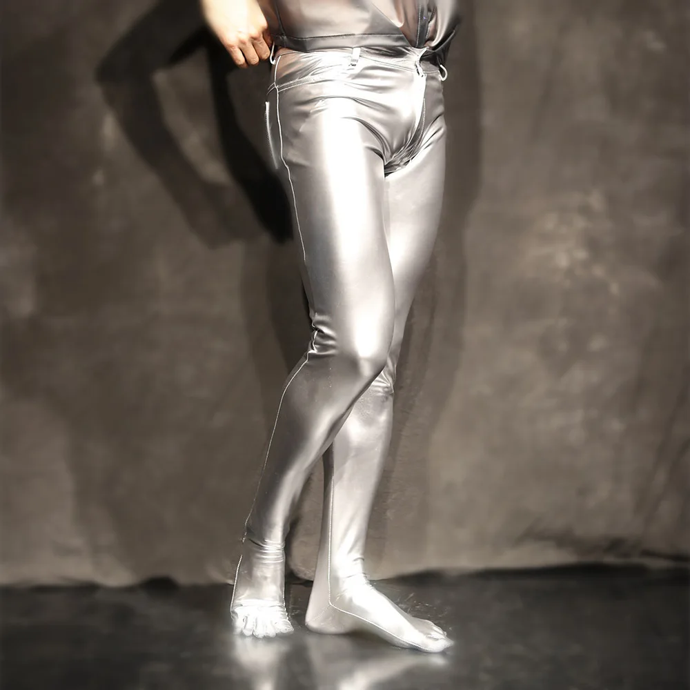 Men's Faux Latex PU Pencil Pants Shiny PVC Low Waist Tights Fashion Five Toes Socks Shaper Wear Pants Man Night Club Trousers