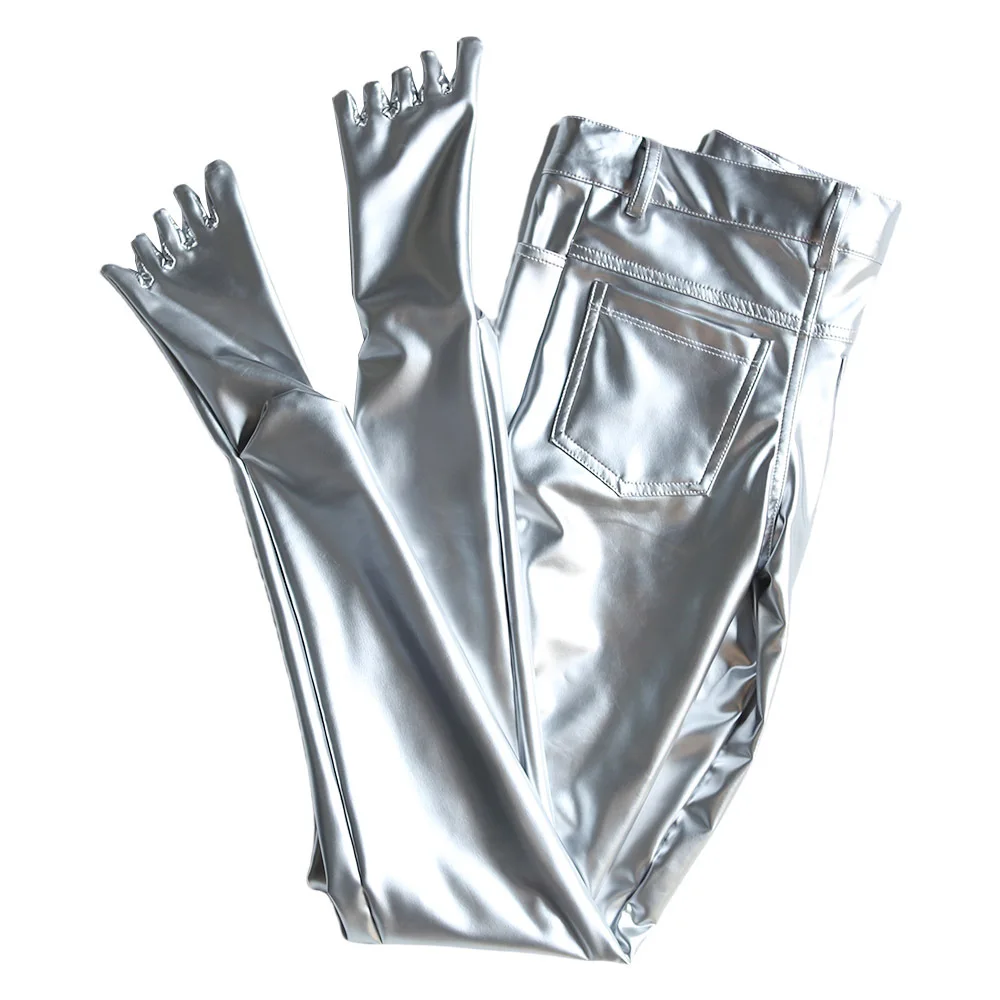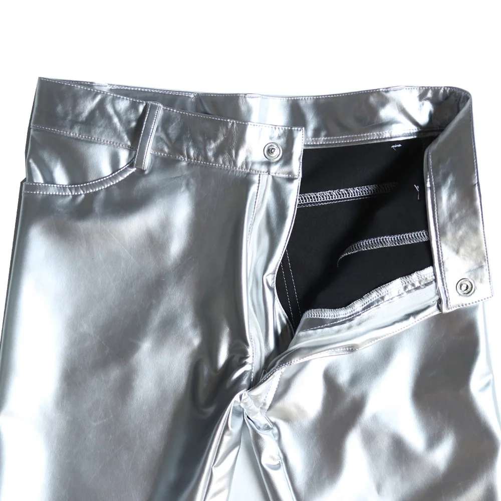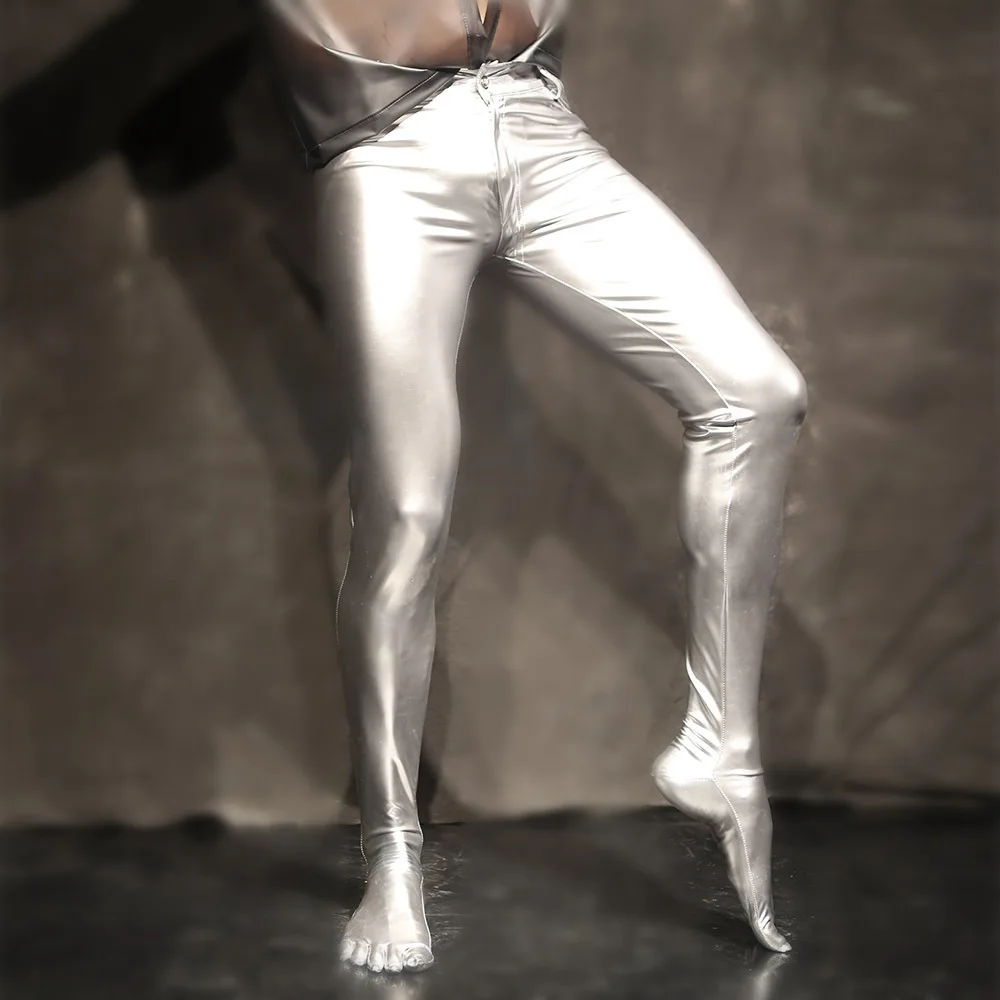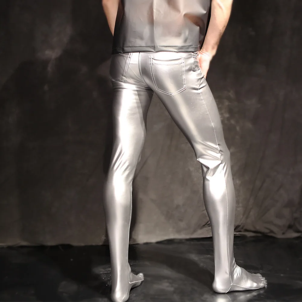 Men's Faux Latex PU Pencil Pants Shiny PVC Low Waist Tights Fashion Five Toes Socks Shaper Wear Pants Man Night Club Trousers