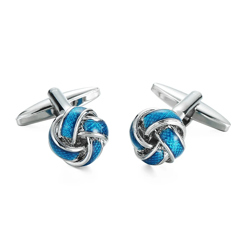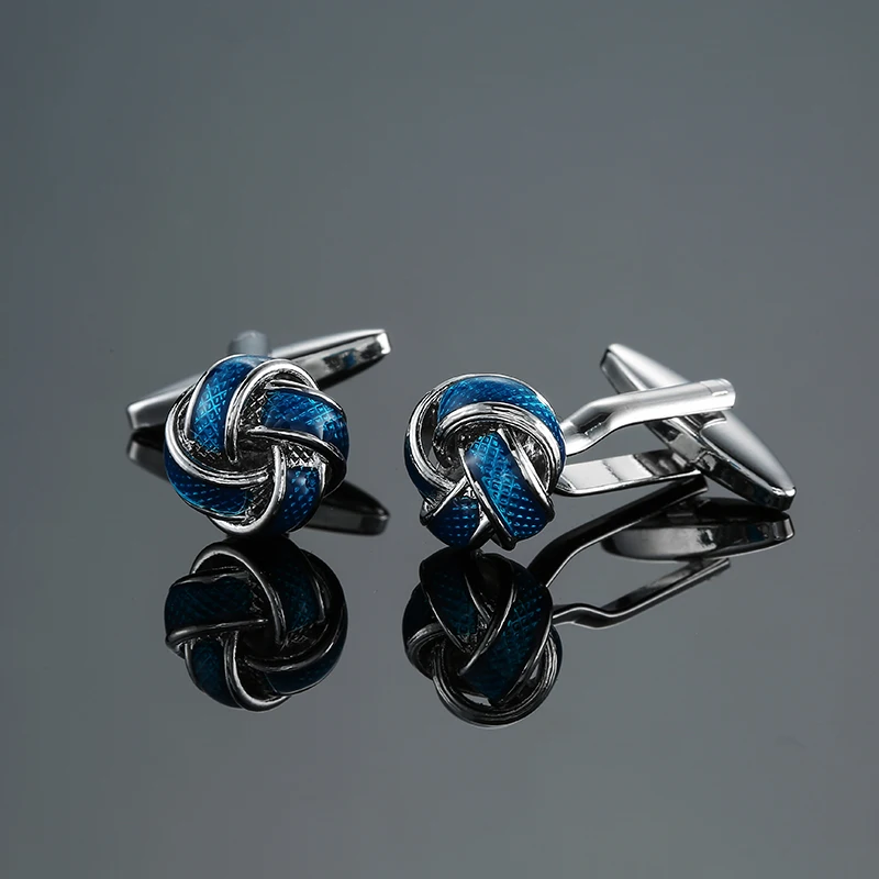 Men’s French shirt cufflinks copper material round blue woven knot cufflinks fashionable clothing accessories wholesale