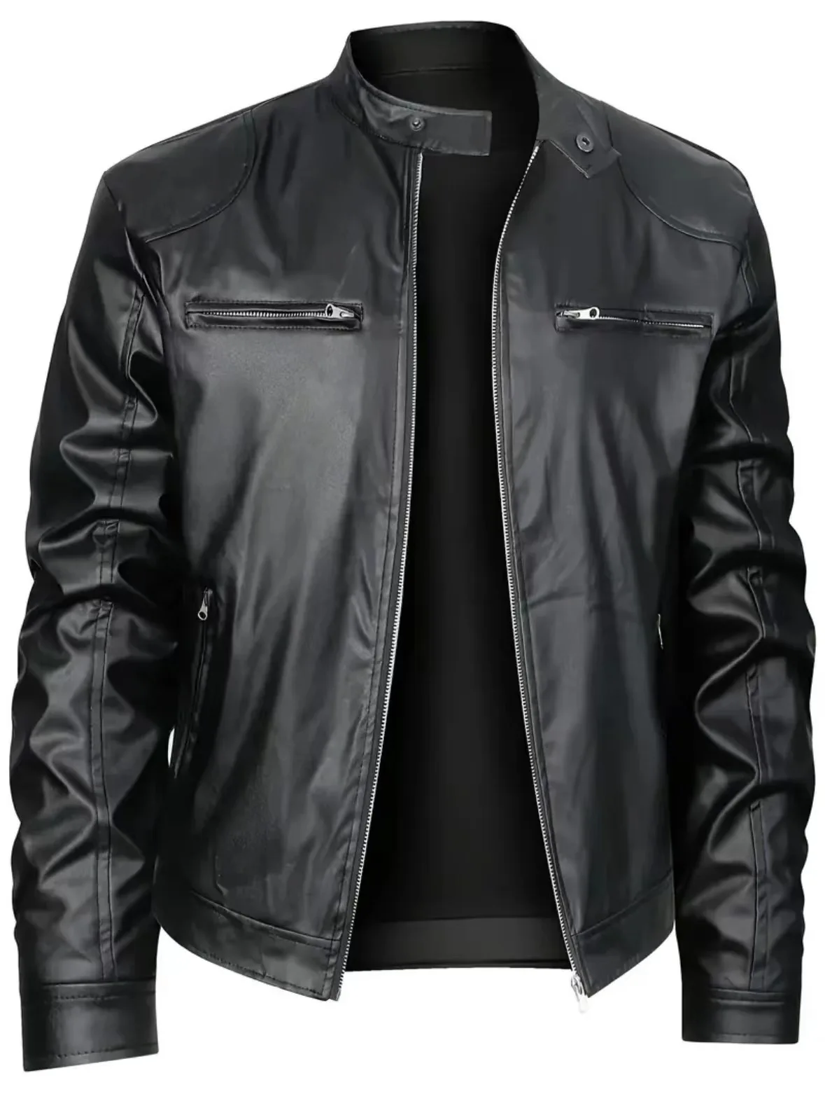 Mens High-quality Locomotive Leather Jacket Fashion Stand-up Collar Punk Leather Jacket Men