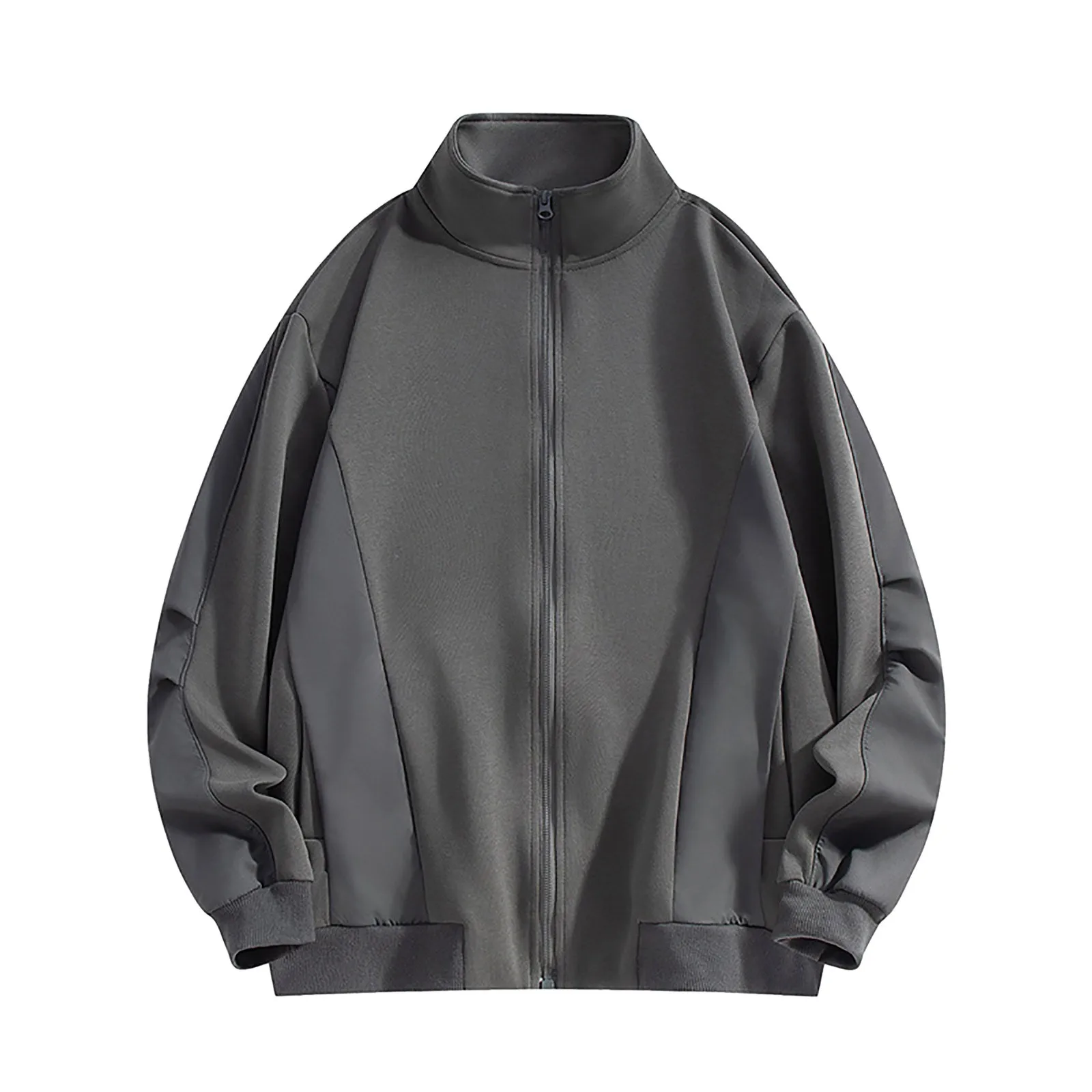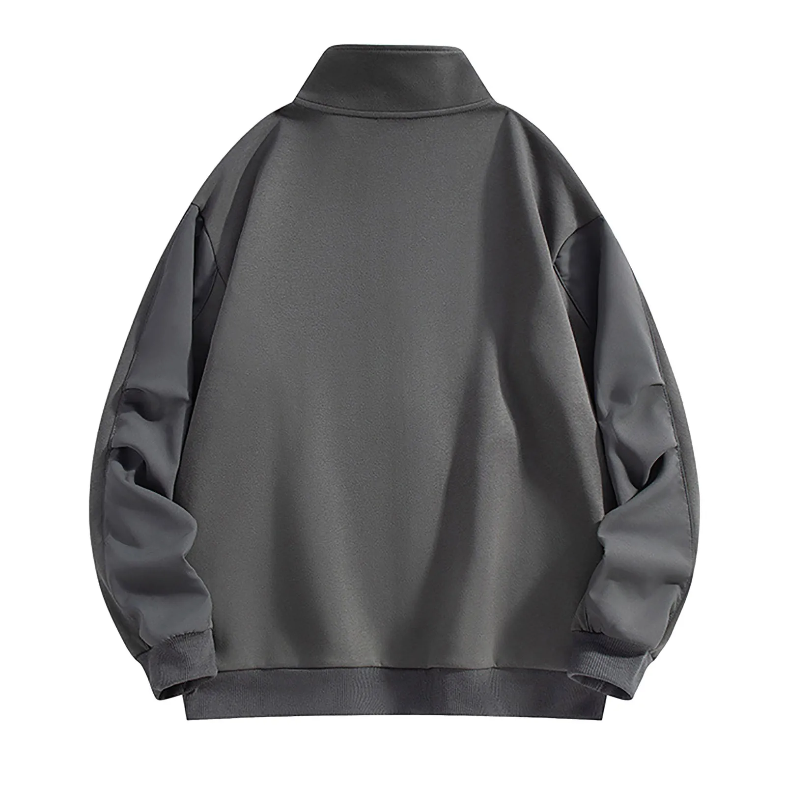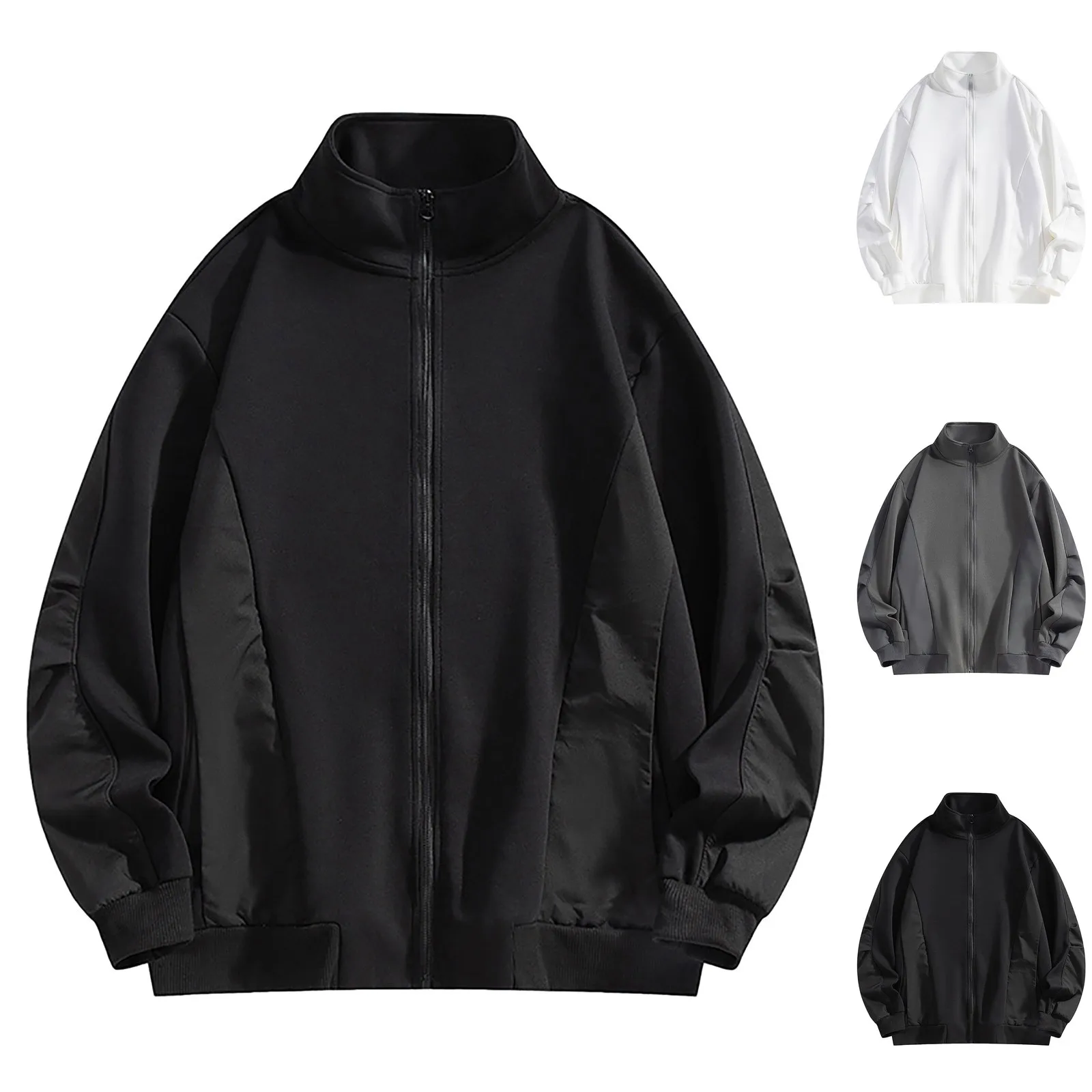 Mens Hoodless Sweatshirt Casual Sports Zipper Sweatshirt Solid Color Round Neck Long Sleeved Jacket Coat Casual Sports Tops