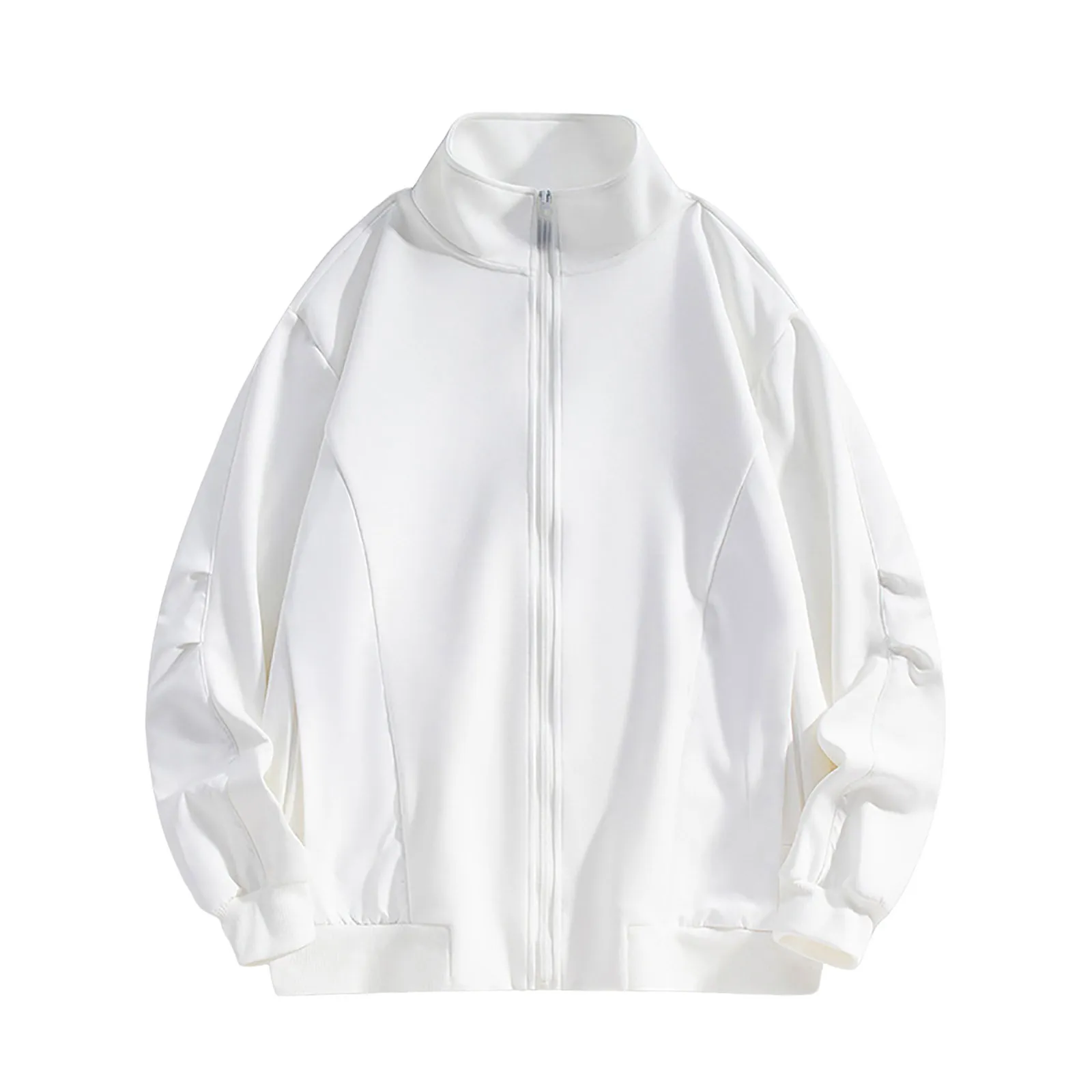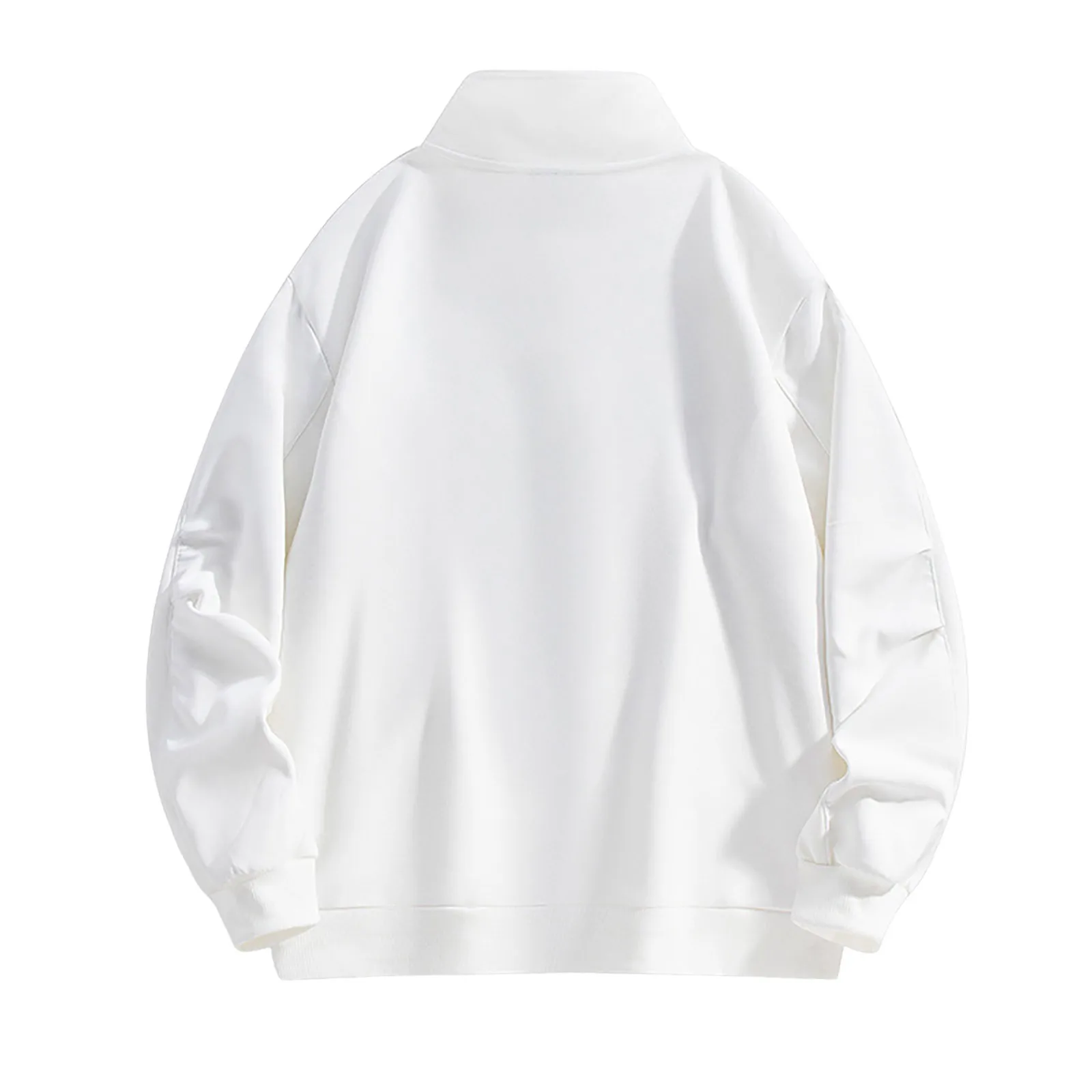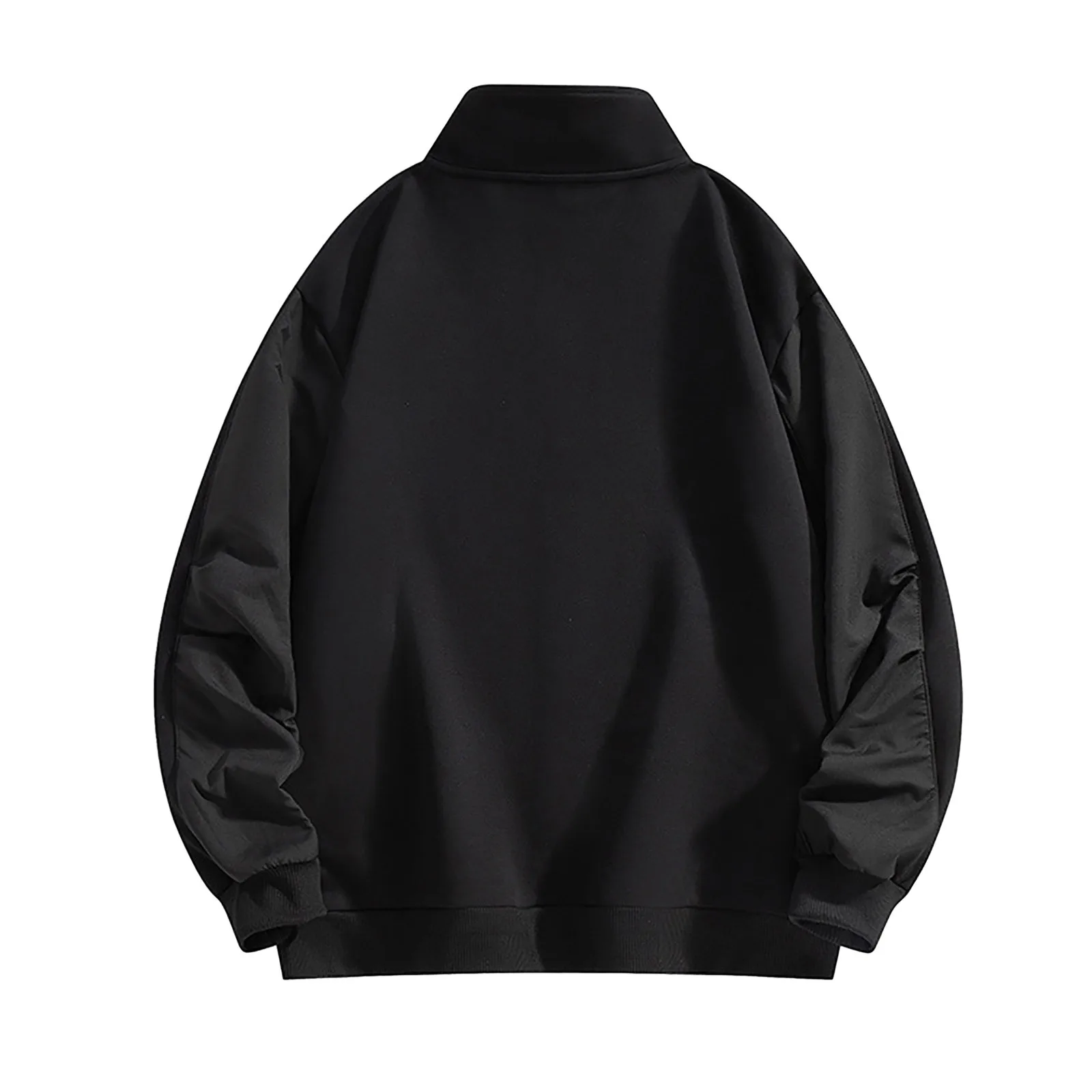 Mens Hoodless Sweatshirt Casual Sports Zipper Sweatshirt Solid Color Round Neck Long Sleeved Jacket Coat Casual Sports Tops