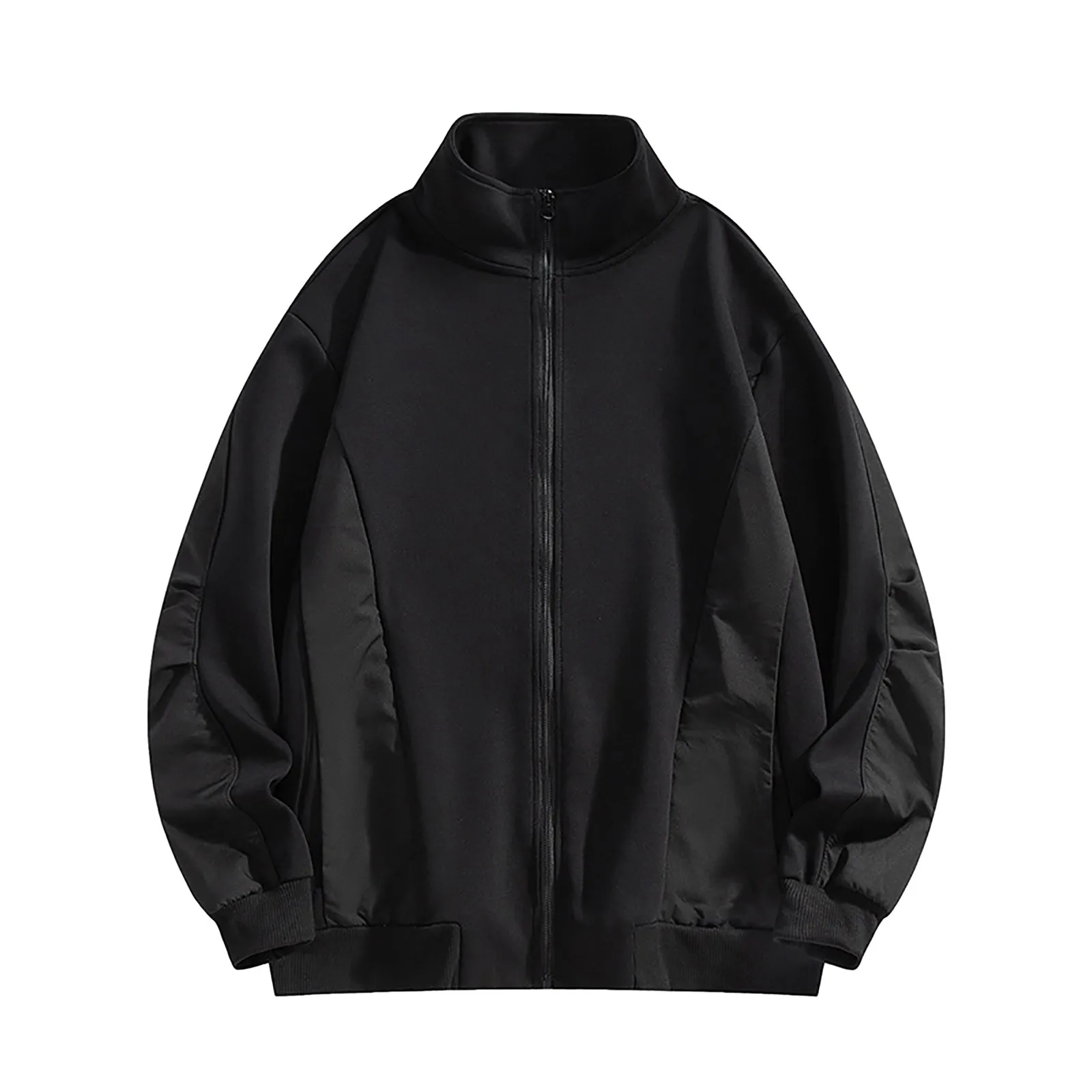 DETAILS: Features a mock-neck with full-length center-front zipper, two zippered hand pockets, and elastic-bound sleeve cuffs and bottom opening.