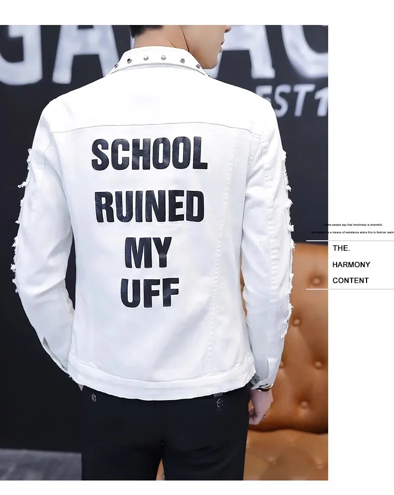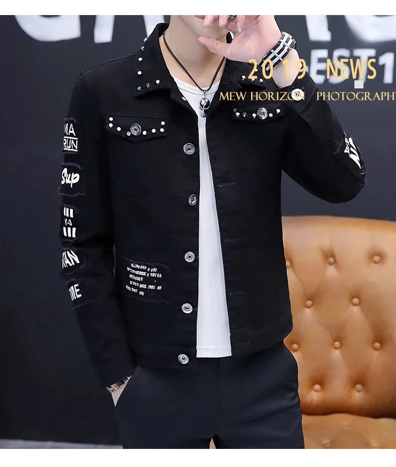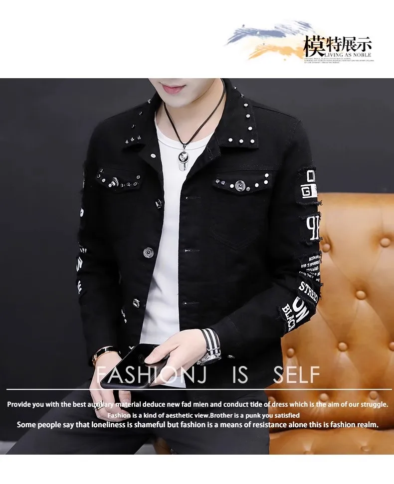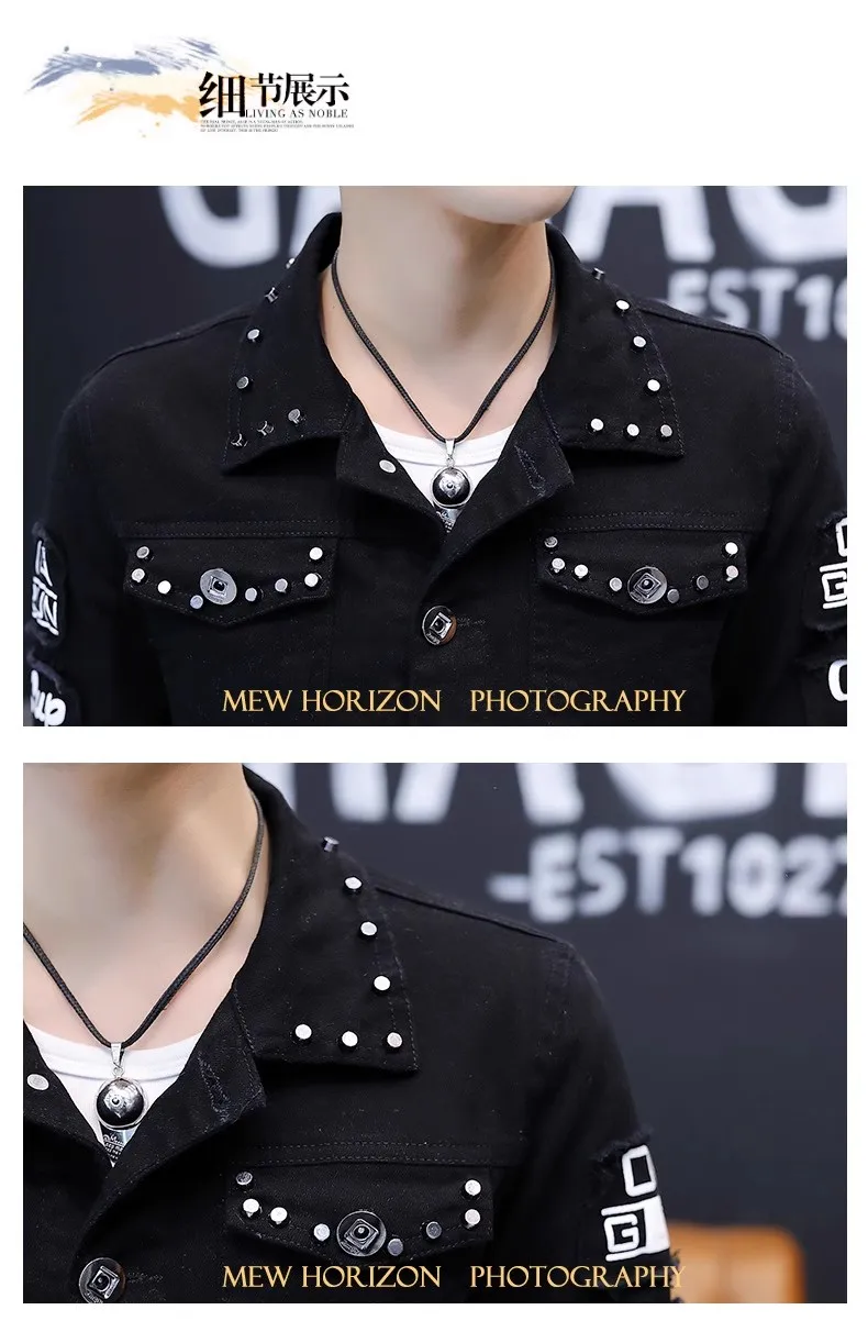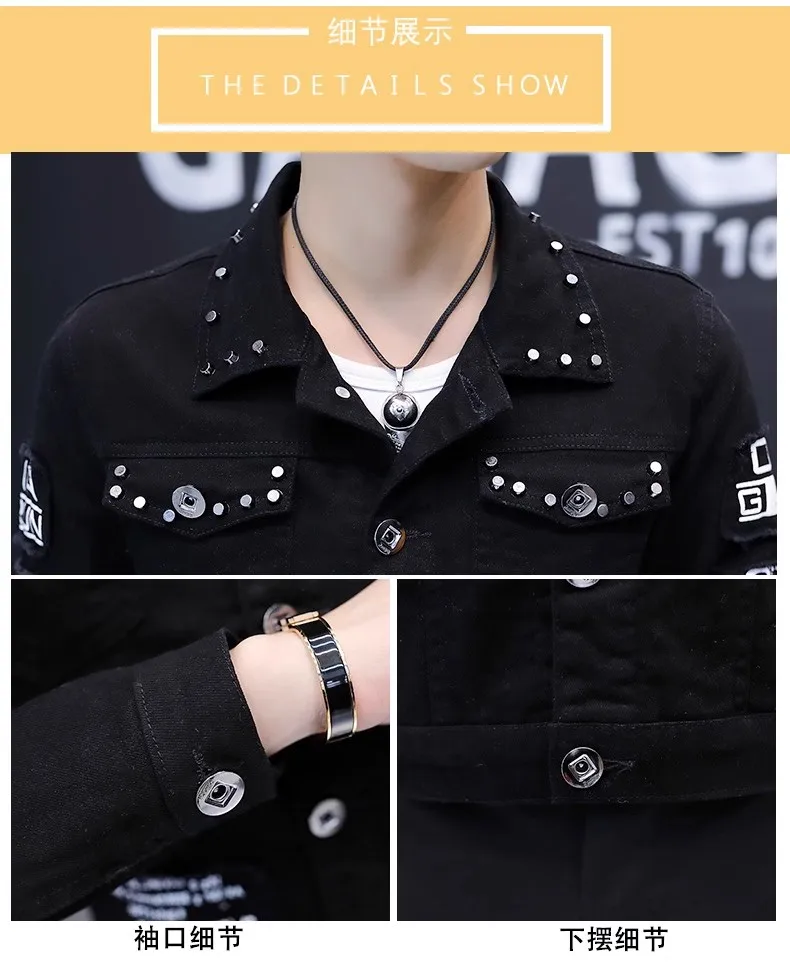 Mens Jacket Lapel Solid Rivet Denim Jacket korean fashion Casual Tight Coat Short Homme Varsity Jacket High-quality Men Clothing