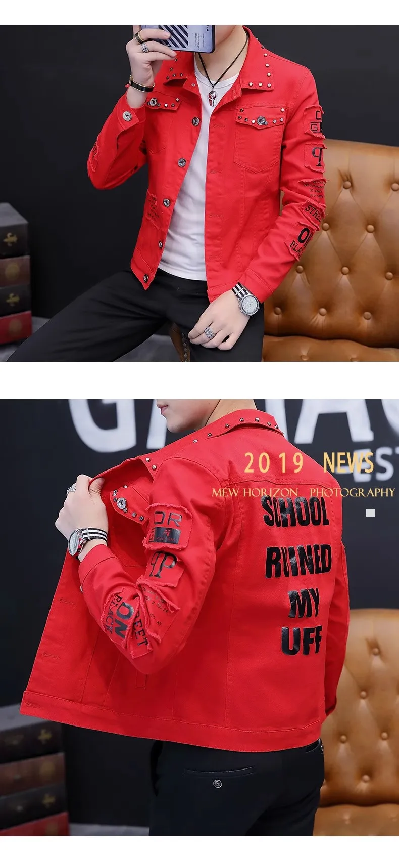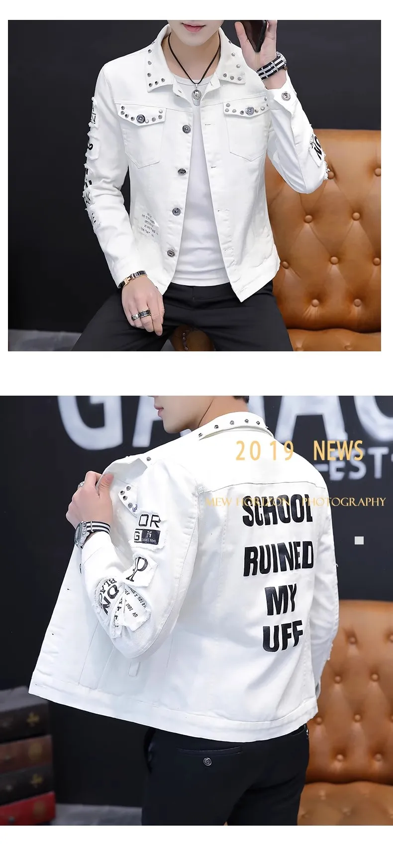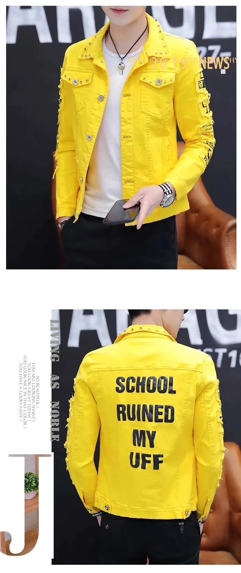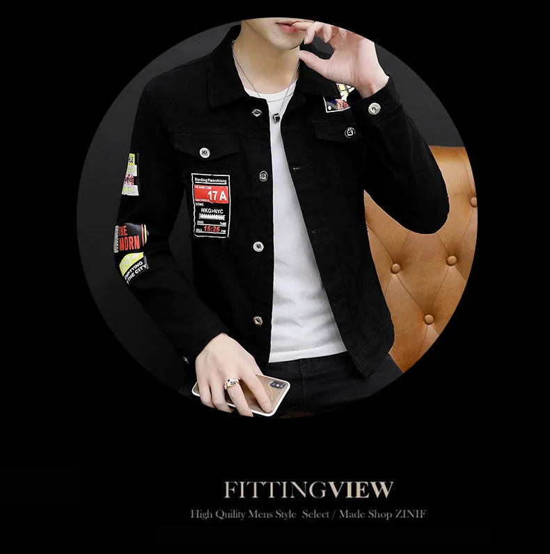 Mens Jacket Lapel Solid Rivet Denim Jacket korean fashion Casual Tight Coat Short Homme Varsity Jacket High-quality Men Clothing