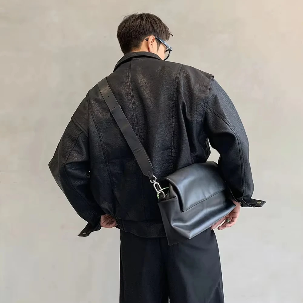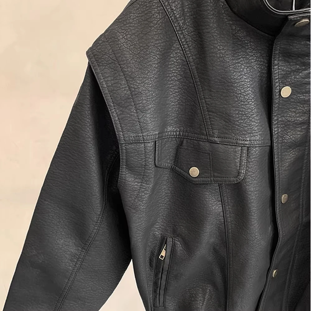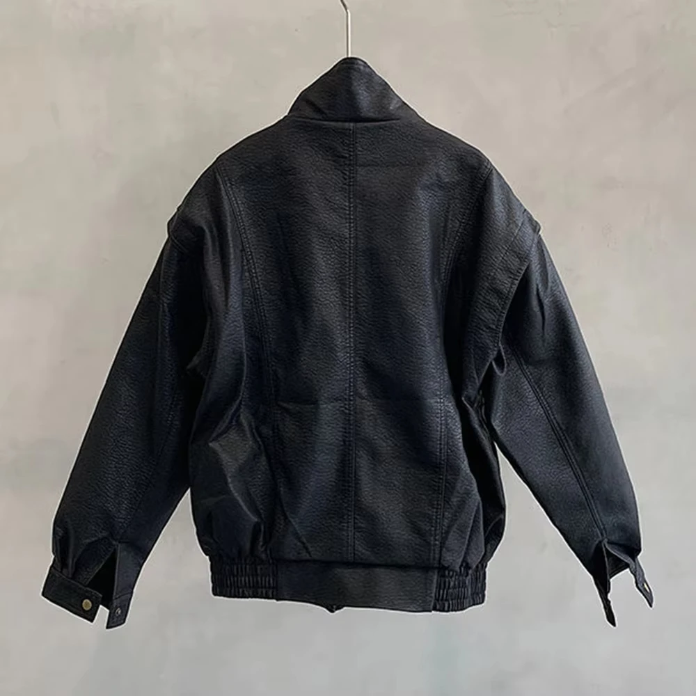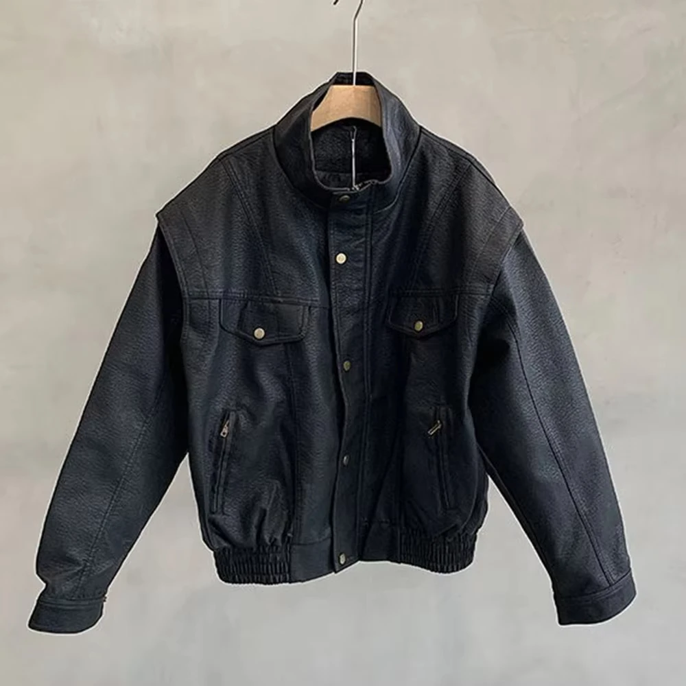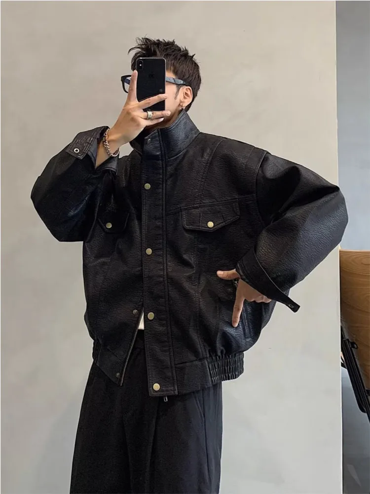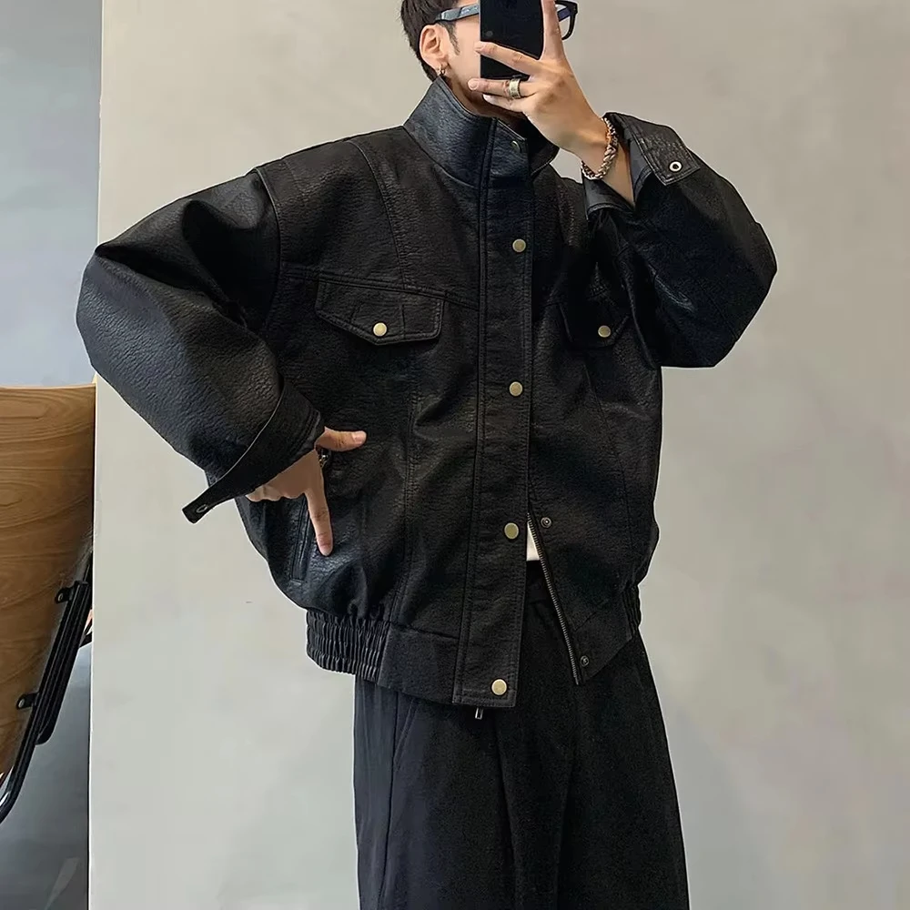 Mens Leather Jacket Pockets Zippers Buttons Windproof Baseball Jacket Spring and autumn Casual Motorcycle Jacket Men’s Clothing