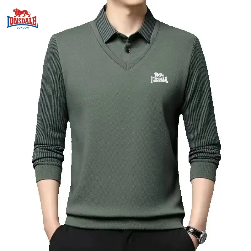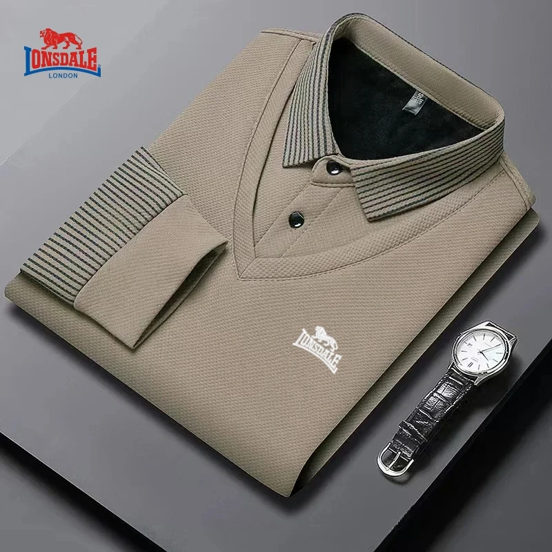 Men’s New Embroidered Long Sleeve Waffle Polo Shirt for Autumn and Winter, High Quality Luxury Fashion Business Casual Top