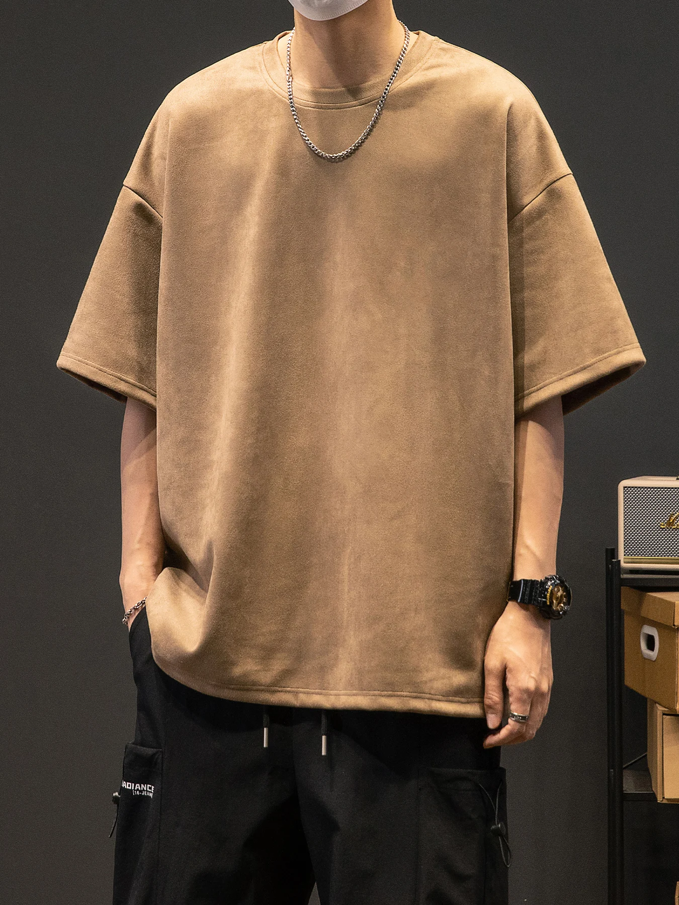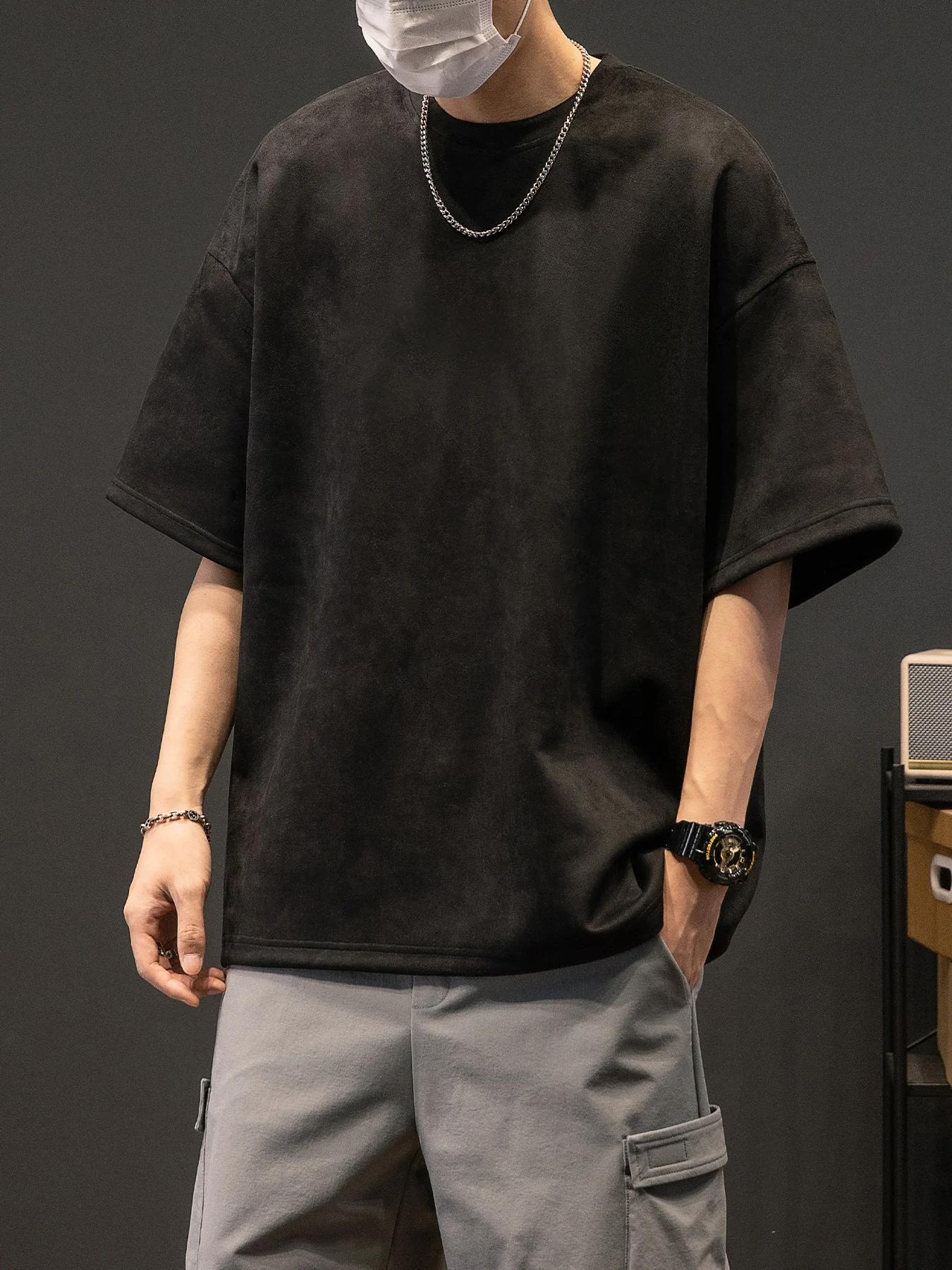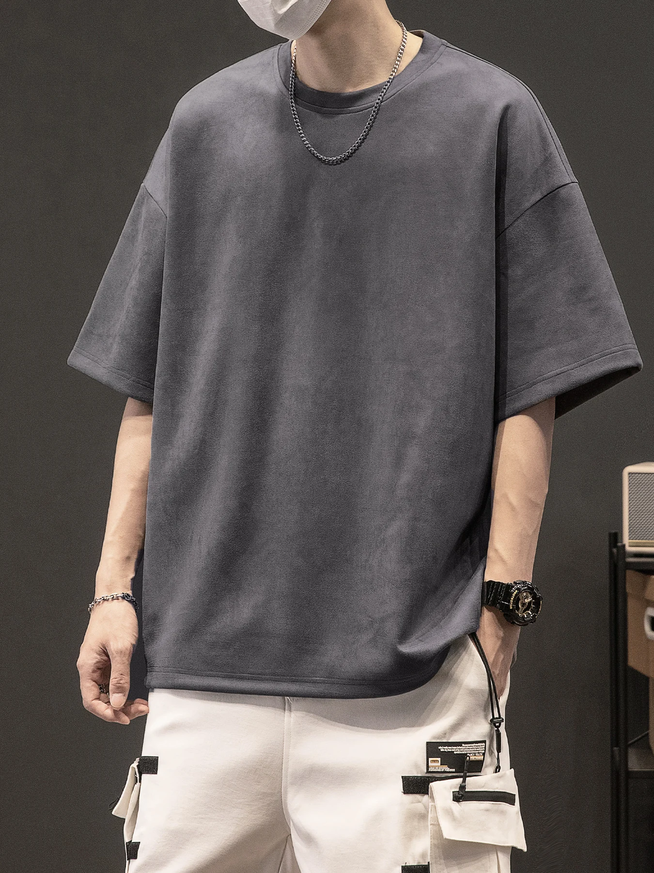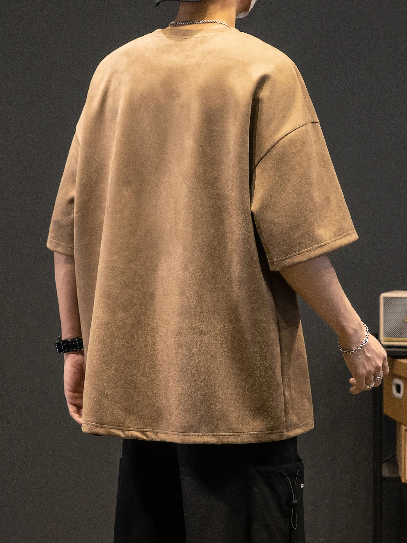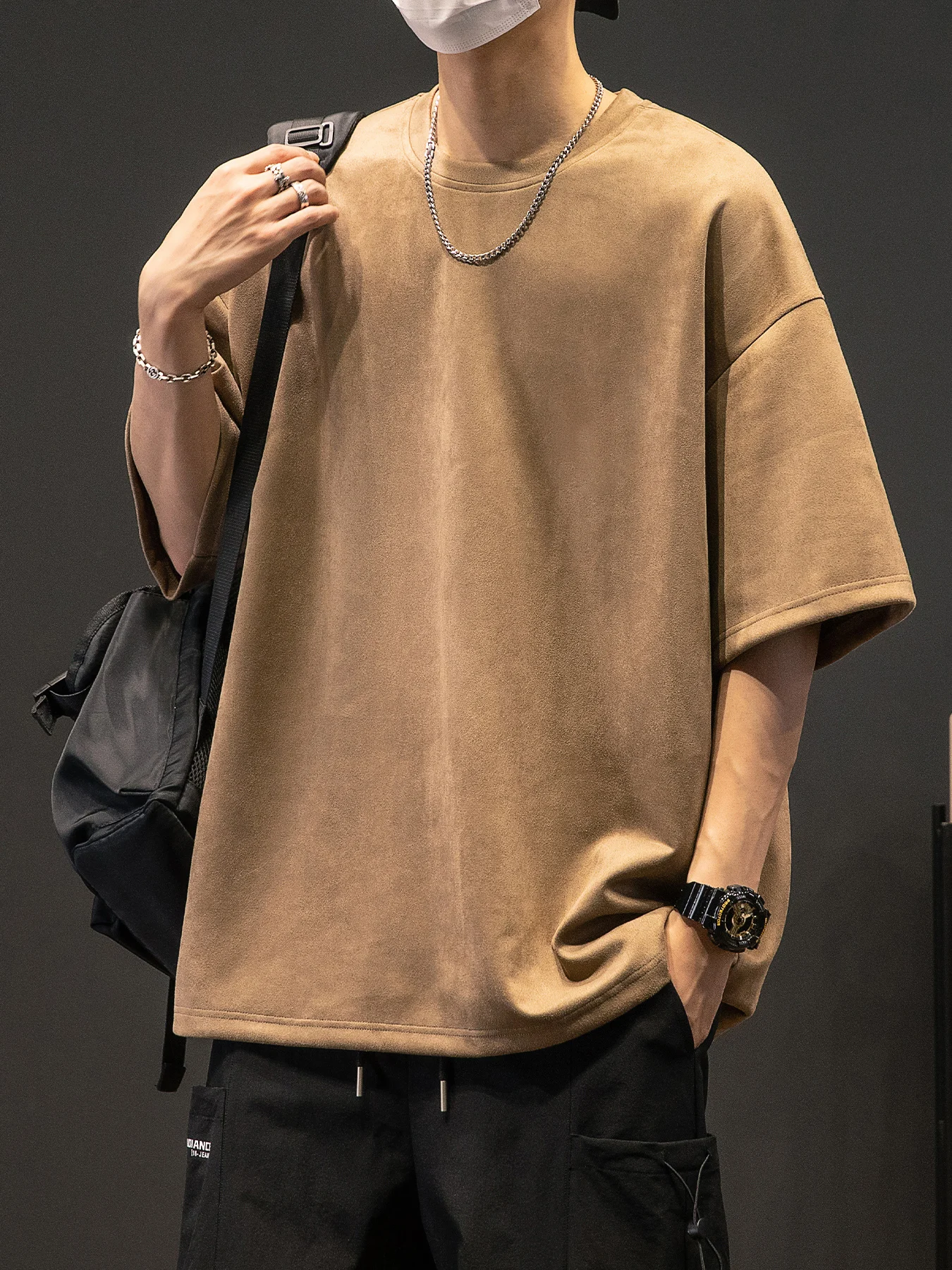 Men’s New Summer American Suede Top Fashion Casual Vintage Short Sleeve Versatile T-shirt