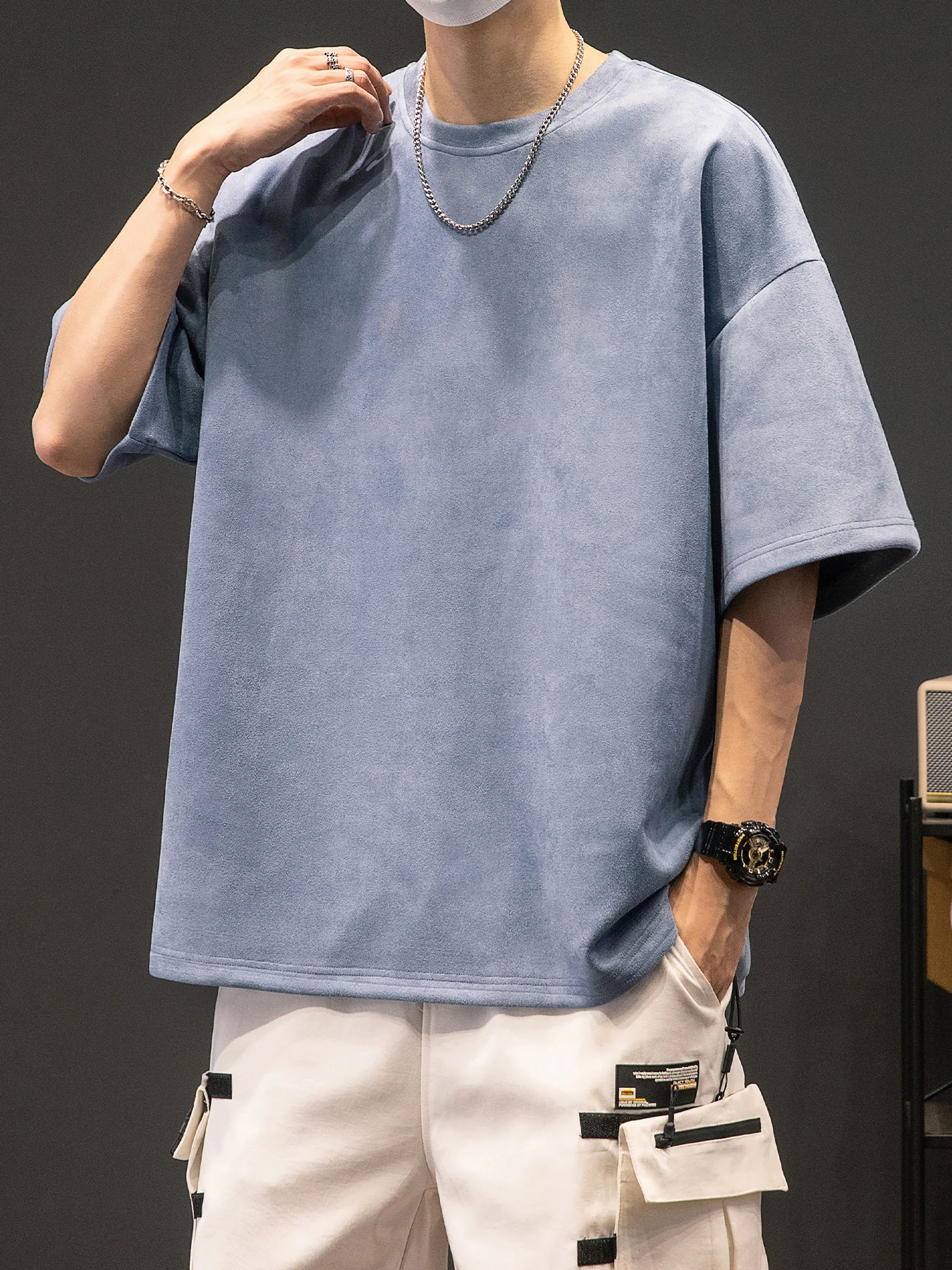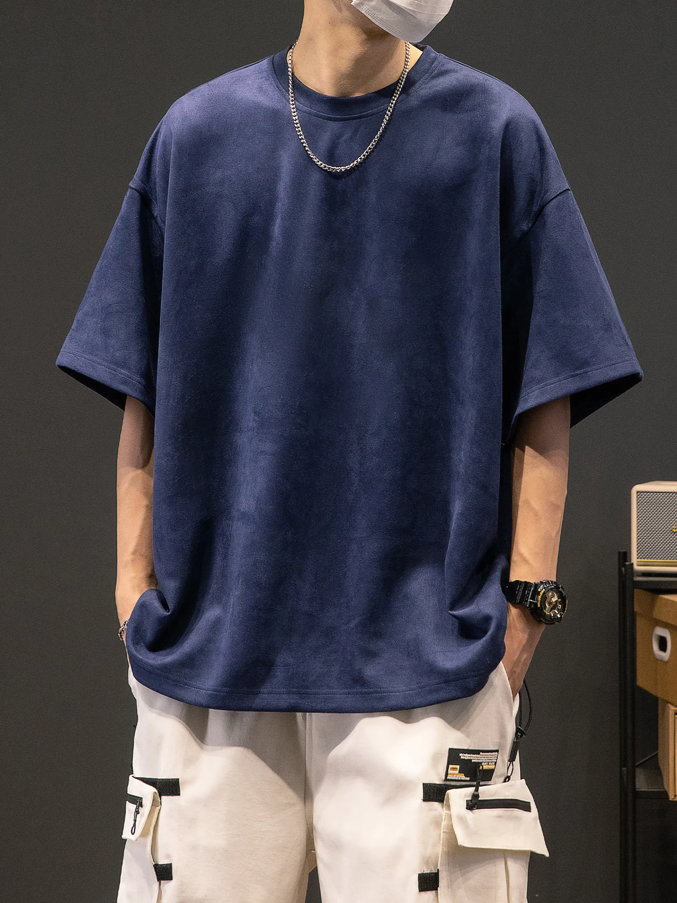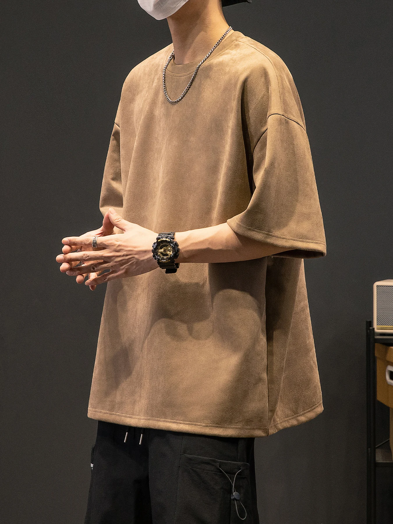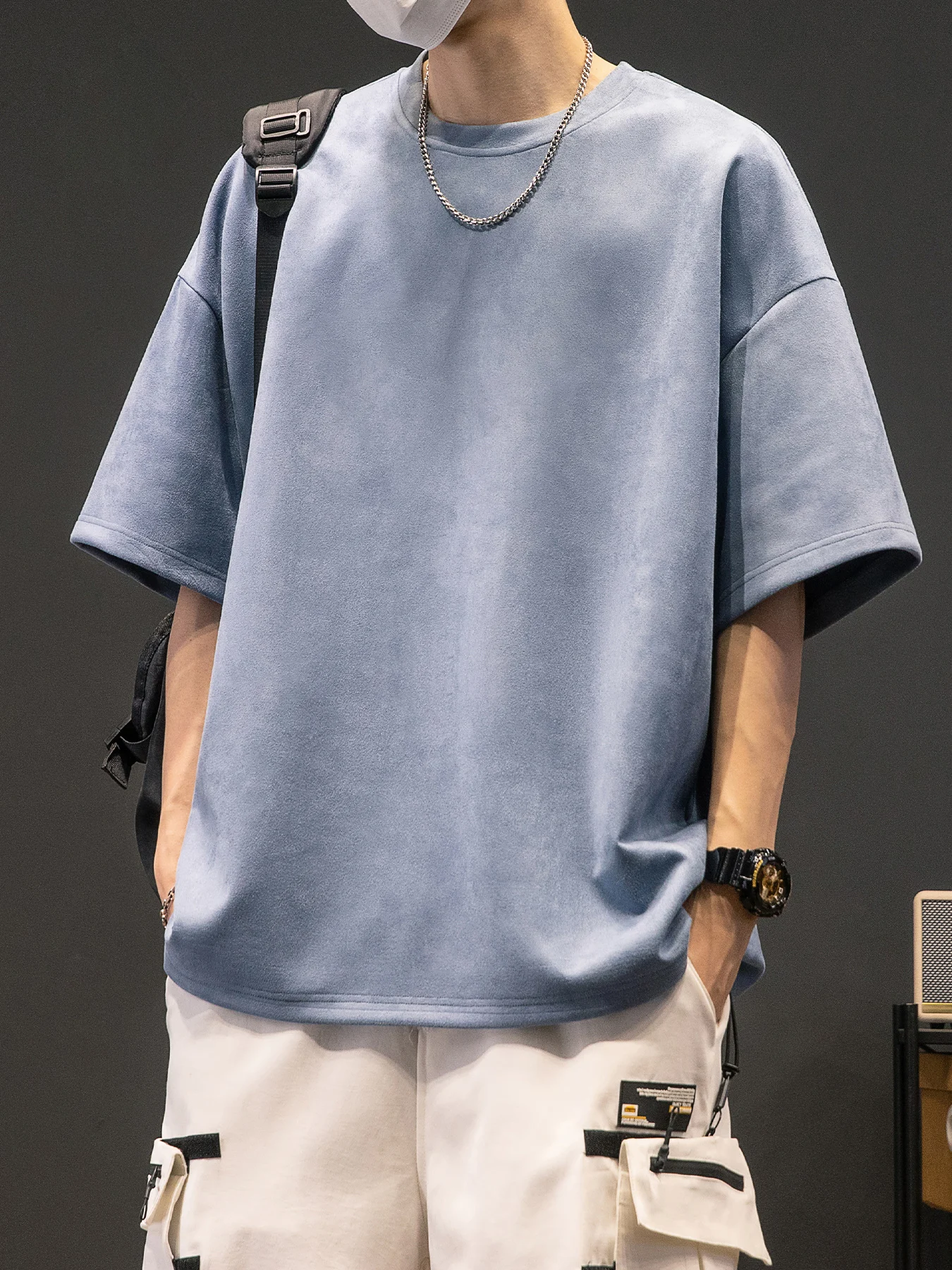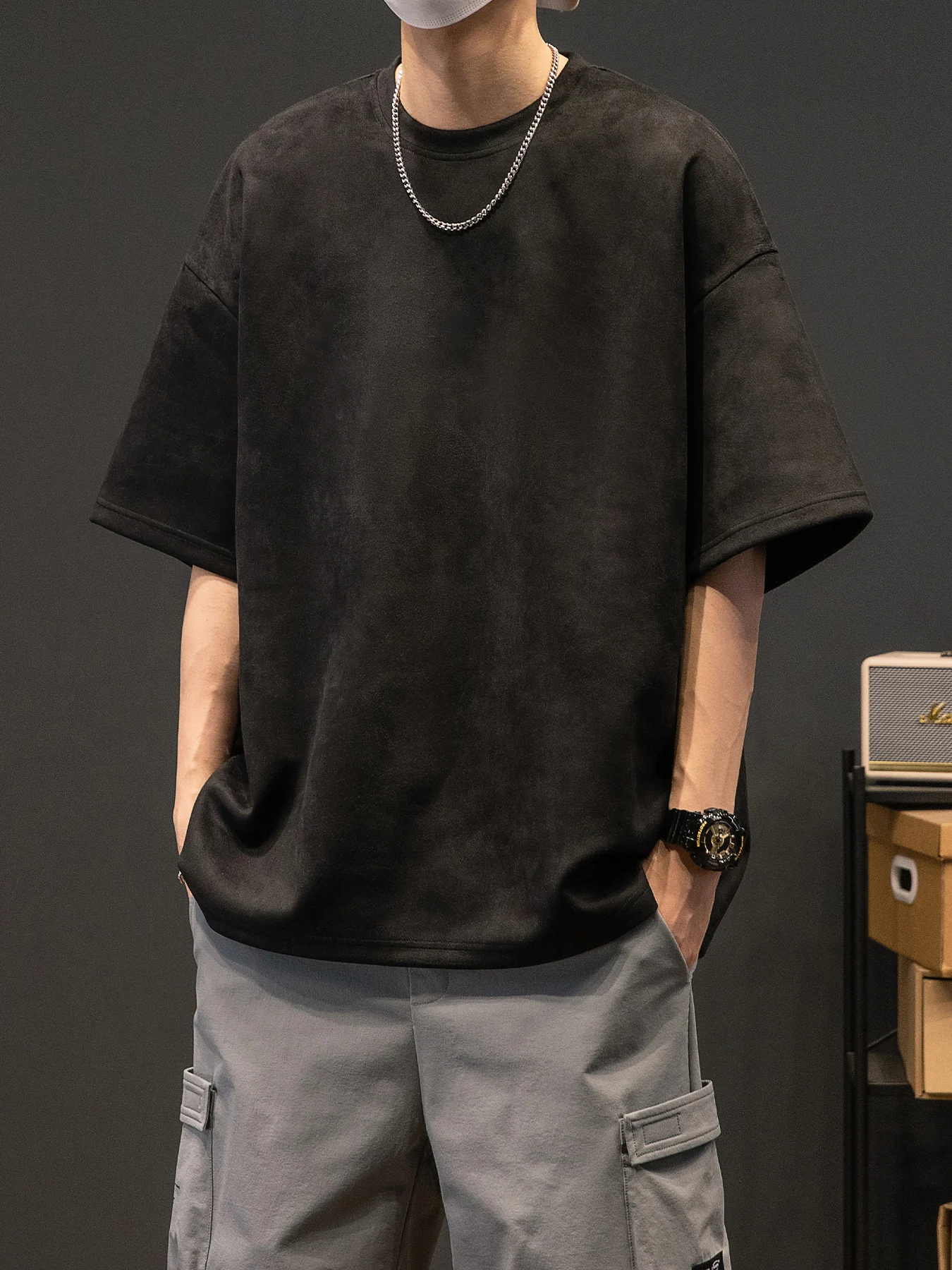 Men’s New Summer American Suede Top Fashion Casual Vintage Short Sleeve Versatile T-shirt