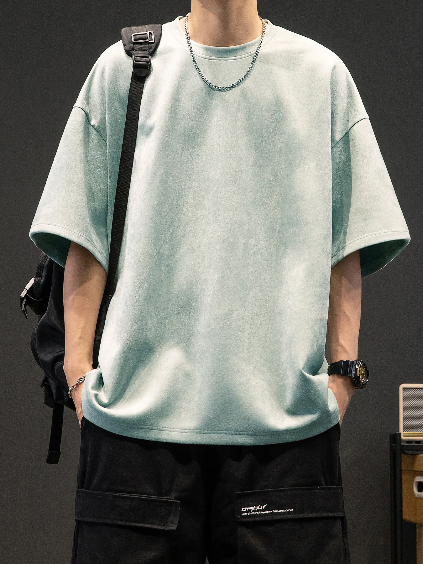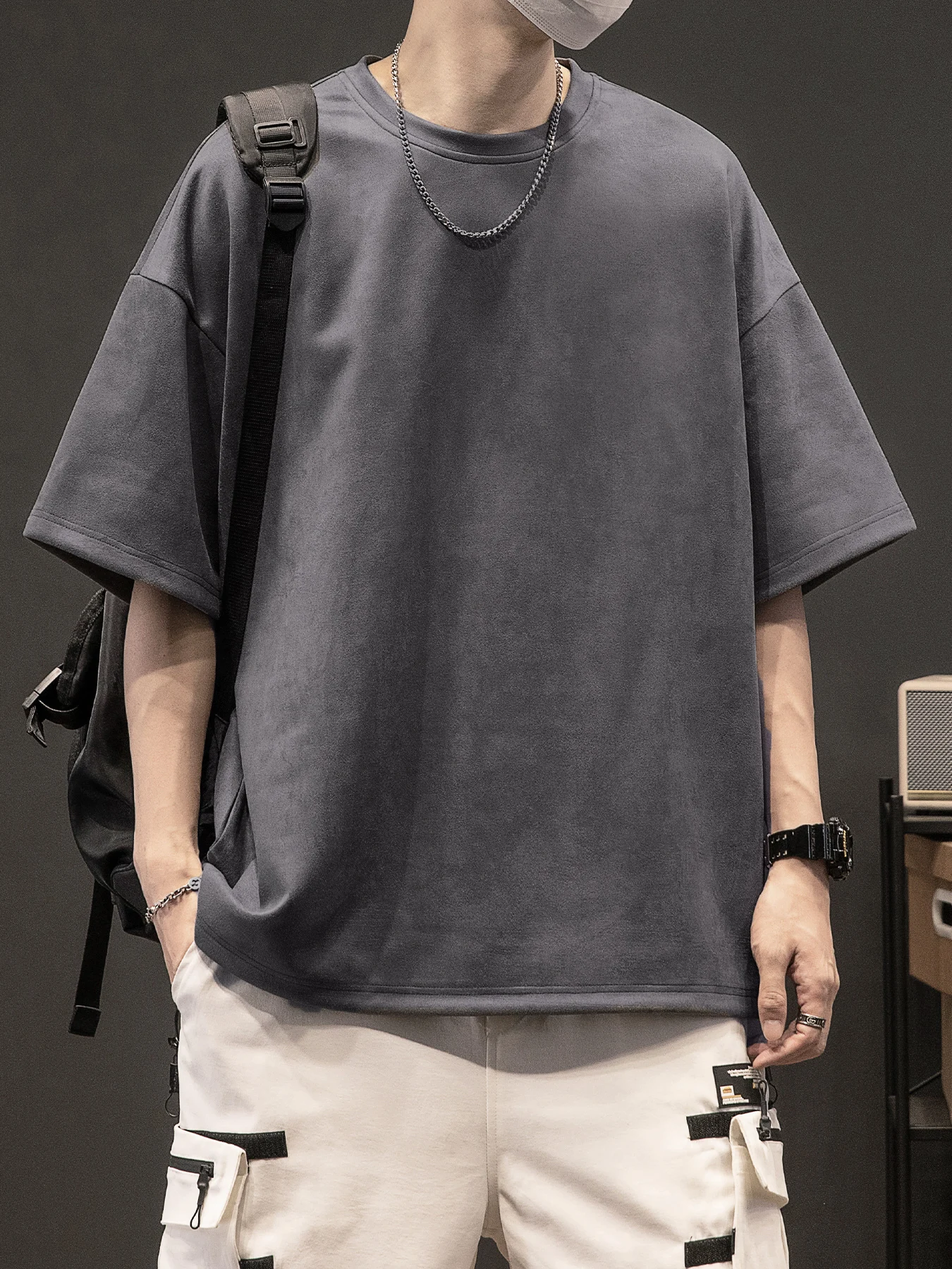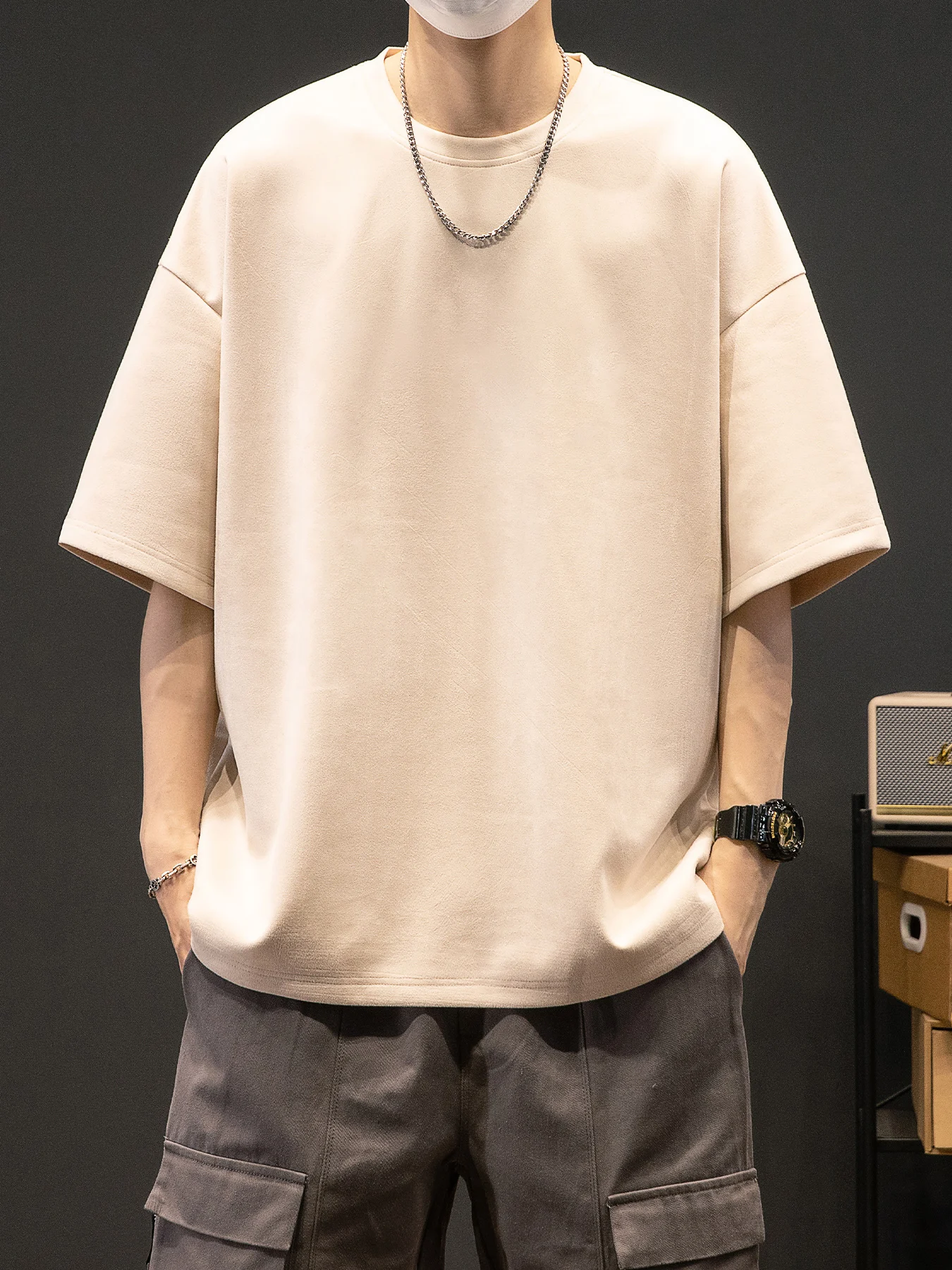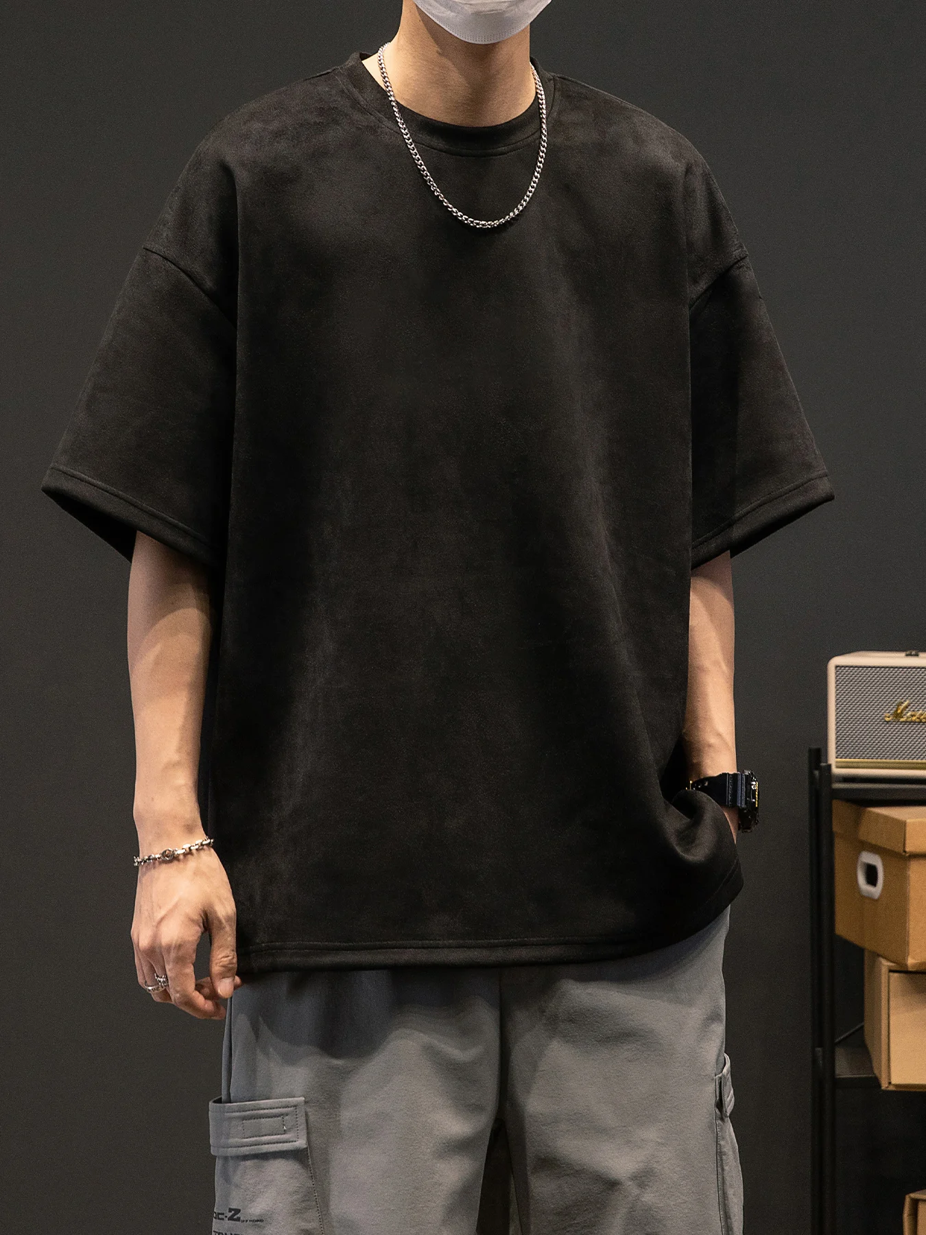 Men’s New Summer American Suede Top Fashion Casual Vintage Short Sleeve Versatile T-shirt