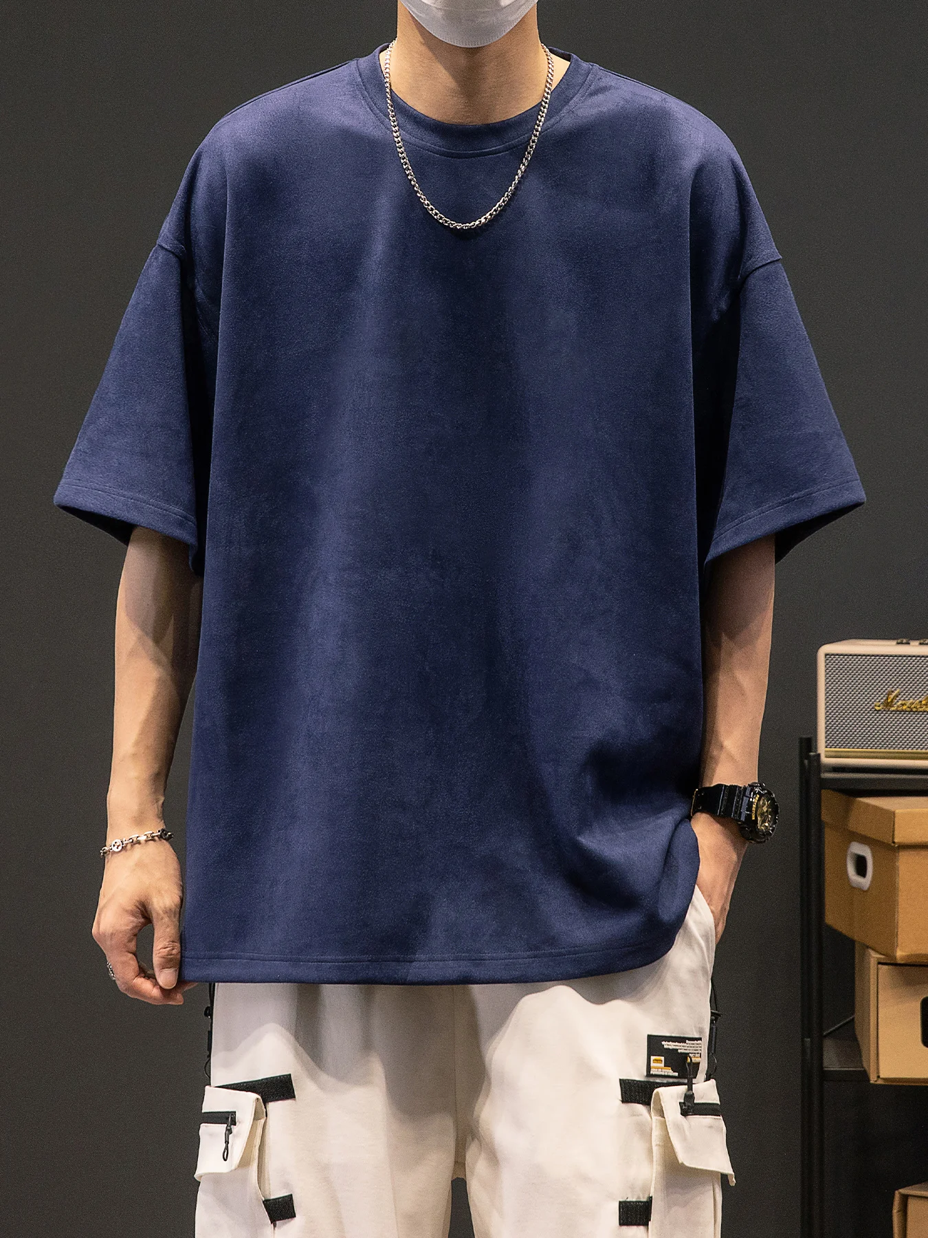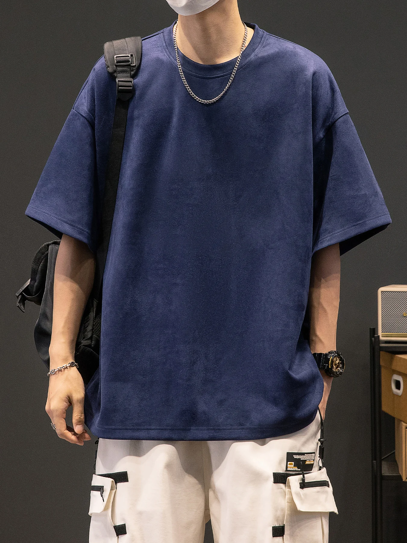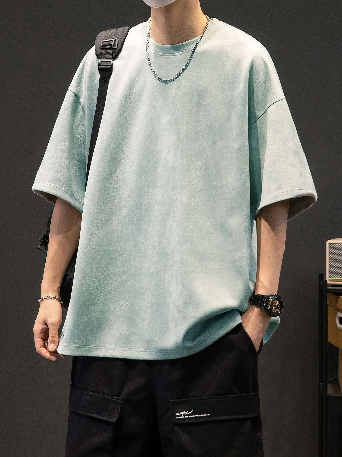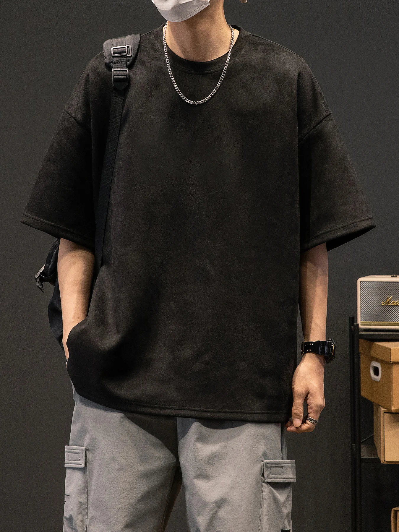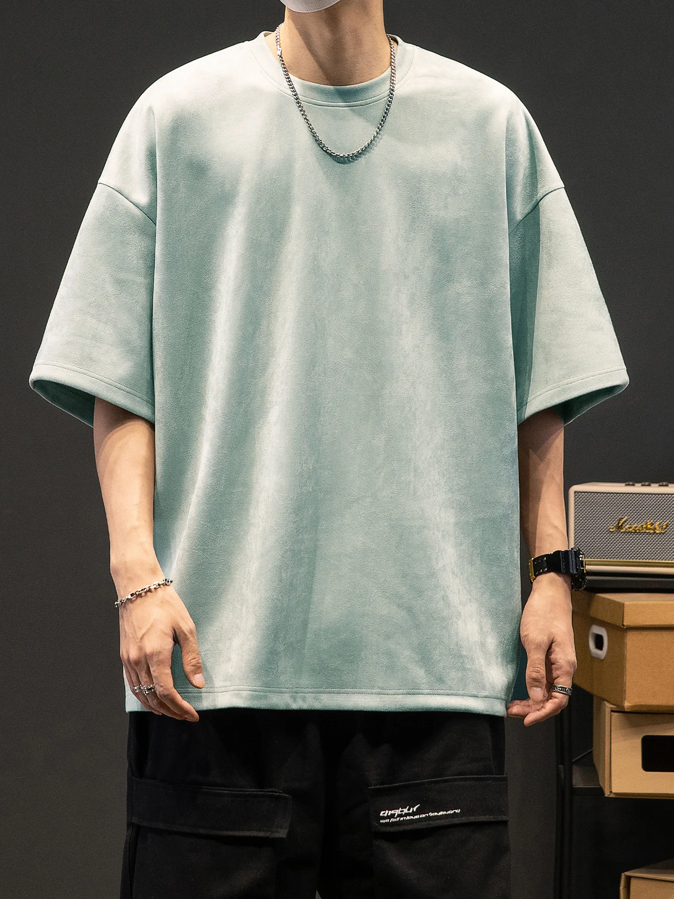 Men’s New Summer American Suede Top Fashion Casual Vintage Short Sleeve Versatile T-shirt