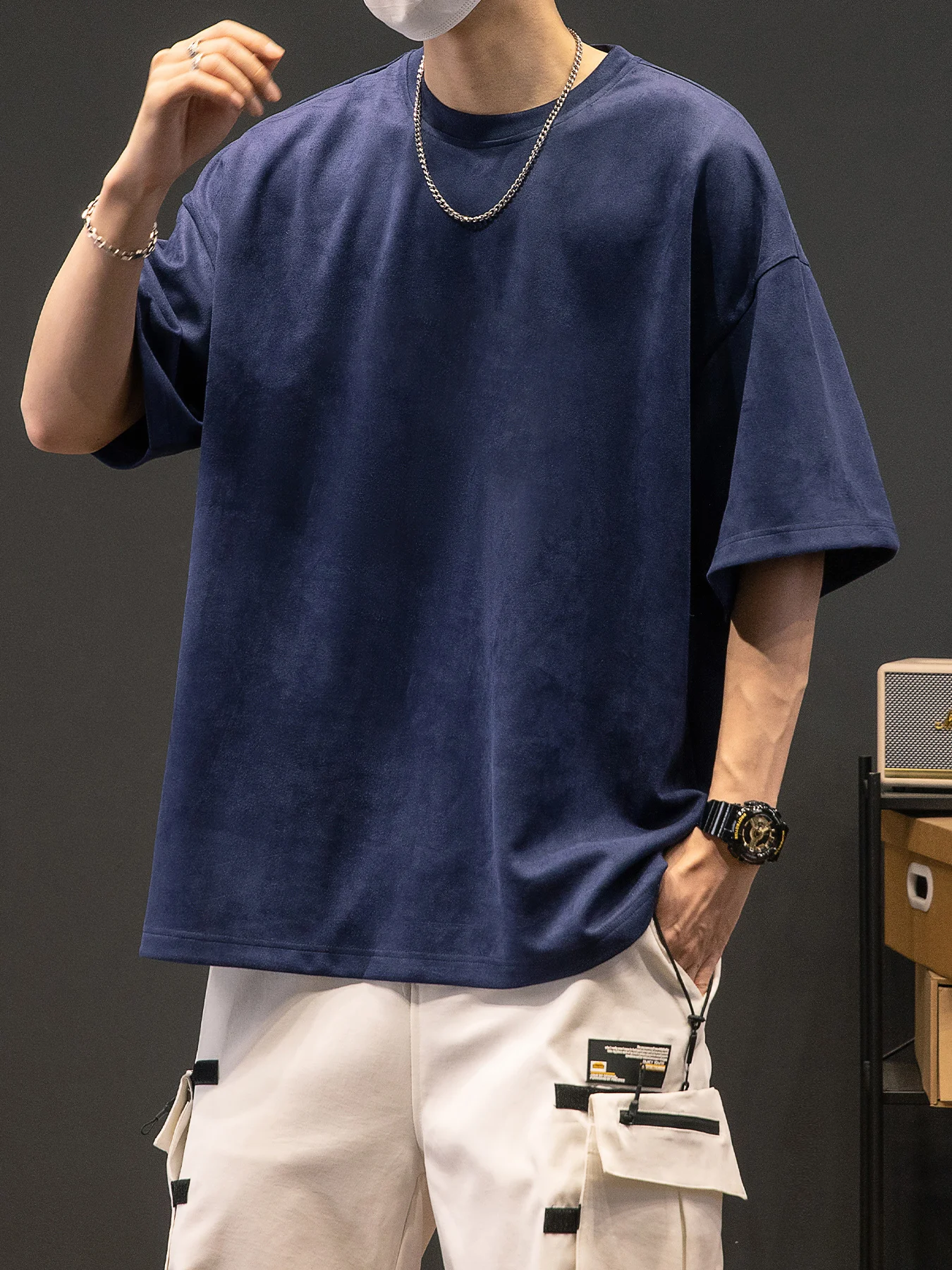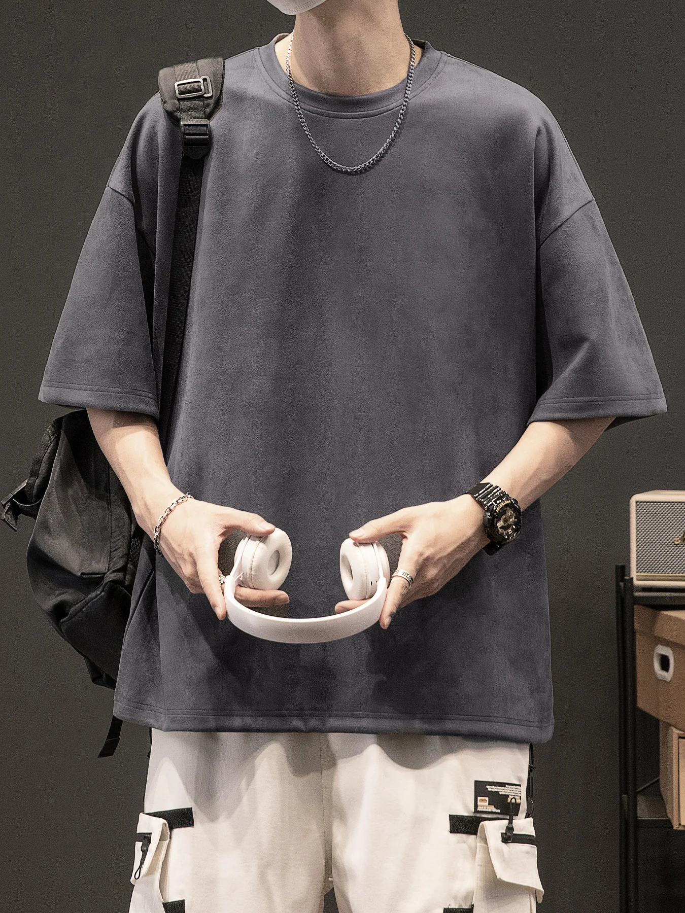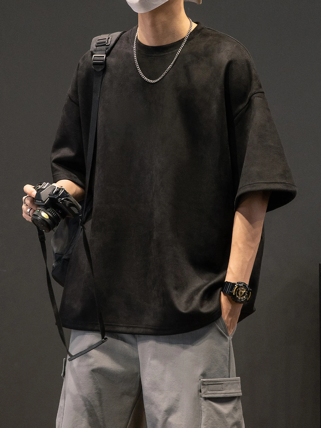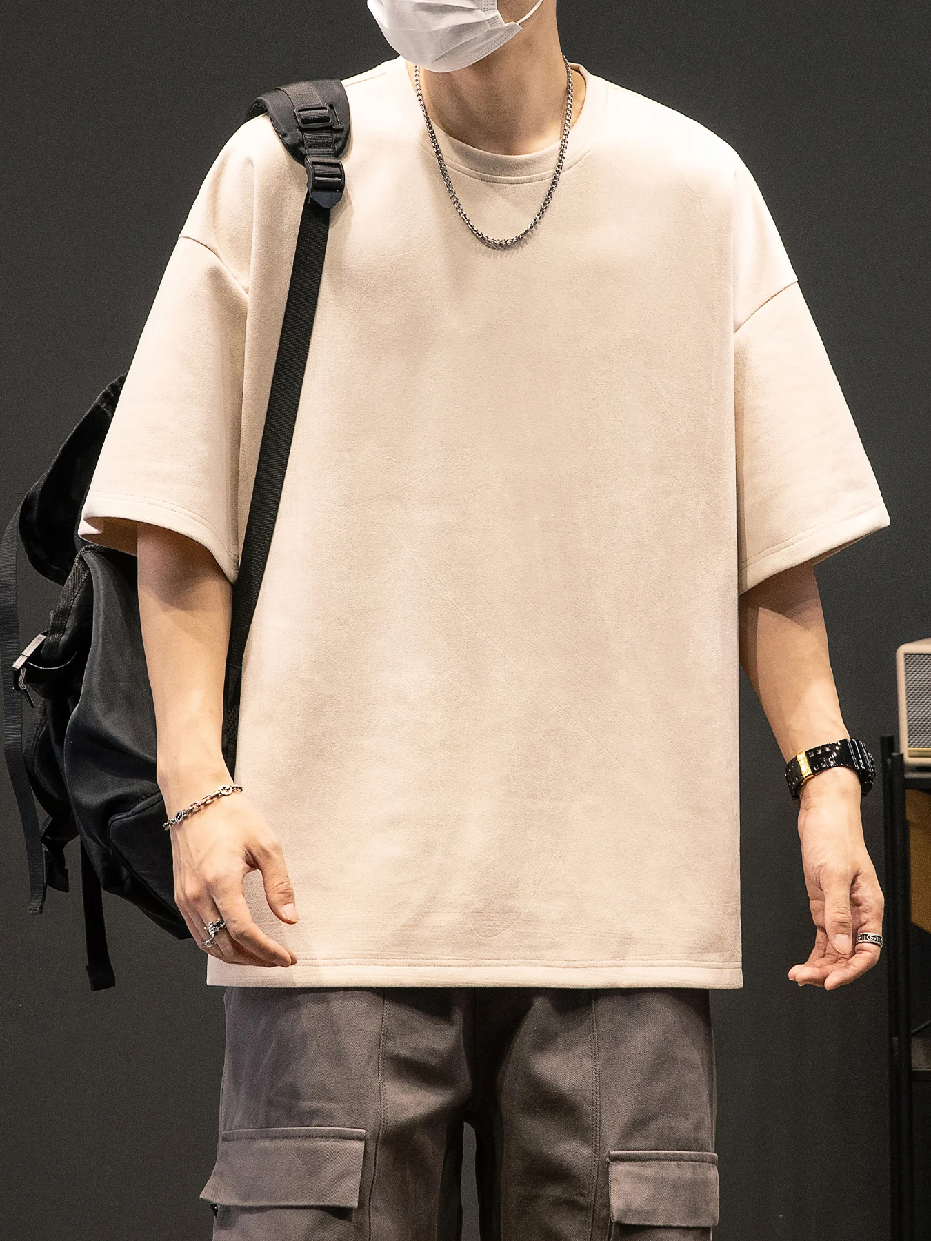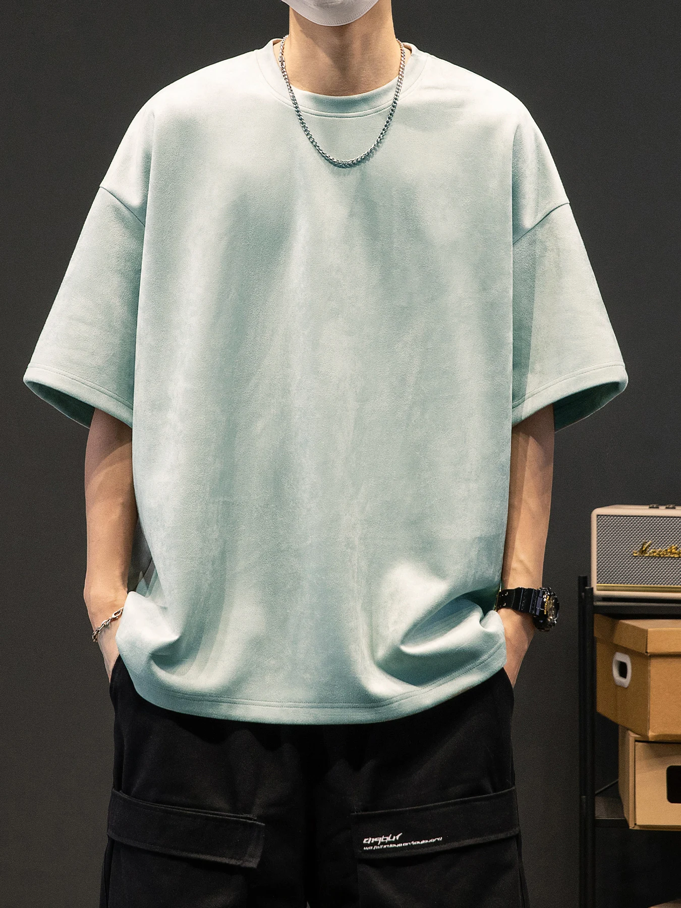 Men’s New Summer American Suede Top Fashion Casual Vintage Short Sleeve Versatile T-shirt