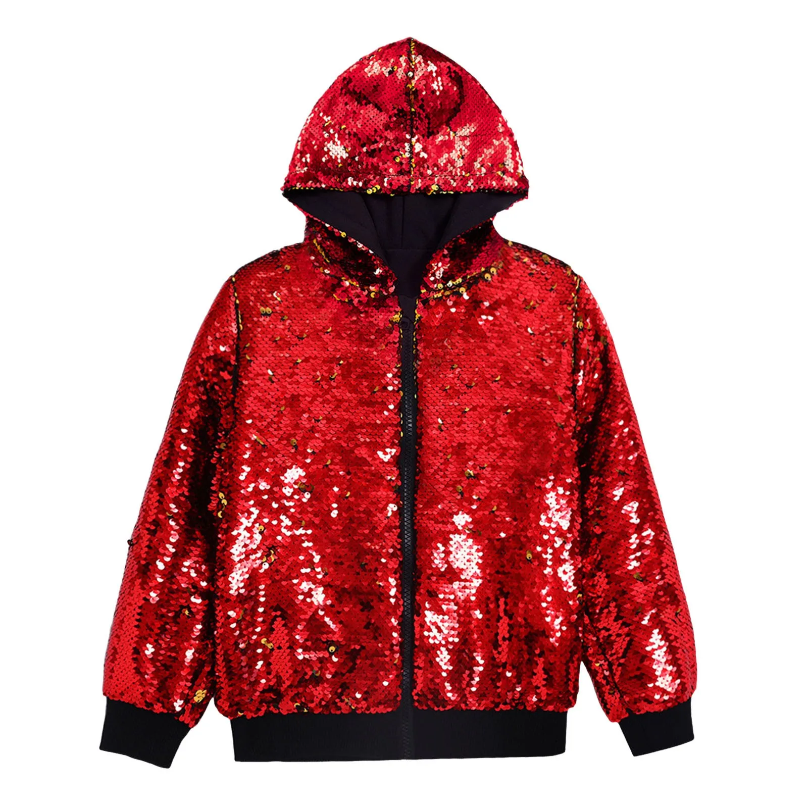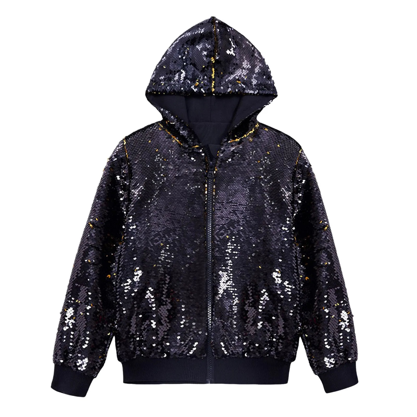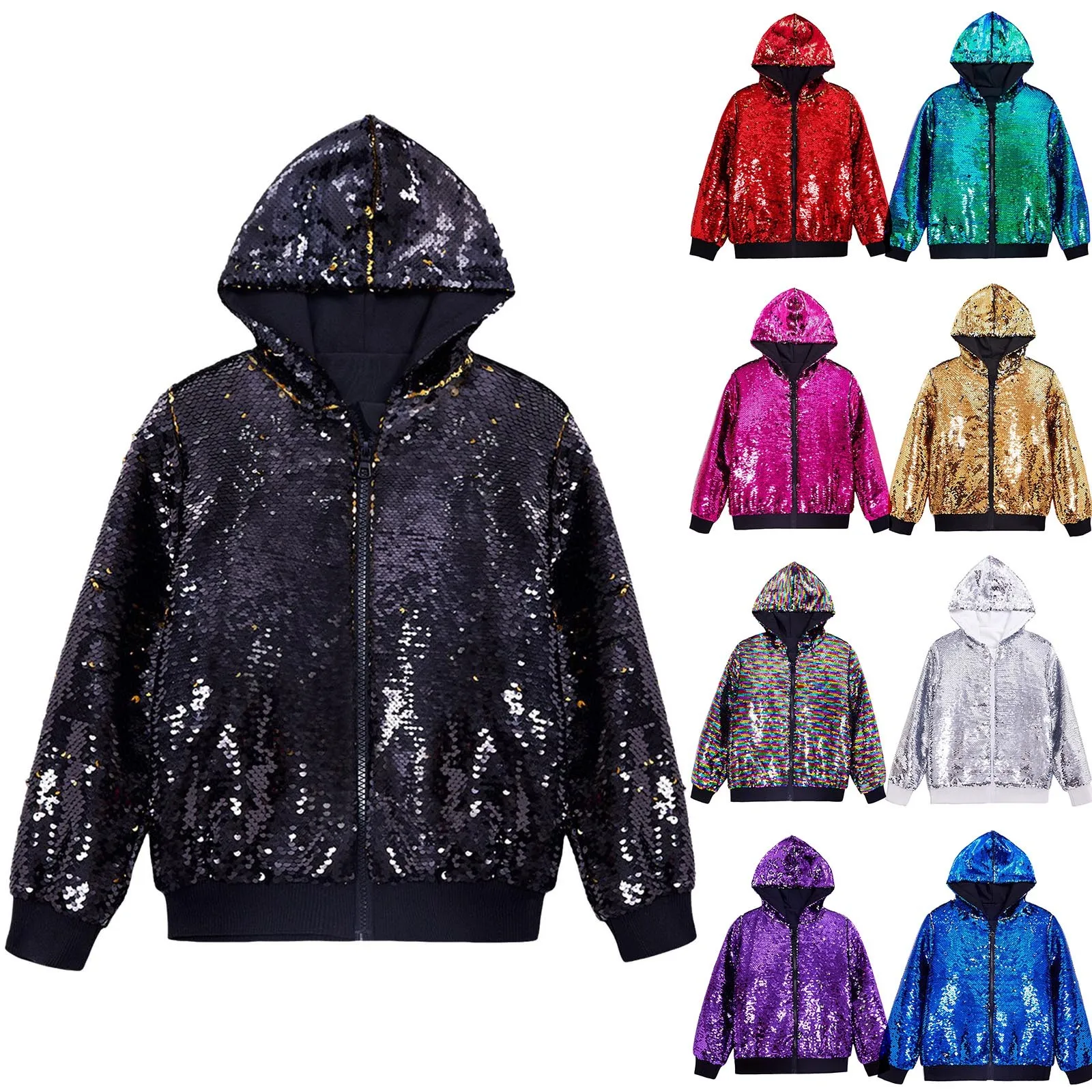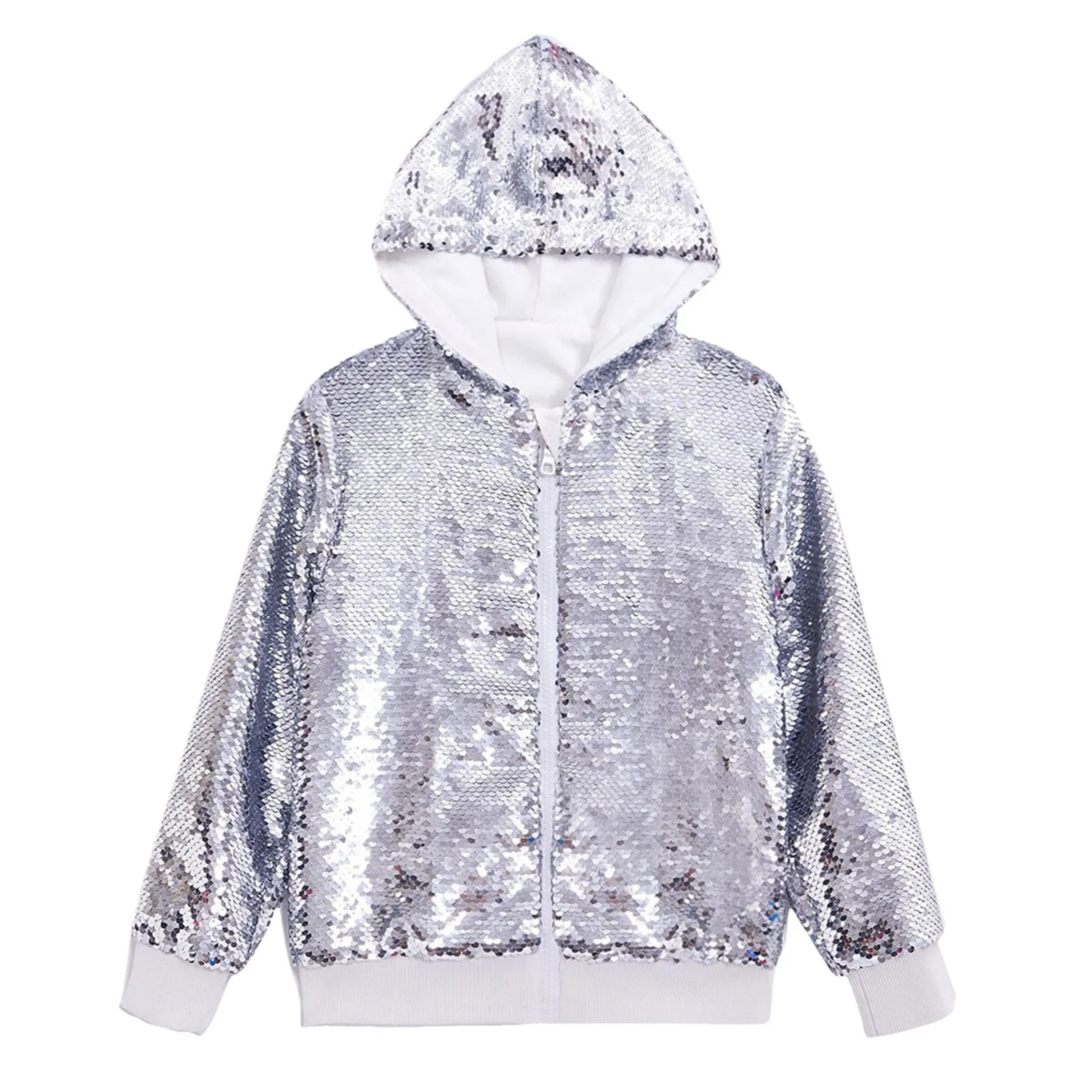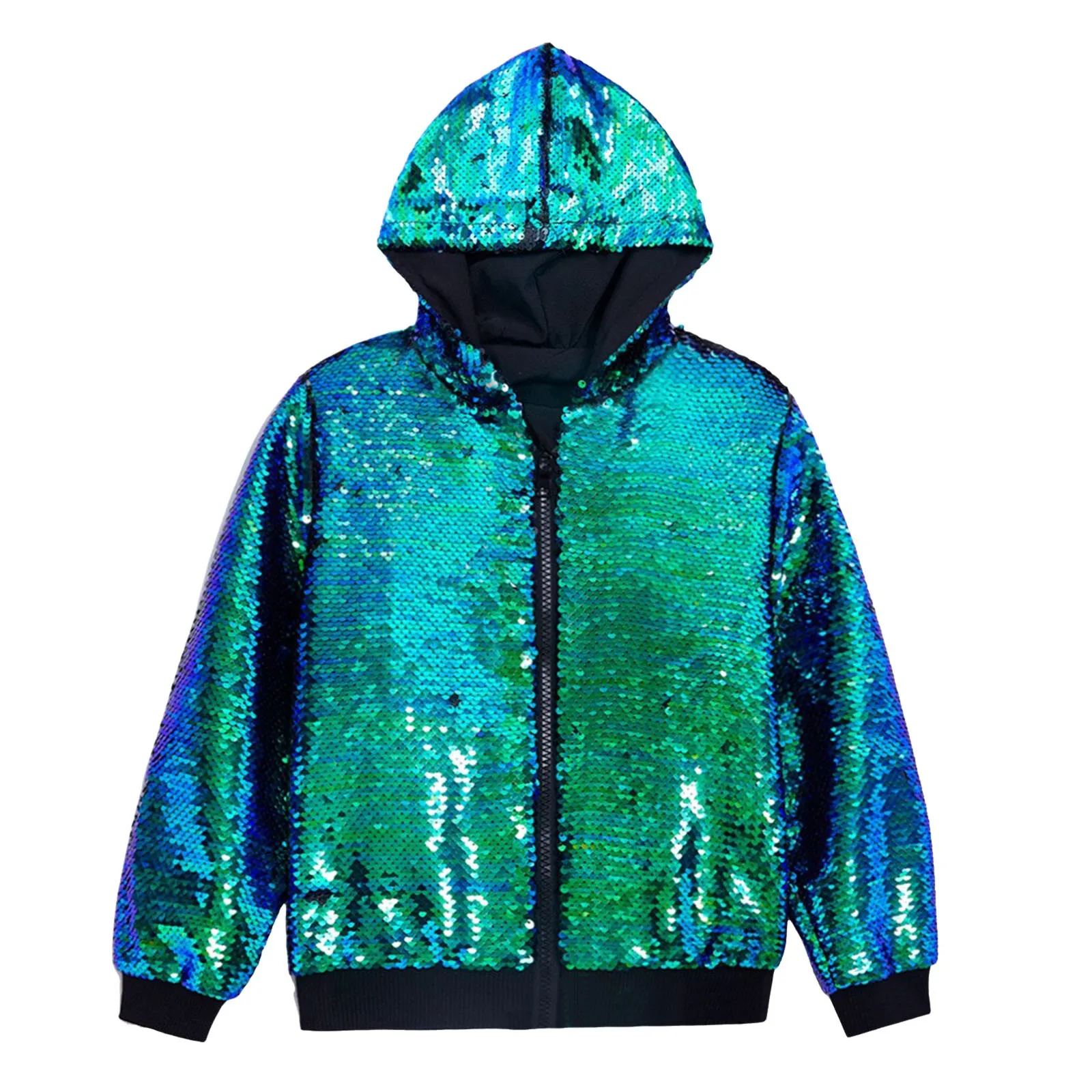 Mens Outdoor Hooded Jacket With Pocket Cool Long Sleeve Unisex Leisure Outerwear Overcoat Nightclub Party Sparkly Sequin Clothes