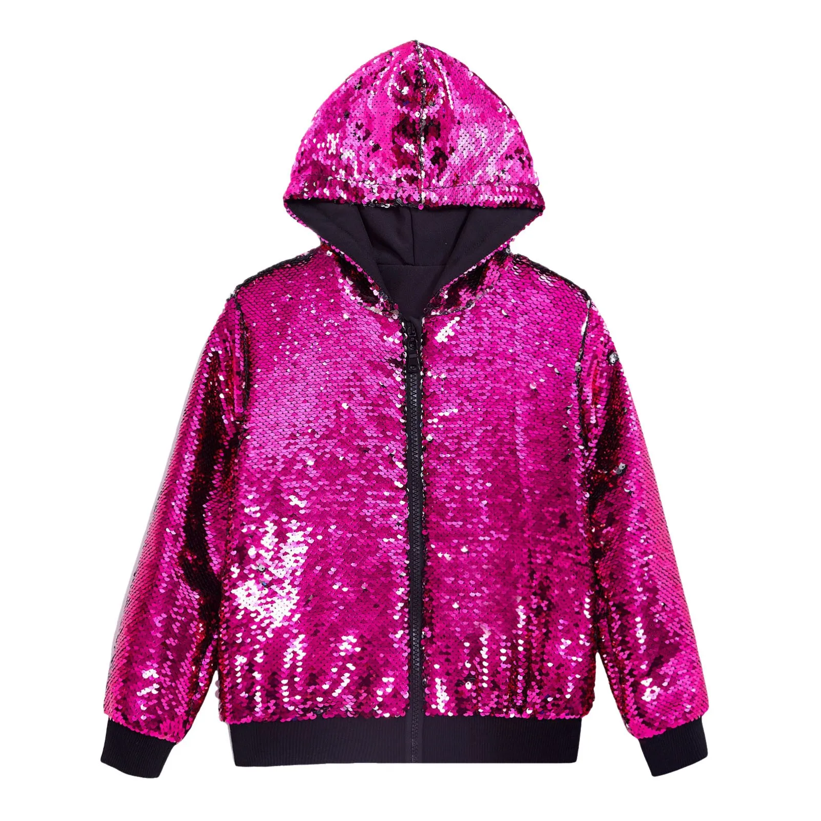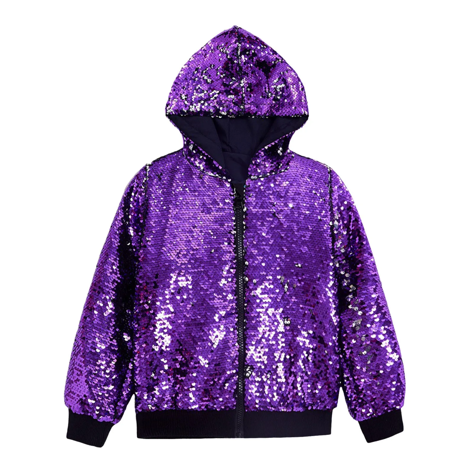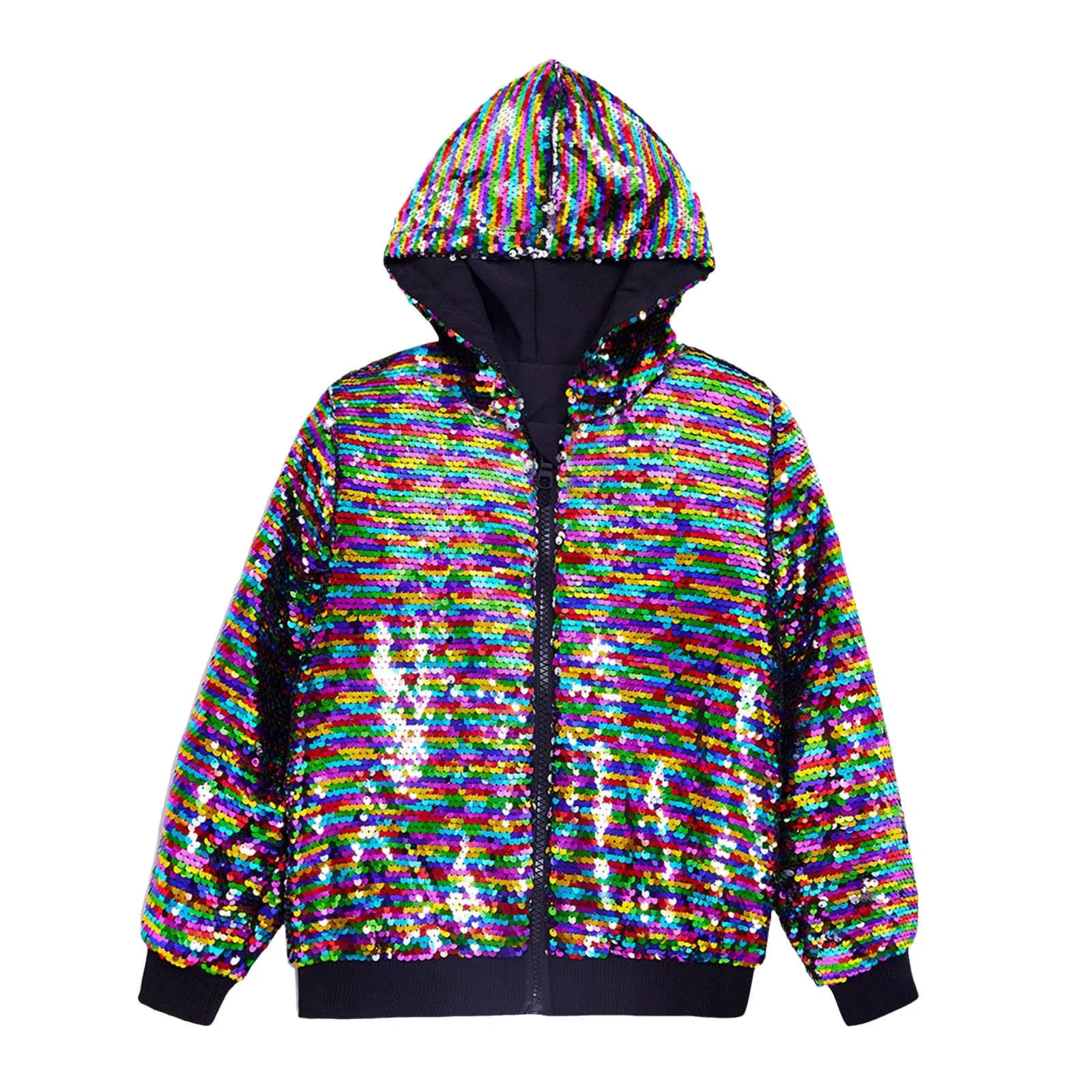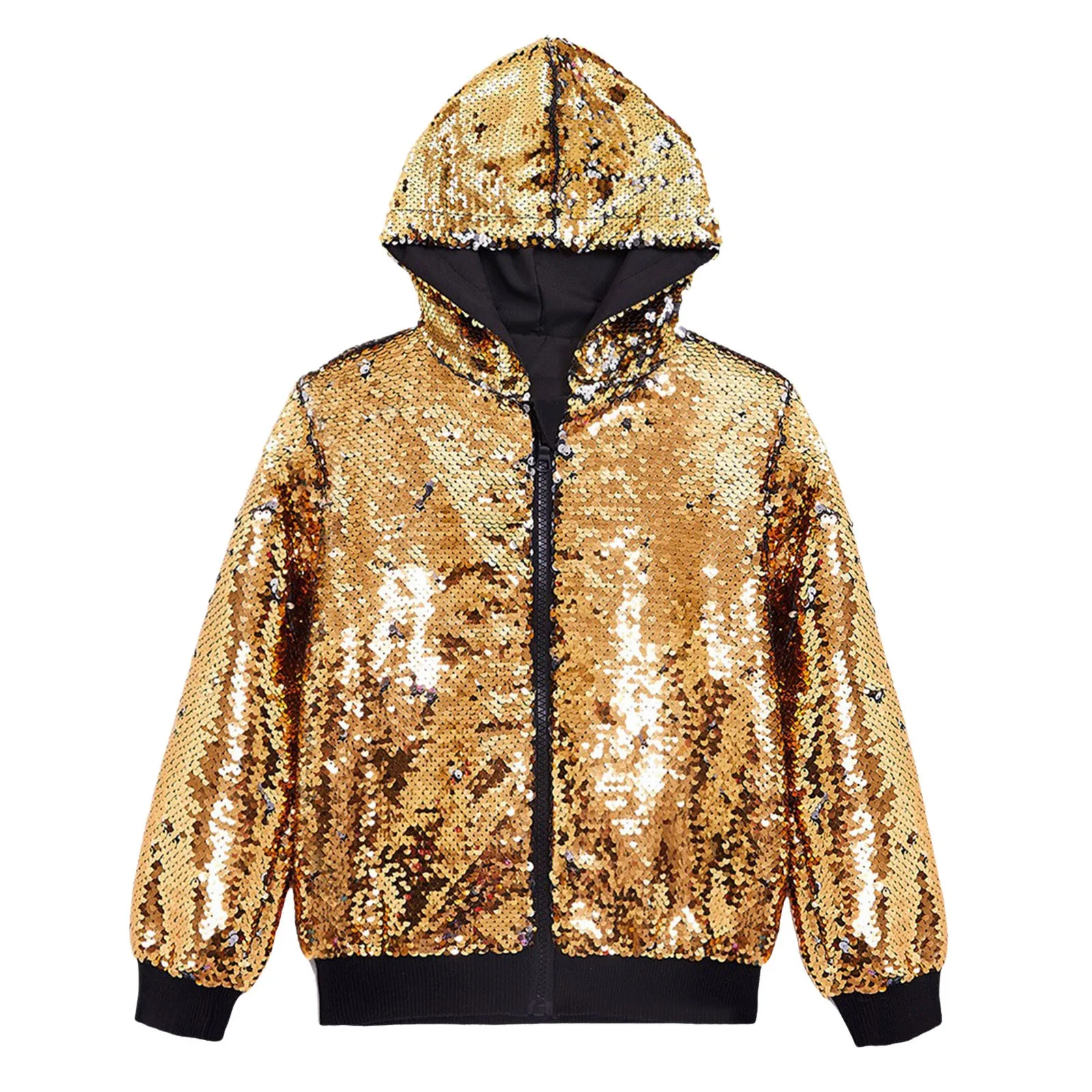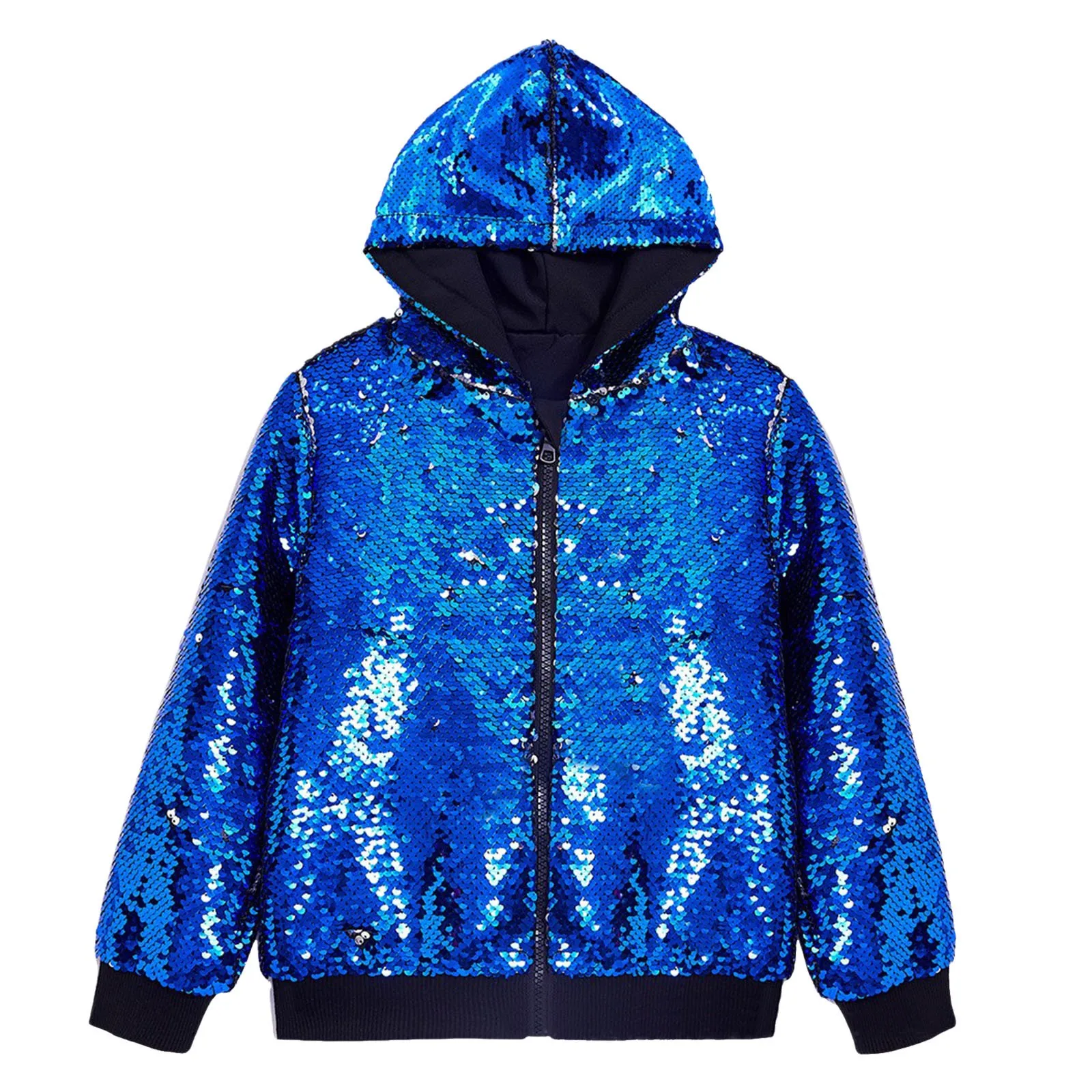 Mens Outdoor Hooded Jacket With Pocket Cool Long Sleeve Unisex Leisure Outerwear Overcoat Nightclub Party Sparkly Sequin Clothes