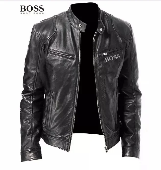 Men’s Punk Style Leather Jacket with Motorcycle Elements Stylish Men’s Leather Jacket with Punk Rock Elements
