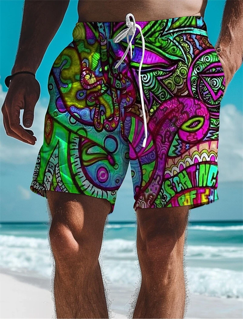 Men’s Resort Colorful Graffiti 3D Print Board Shorts Vacation Hawaiian Surfing Board Swim Trunks Kids Street Ice Beach Shorts