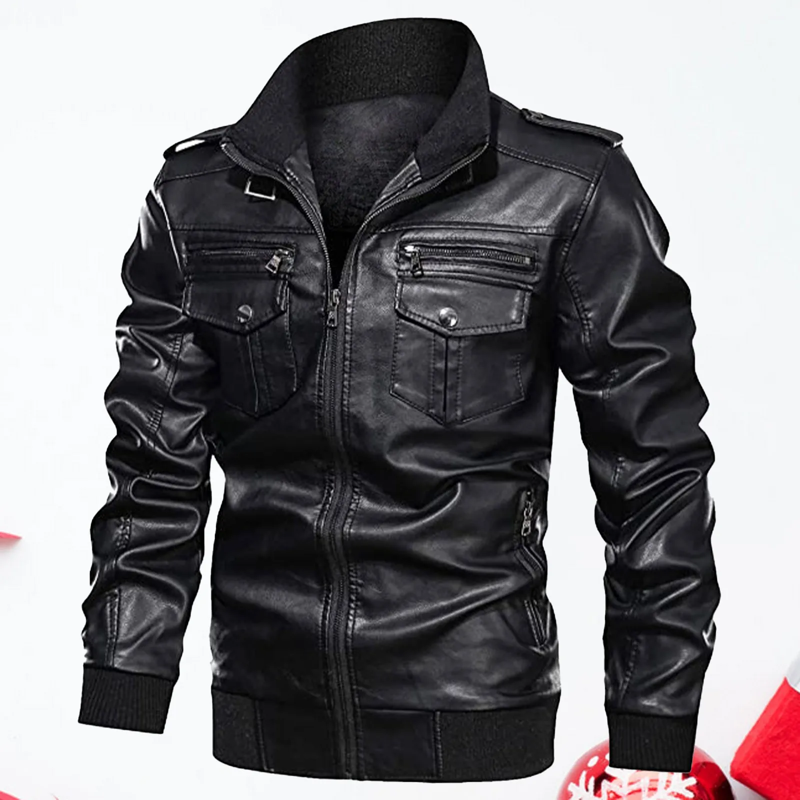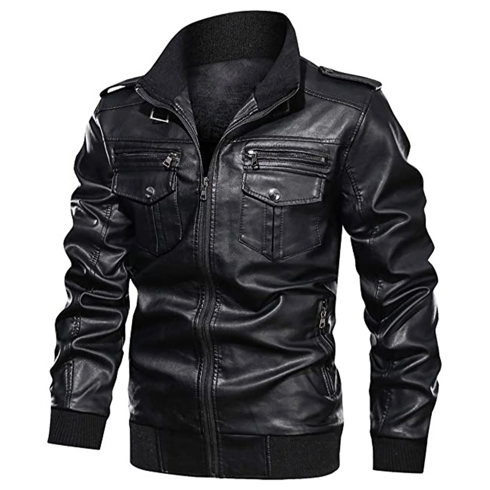 Autumn/winter Men’s Zipper Pocket Biker Leather Jacket