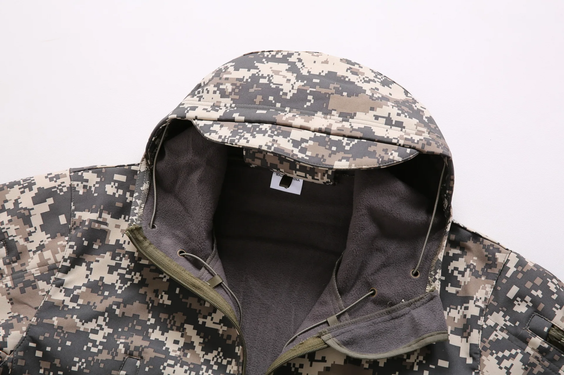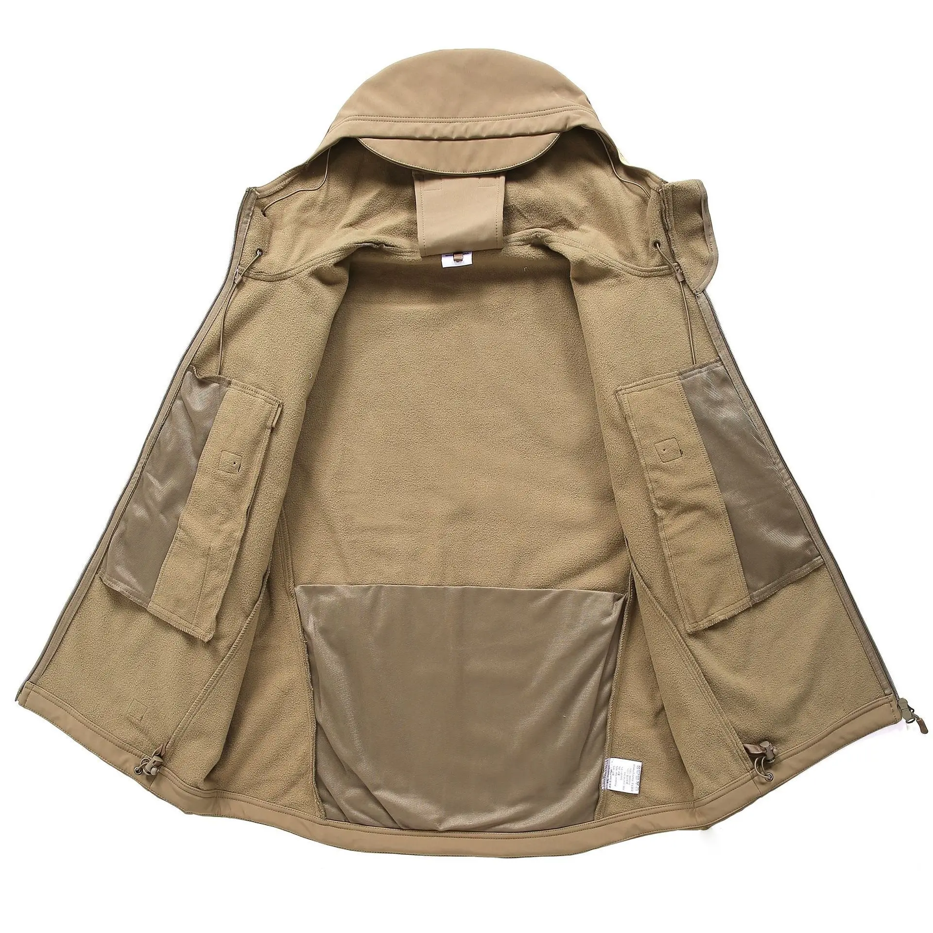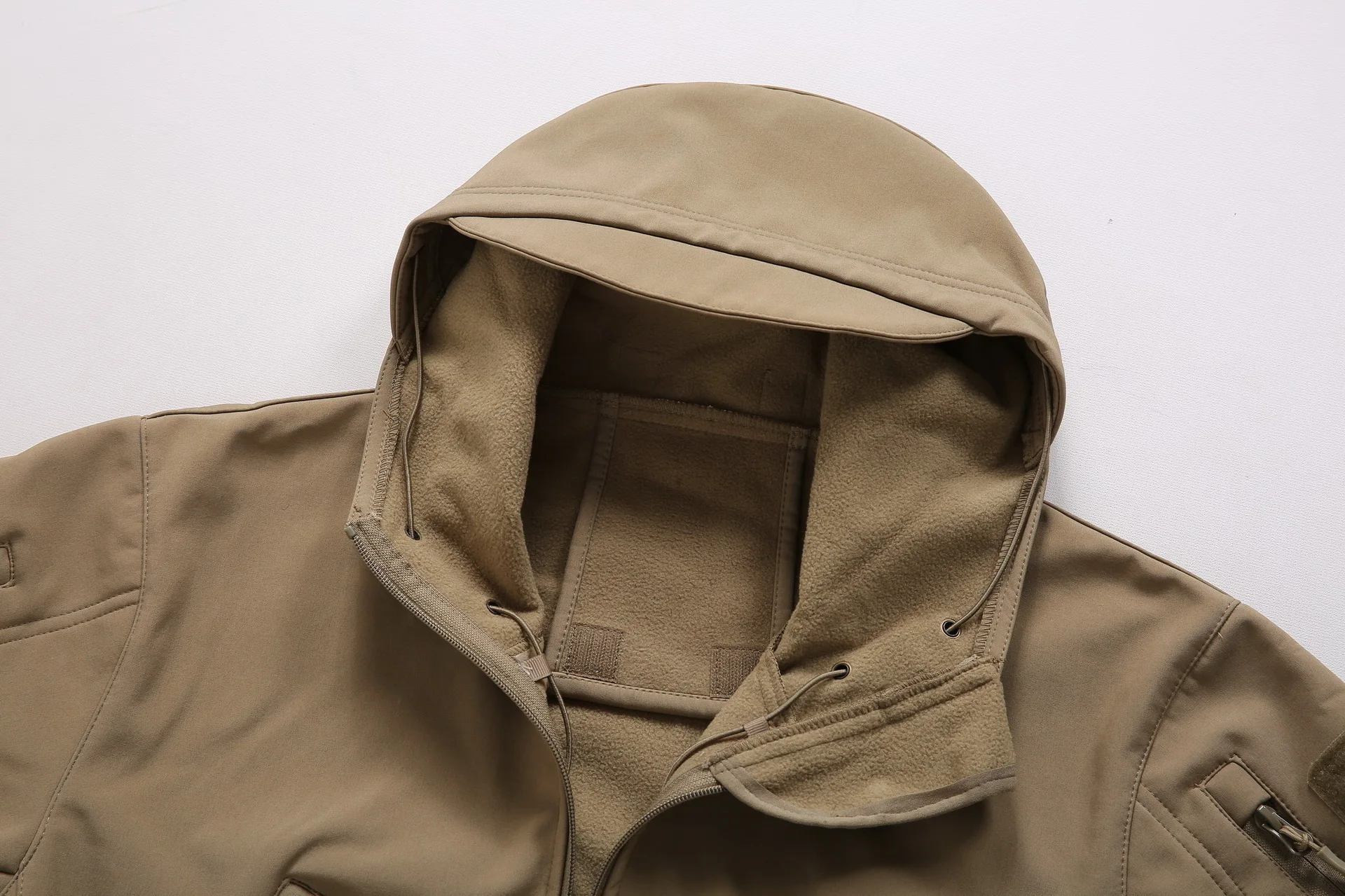 Men’s Shark Skin Soft Shell Outdoor Jackets Warm Tactical Windbreaker Combat Jacket Mens Hooded Bomber Coats Hiking Clothes