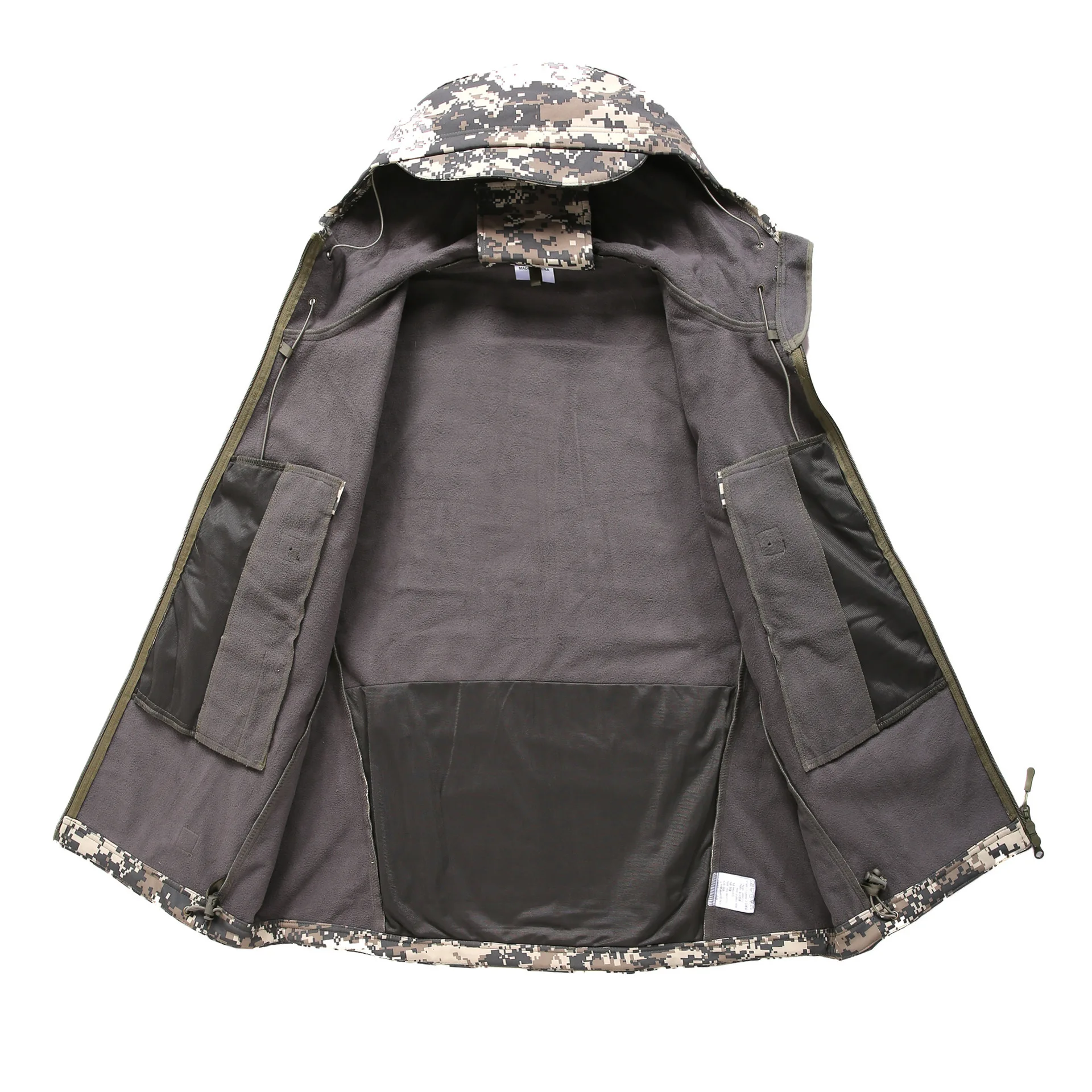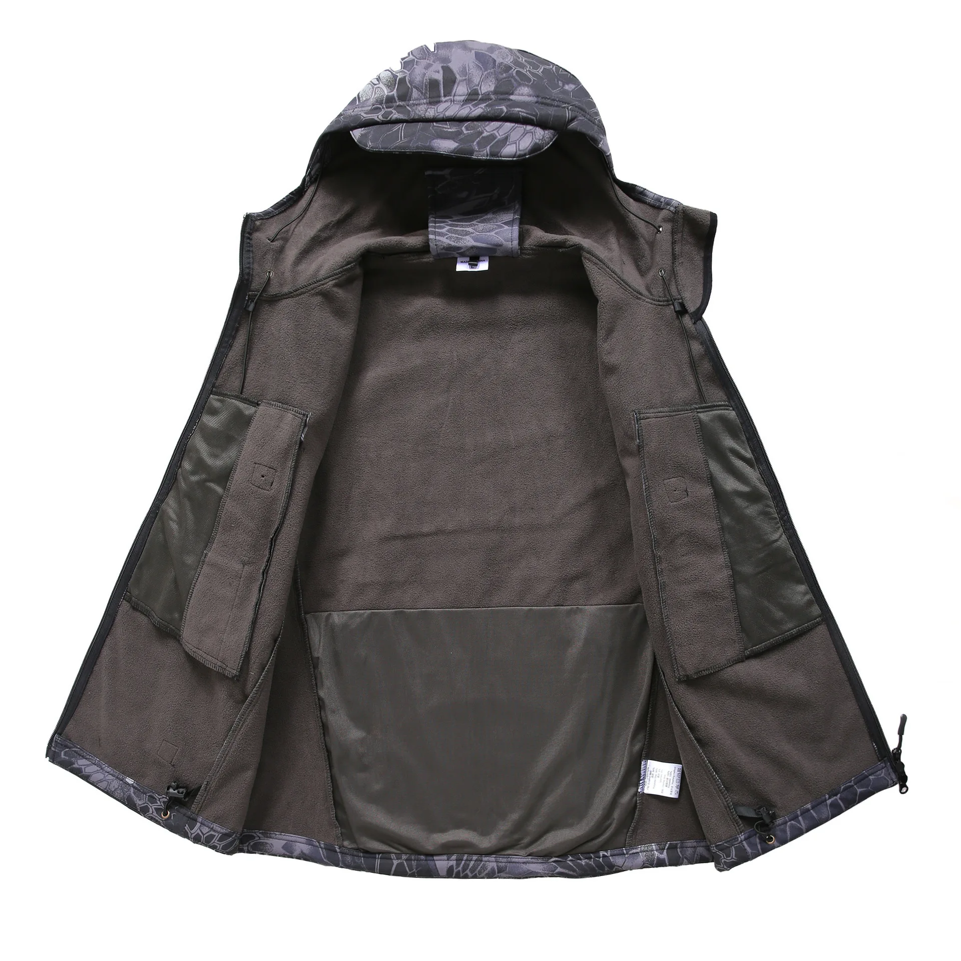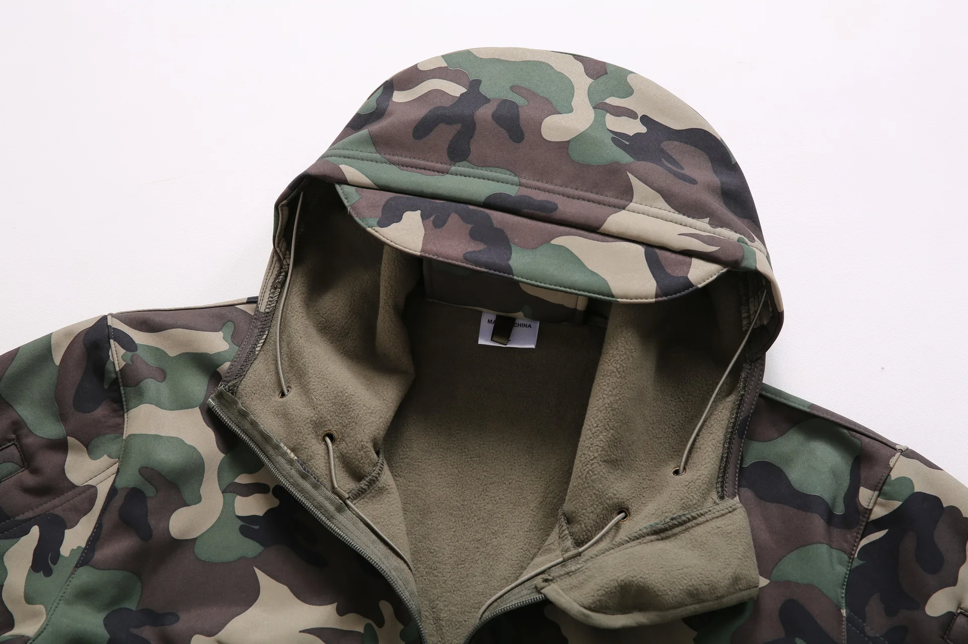 Men’s Shark Skin Soft Shell Outdoor Jackets Warm Tactical Windbreaker Combat Jacket Mens Hooded Bomber Coats Hiking Clothes