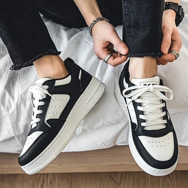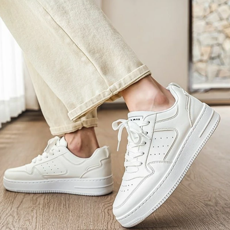 Mens Sneakers Platform Shoes Fashion Slip on Vulcanized Shoes Outdoor Casual Shoes Breathable White Shoe Lace Up Men Shoe Tenis