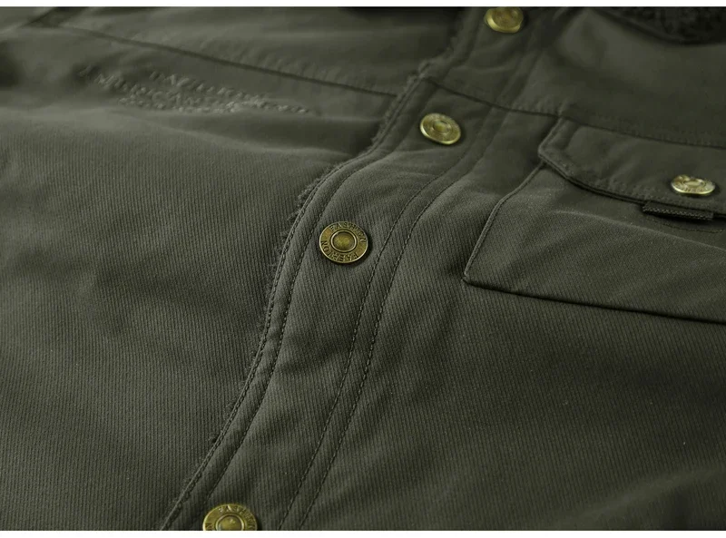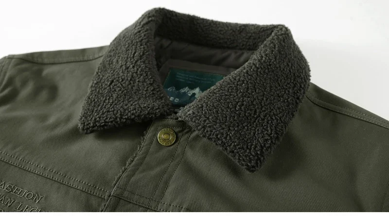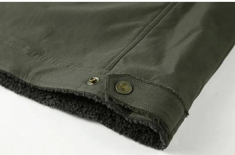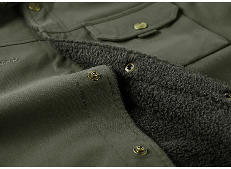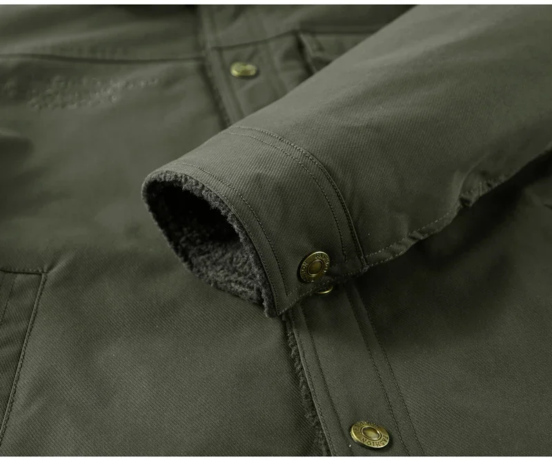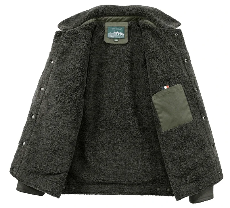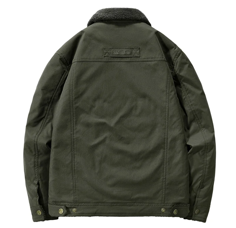 Men’s Thicken Fleece Cotton Army Green Camping Jacket Cargo Bomber Jacket With Multi-pockets Working Winter Coat Men Clothing